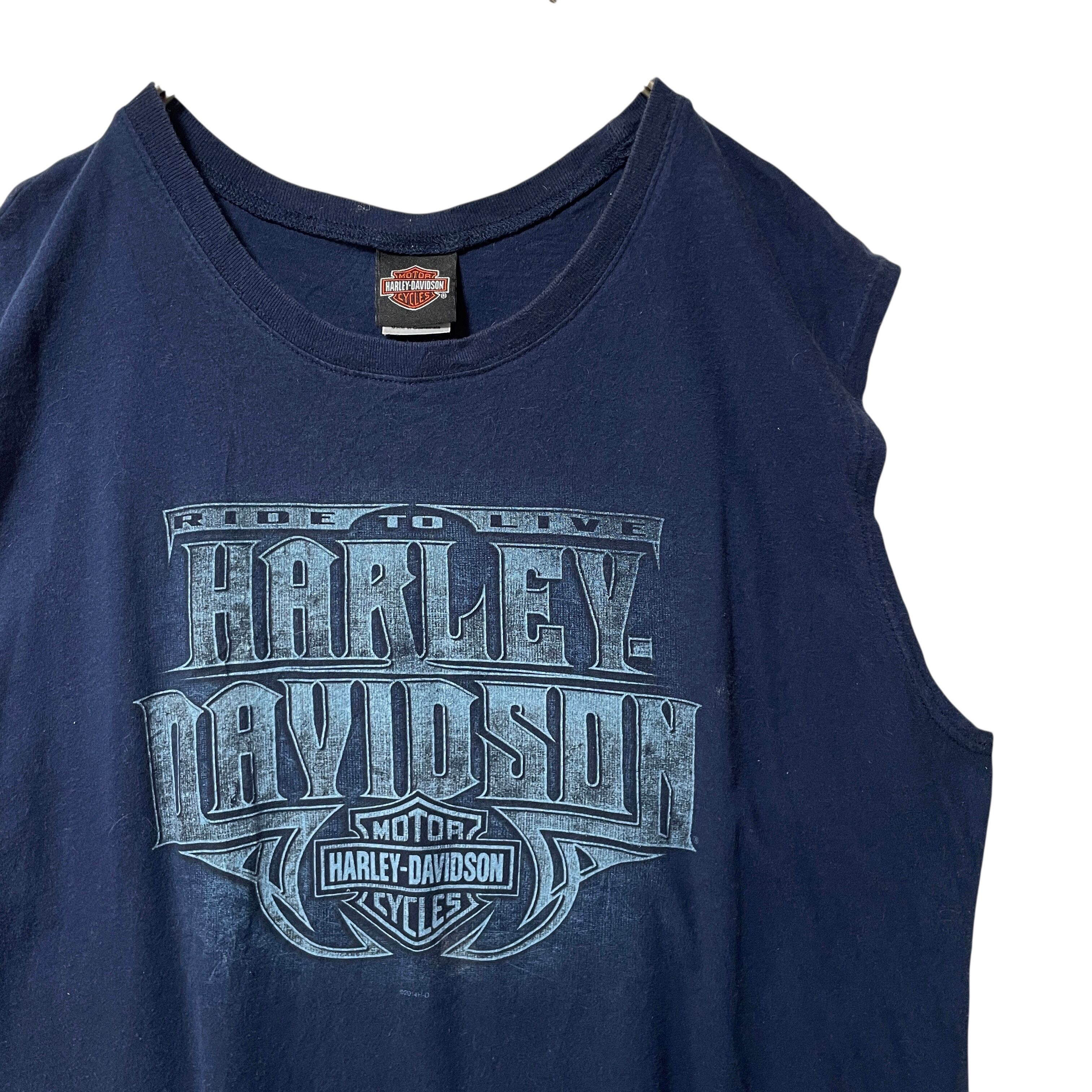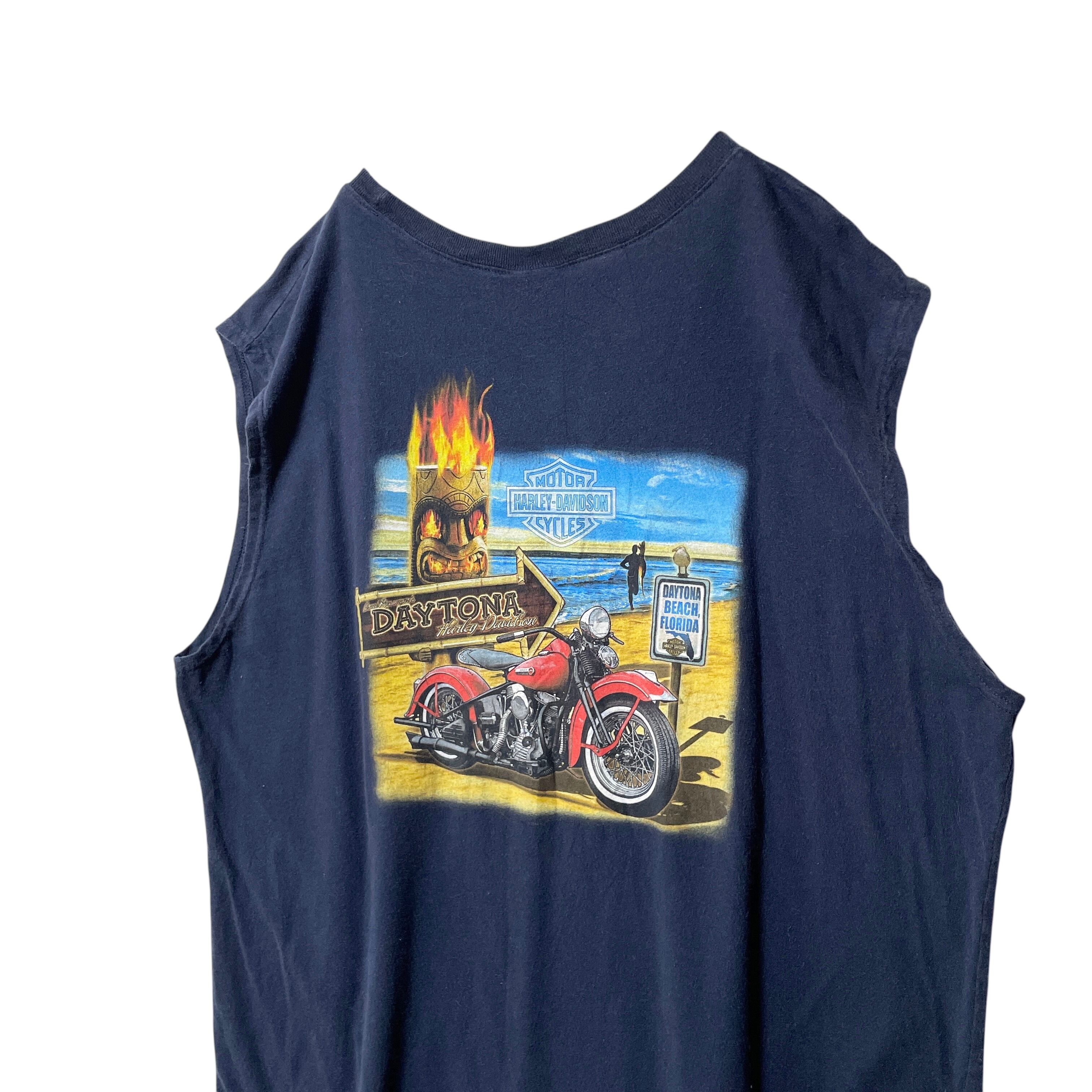 古着 ハーレーダビッドソン デイトナビーチ タンクトップ ノースリーブ 紺 XL