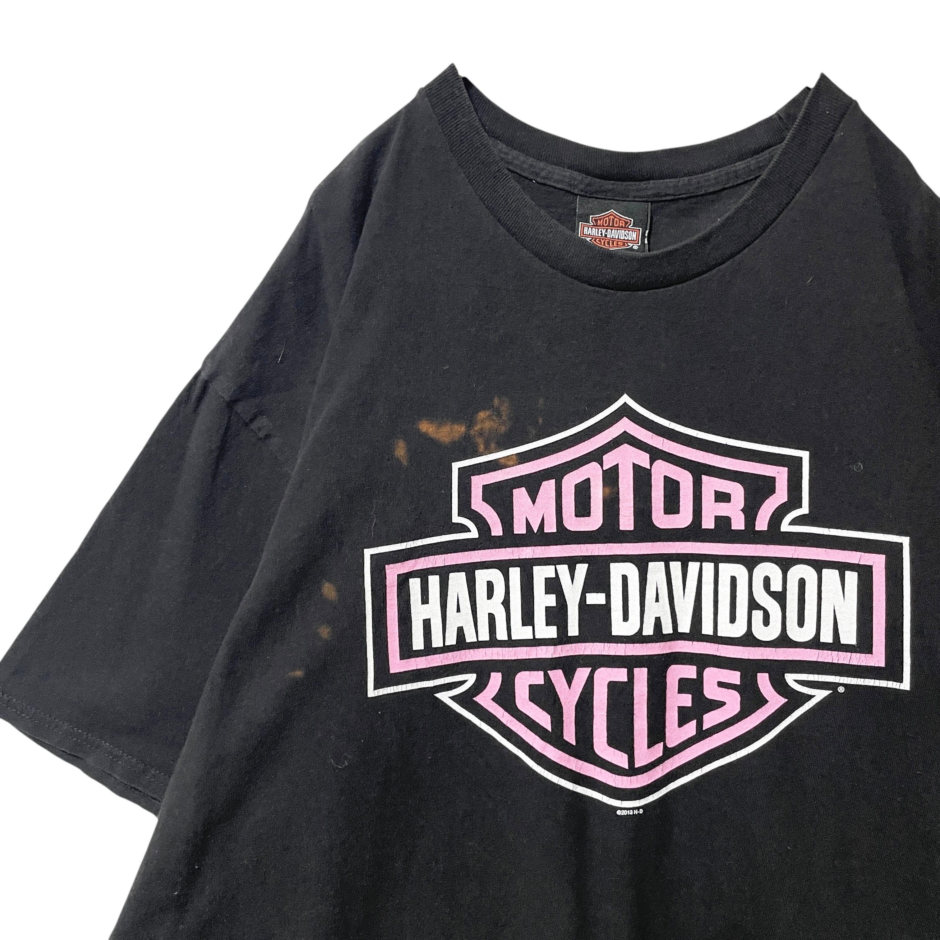 古着 ハーレーダビッドソン ビッグロゴ Tシャツ エルパソ ピンクロゴ 黒 XL