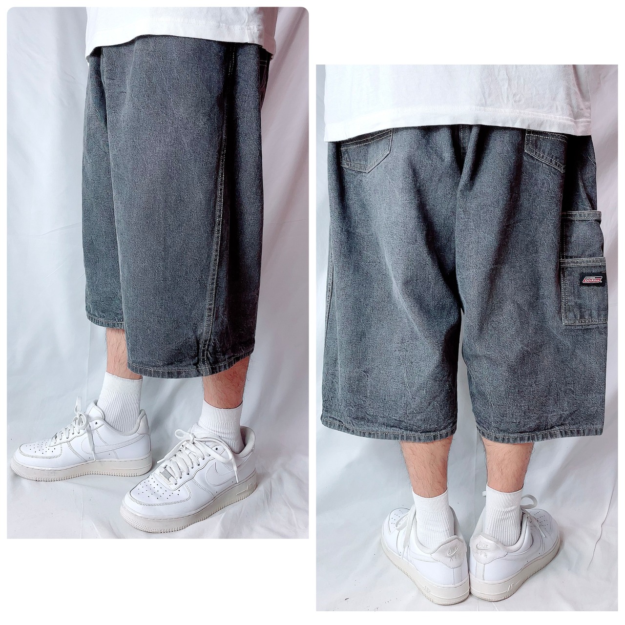 人気 ディッキーズ デニム ハーフパンツ バギーショーツ 黒 ブラックW40