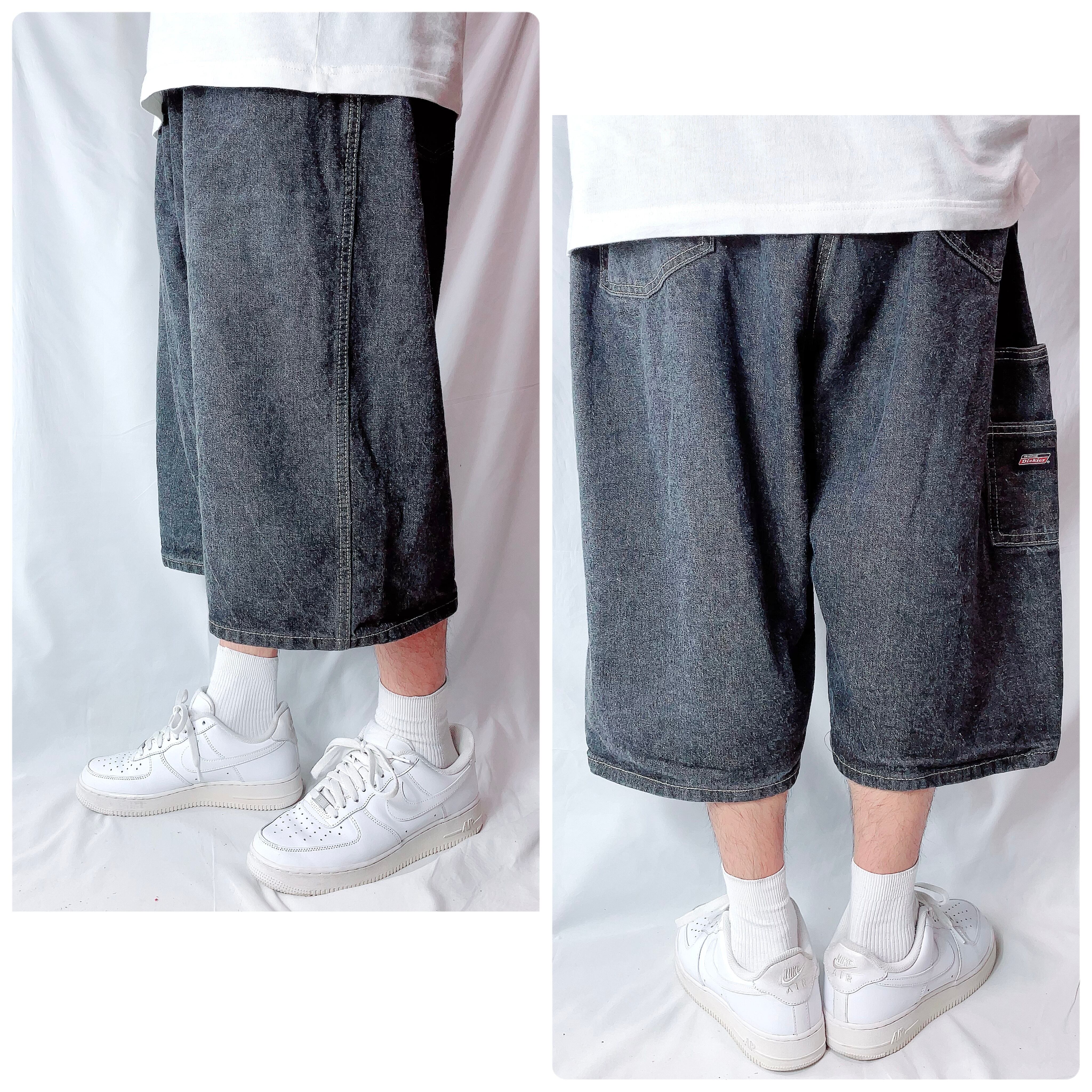 古着 ディッキーズ デニム ハーフパンツ バギーショーツ ブラック 黒 W44