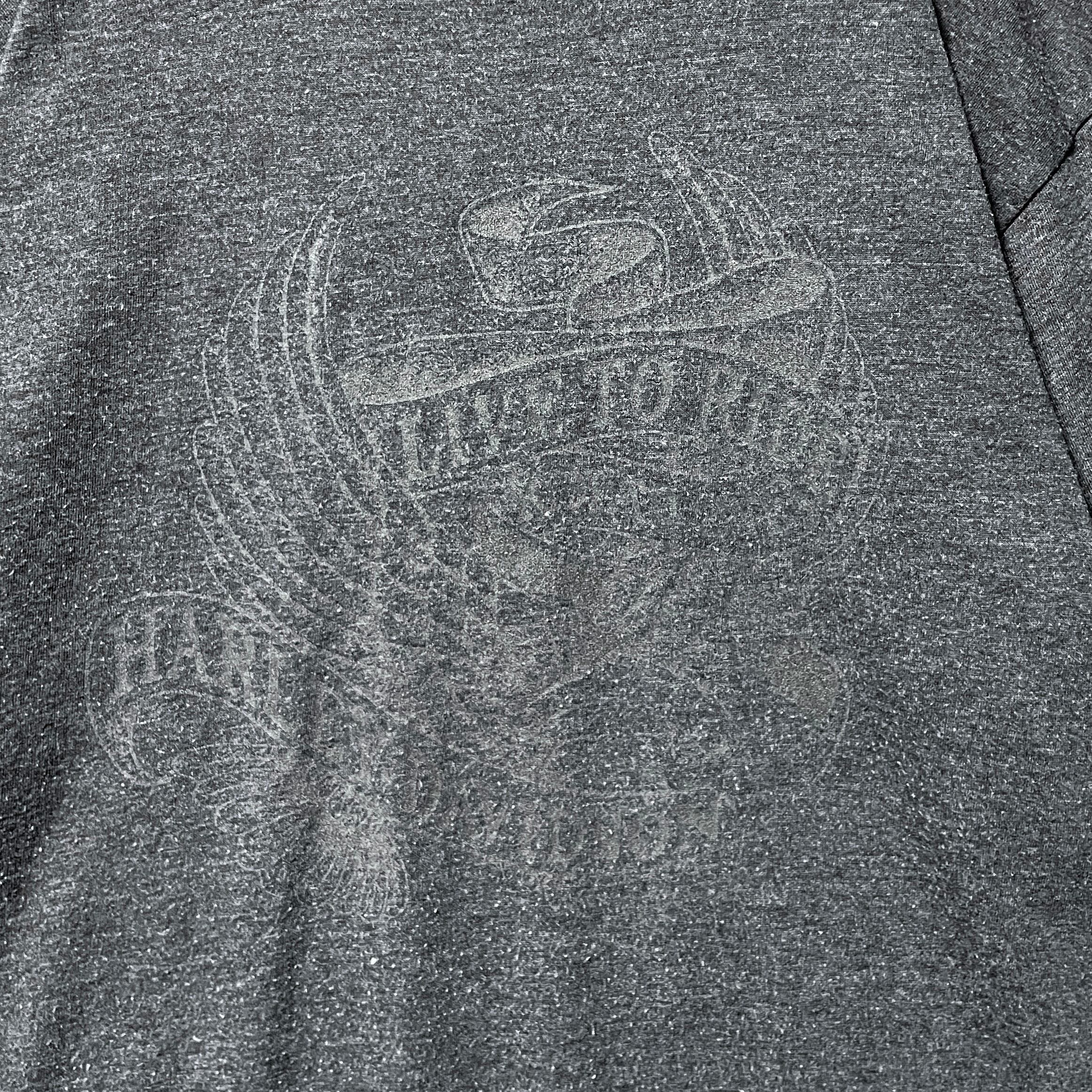 ▲両面にプリントがありますが、とても薄く元々なのかは不明です。全体的に細かい毛玉、使用感が強い商品です。