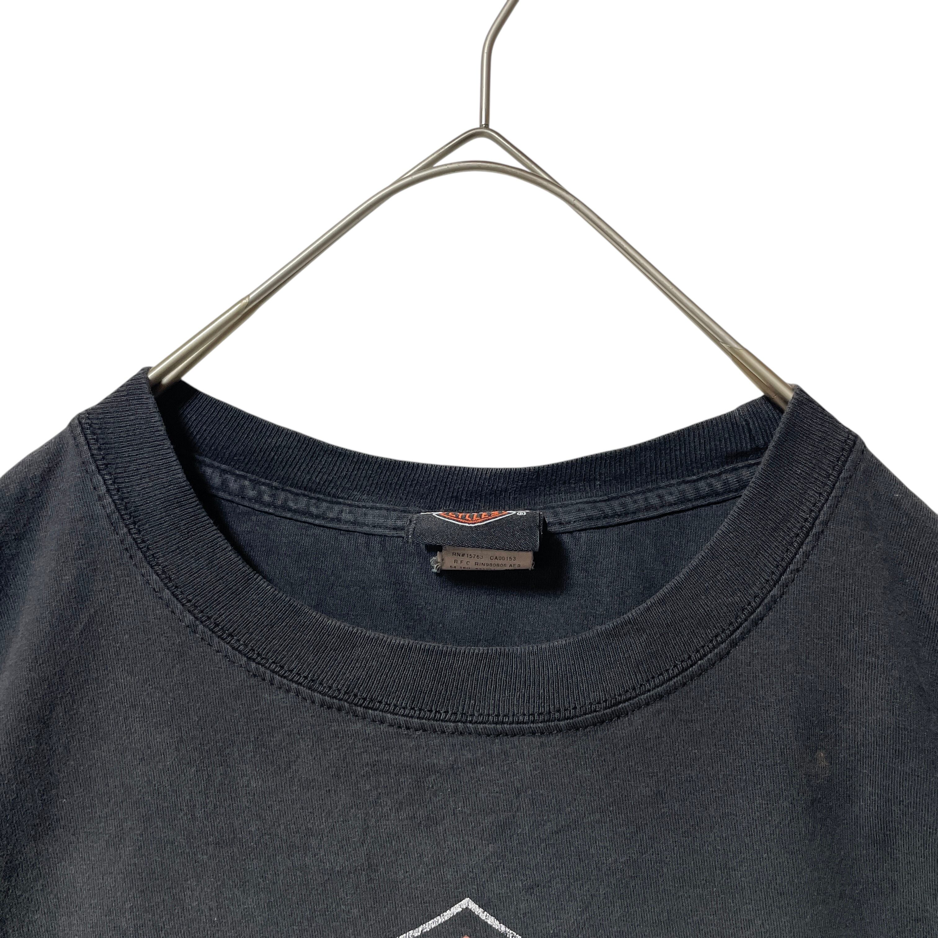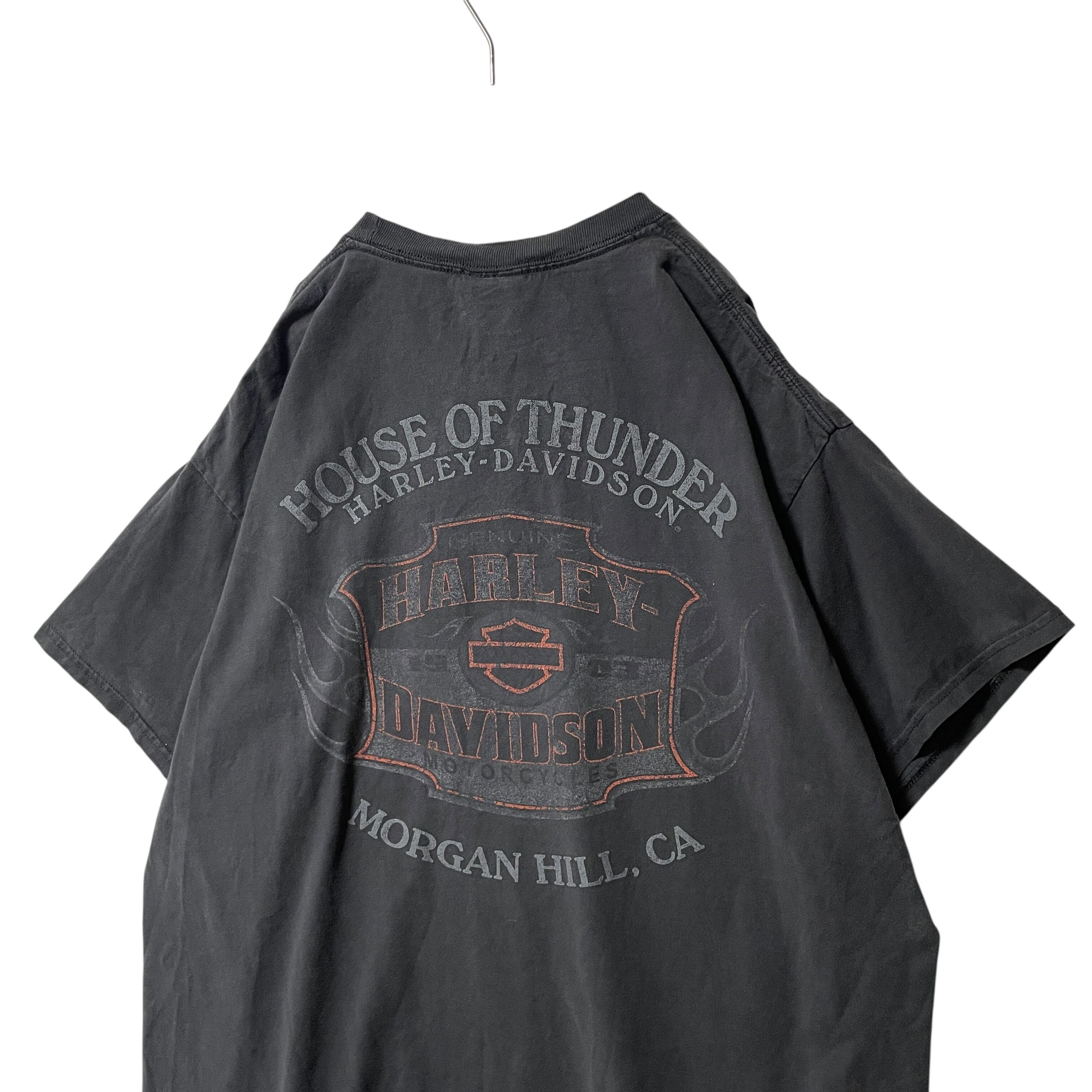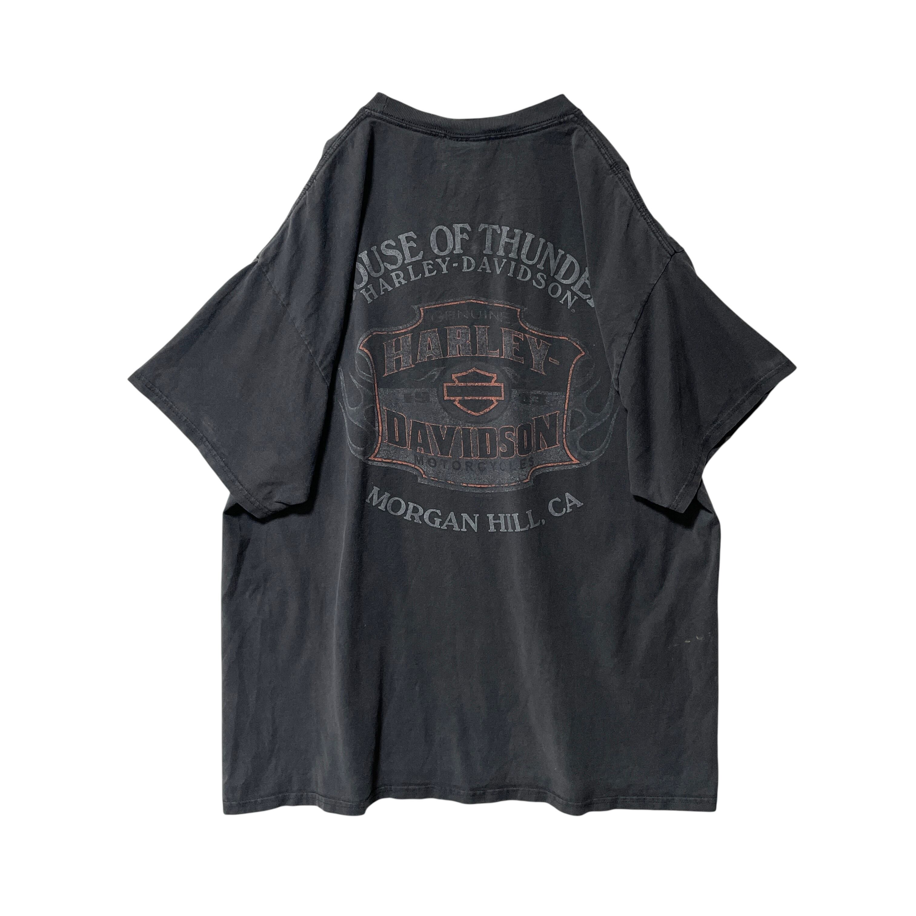 古着 良フェード◎ ハーレーダビッドソン Tシャツ ビッグロゴ 炎 黒 XL