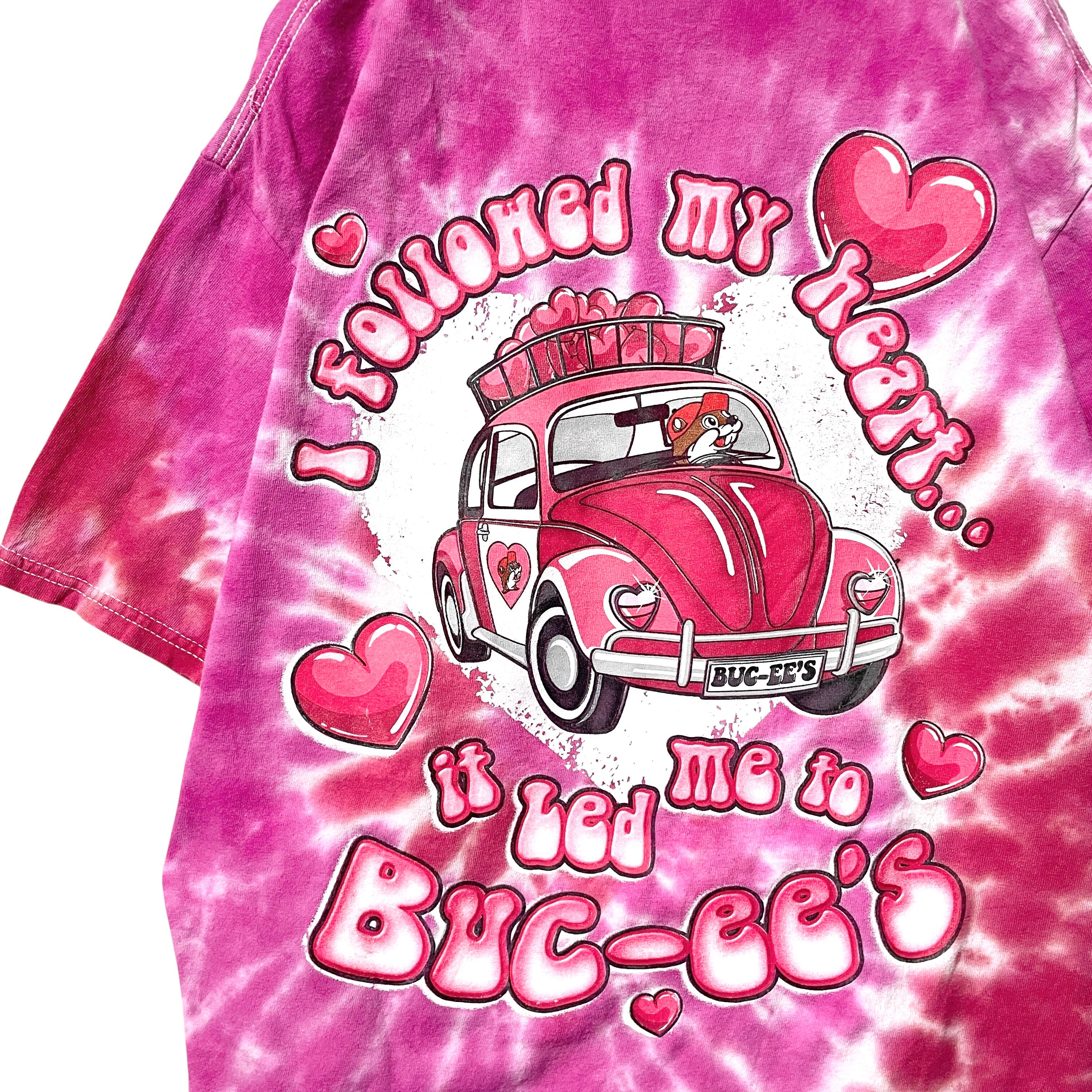 古着 バッキーズ タイダイTシャツ アメリカ企業キャラ ピンク ハート 車 M