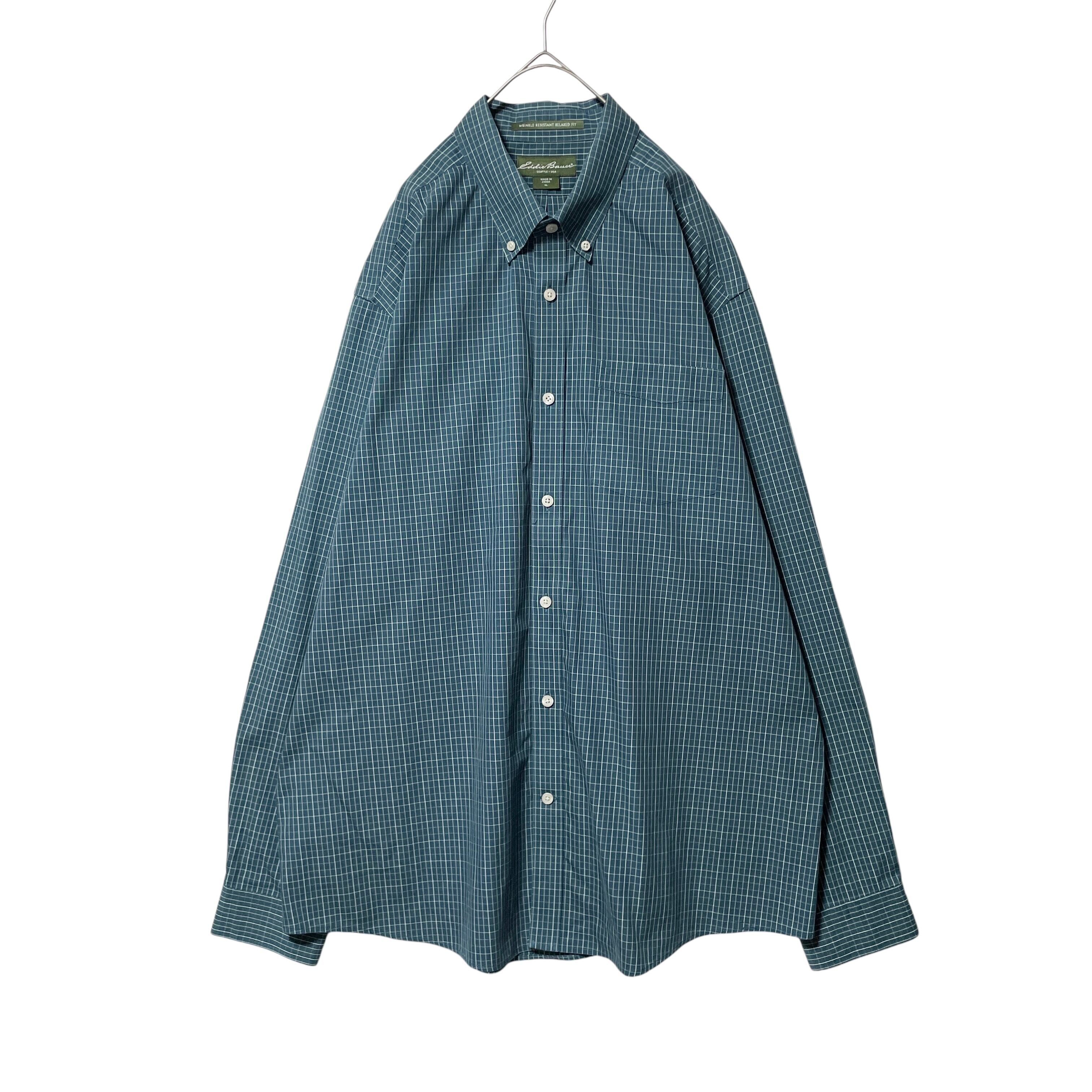 エディーバウアー チェック柄 長袖ボタンダウンシャツ グリーン 青緑系 XL