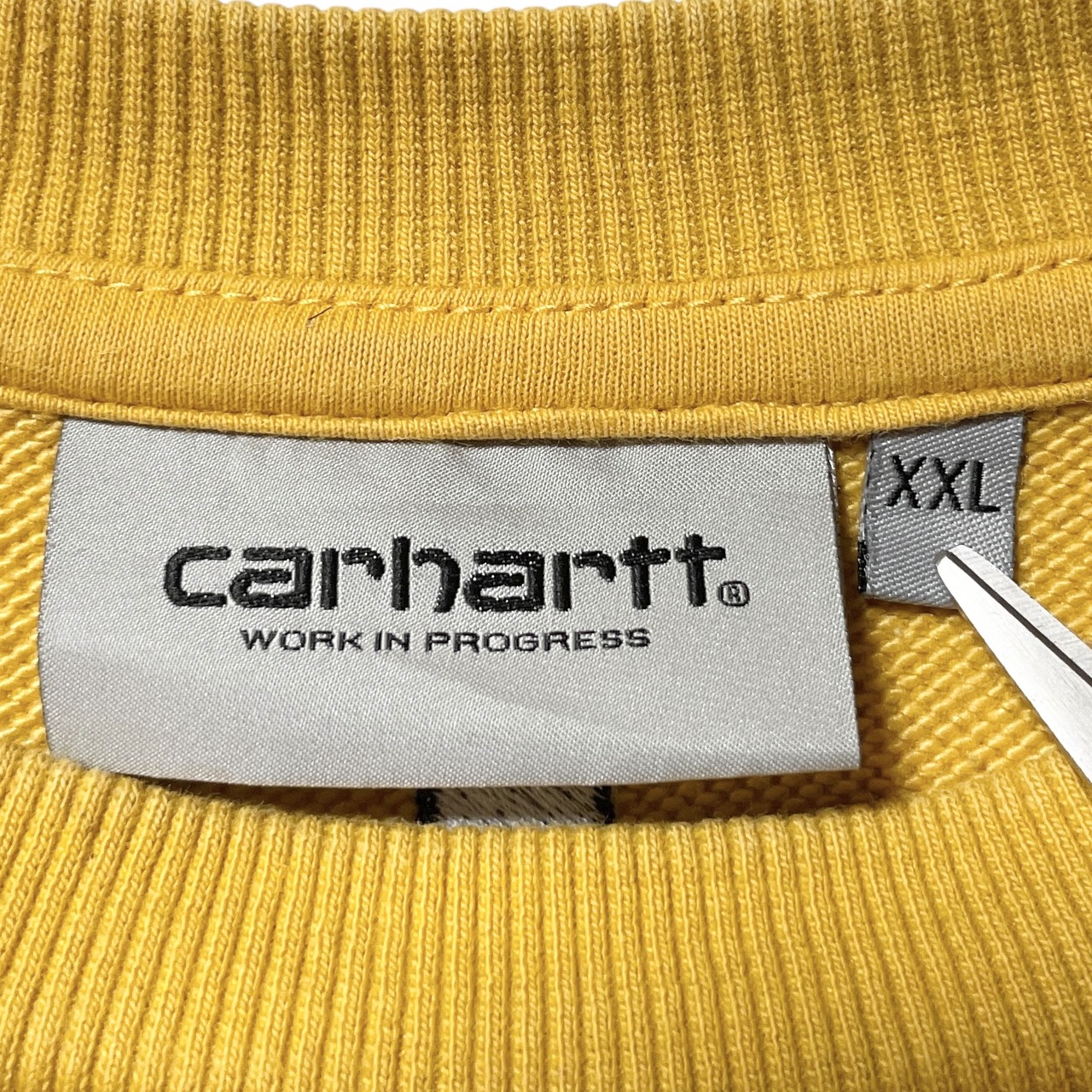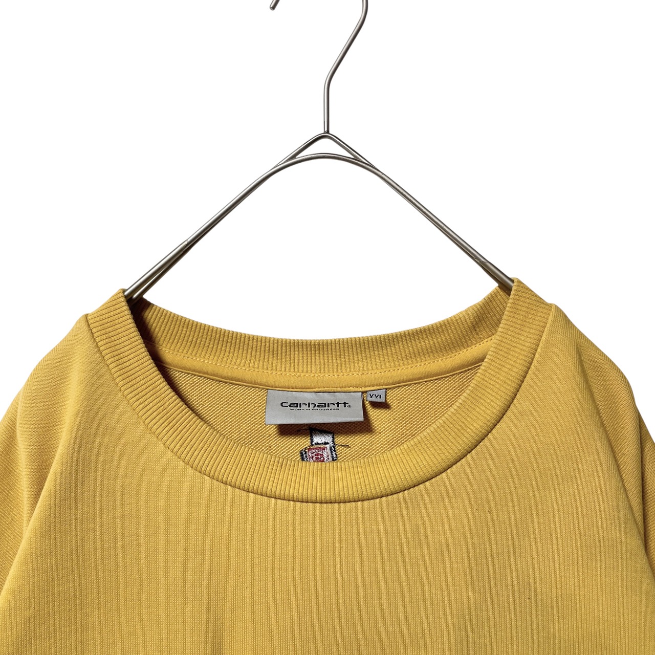 古着 カーハート 刺繍 センターロゴ クールネック スウェット イエロー XXL