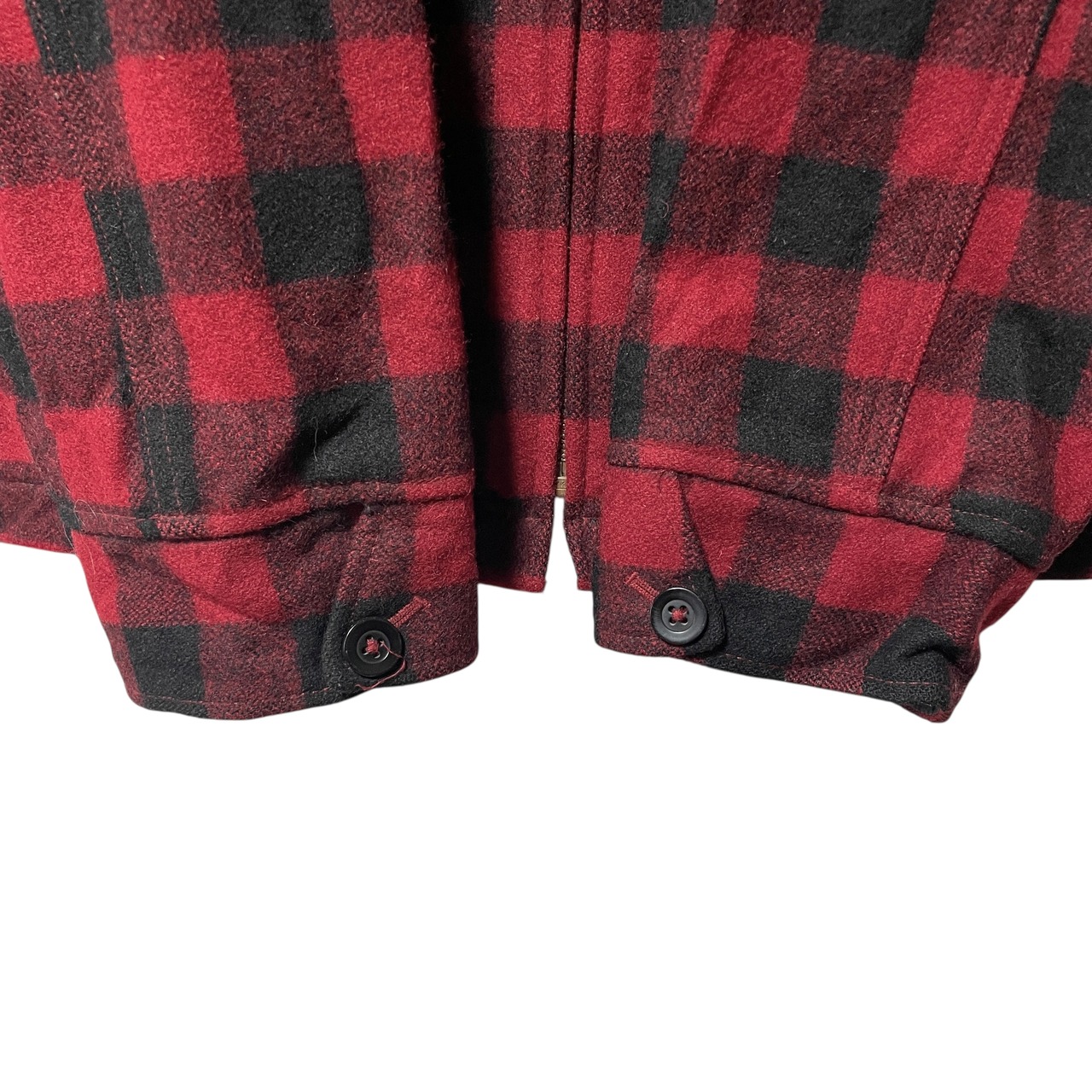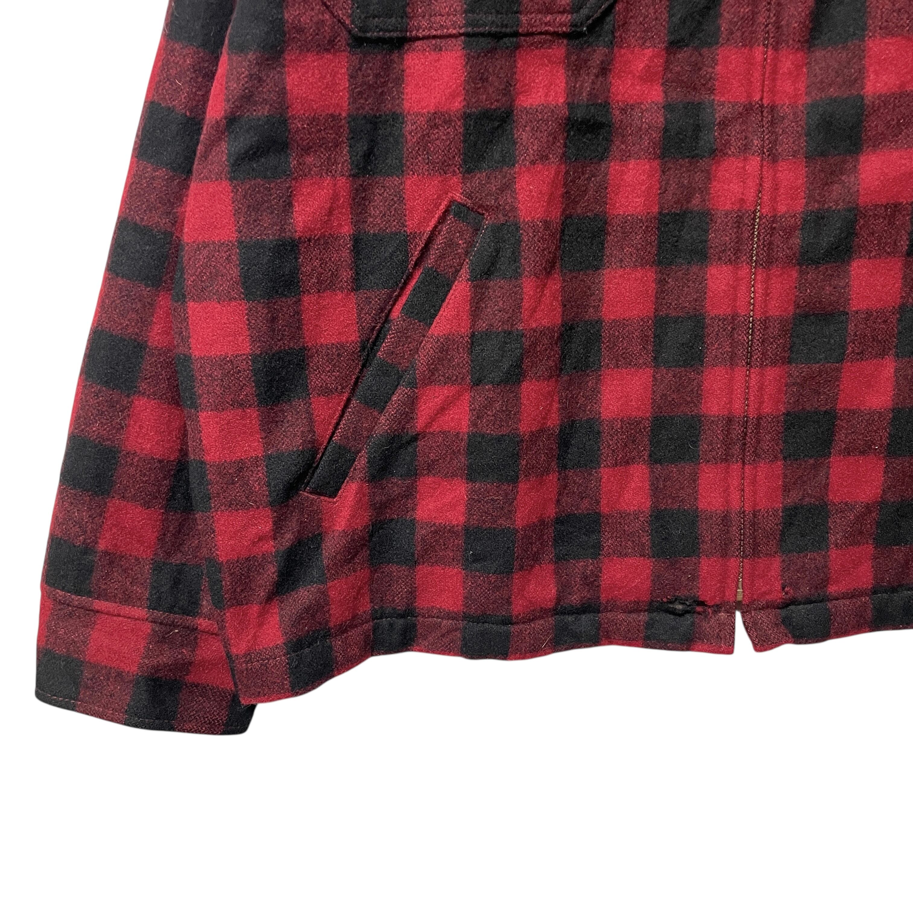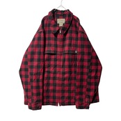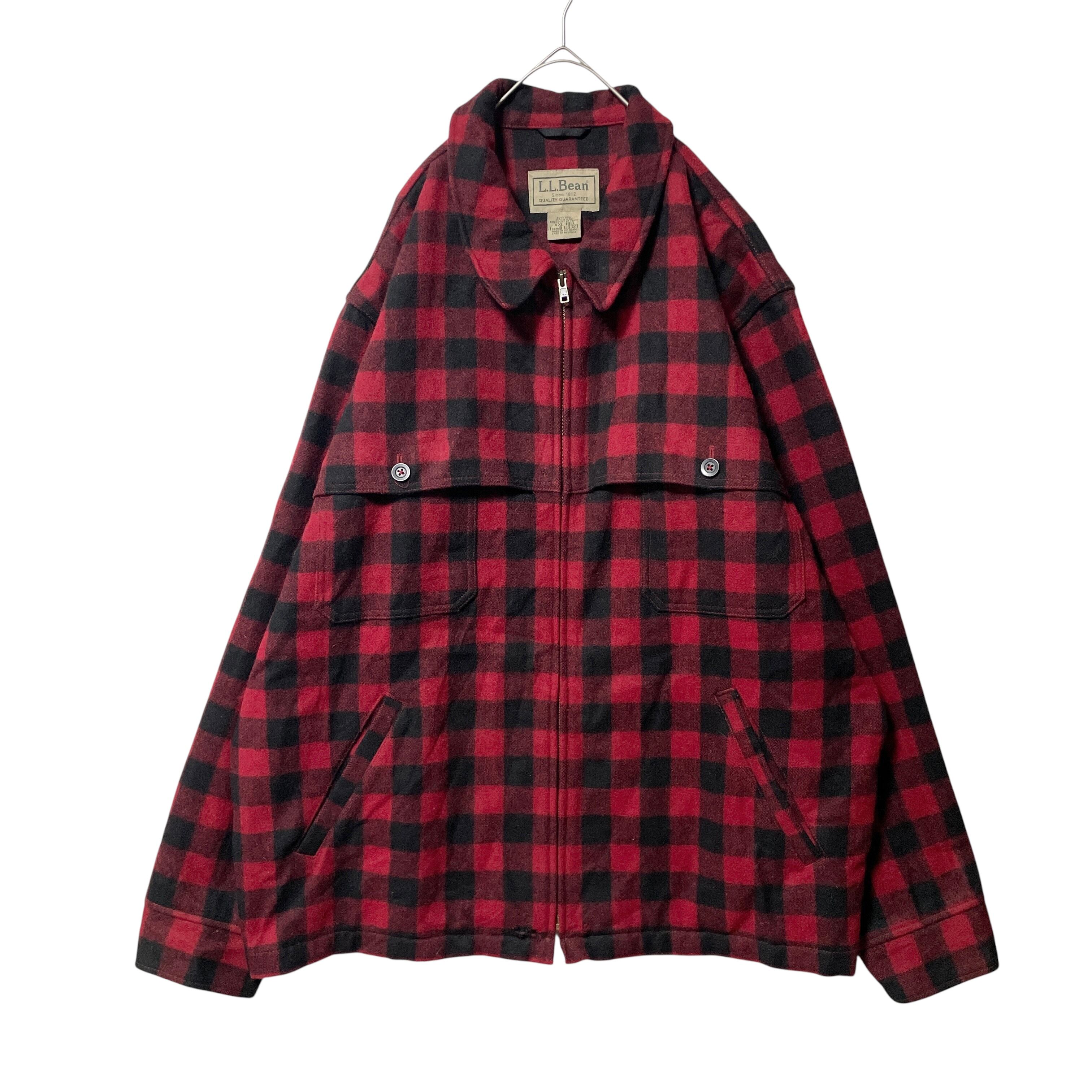 エルエルビーン ブロックチェック柄 ジップアップ ウールジャケット 赤 2XL