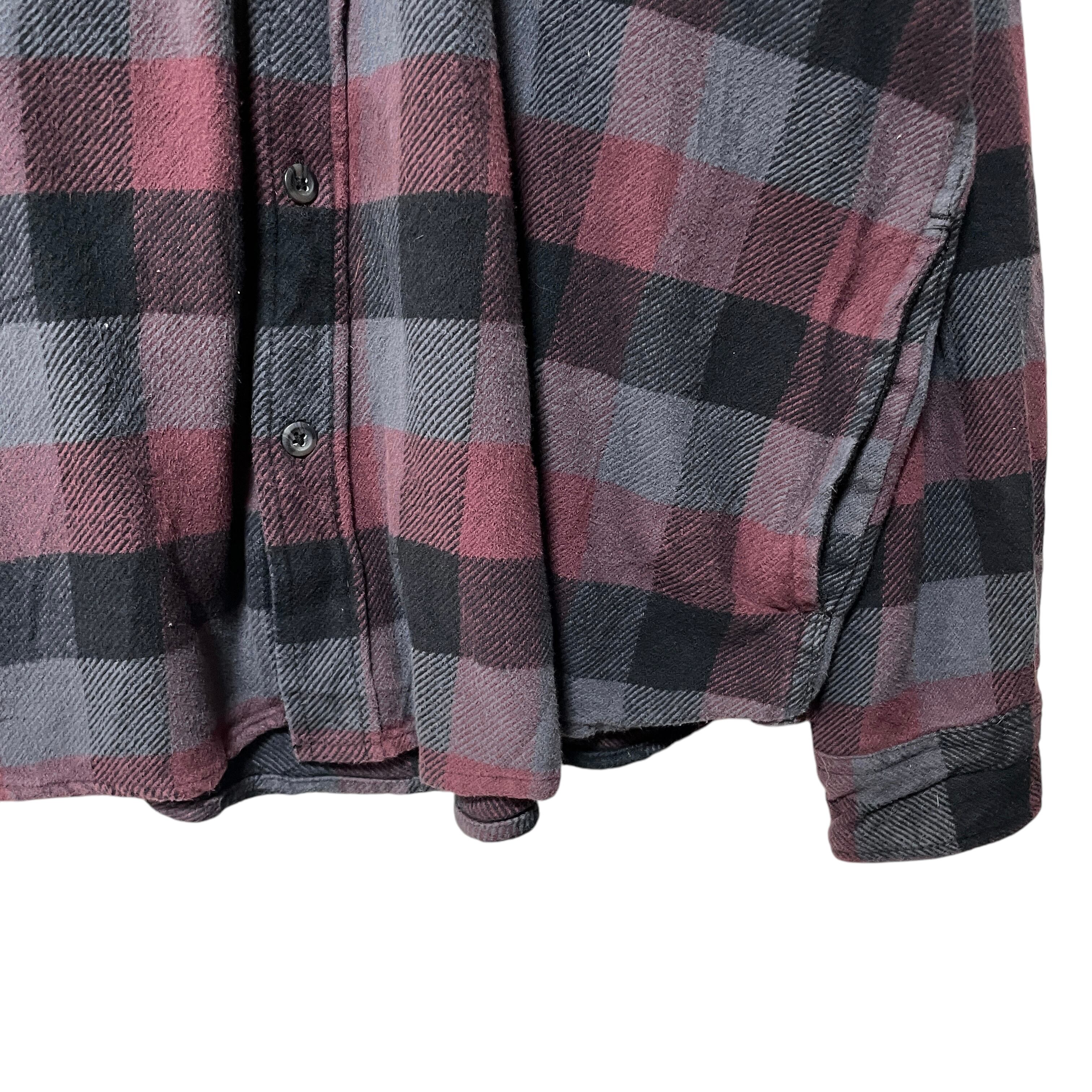 オービス ヘビーウェイト ネルシャツ サイドポケット ボルドー グレー XXL