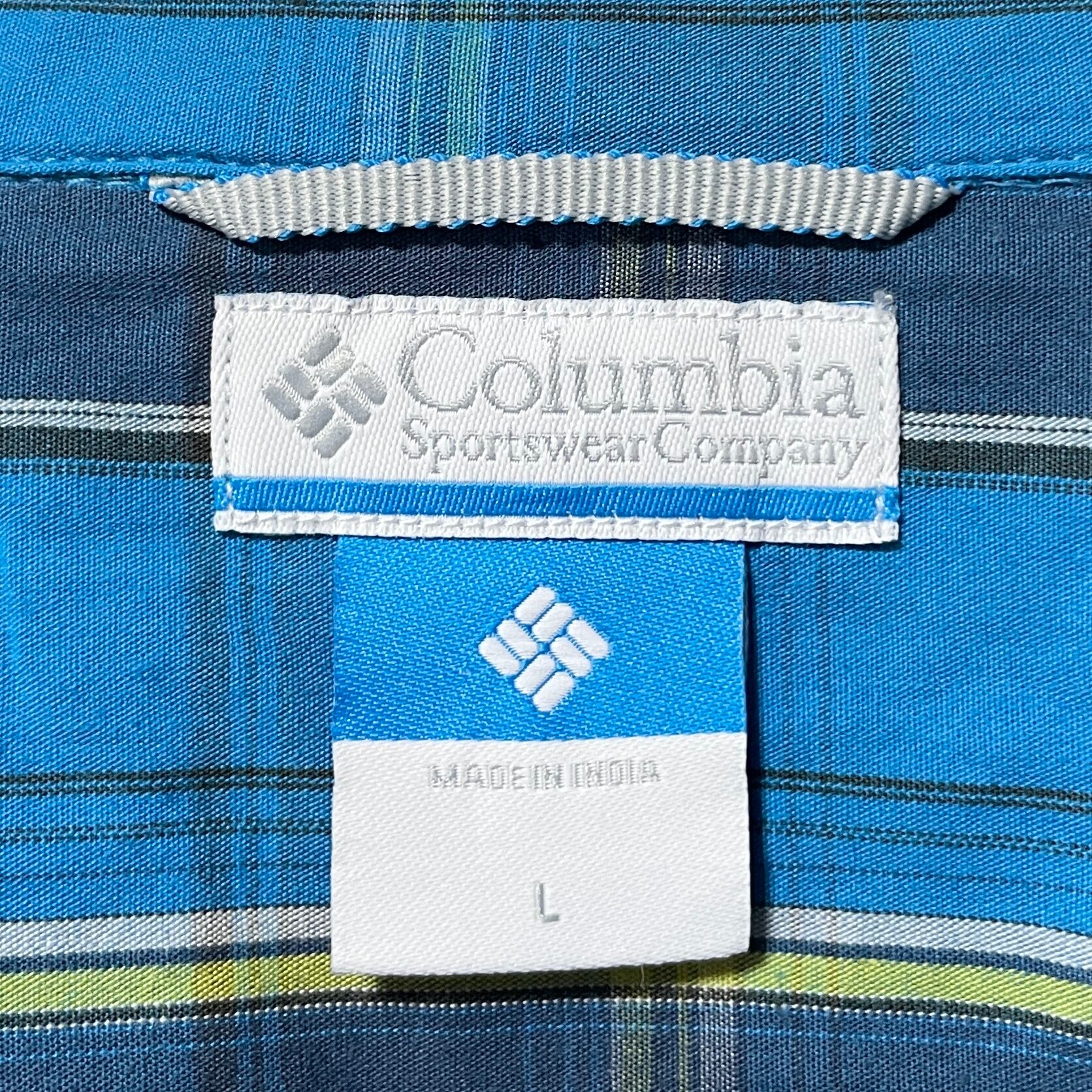 コロンビア メンズ チェック柄 長袖シャツ BDシャツ 青 ブルー系 Lサイズ
