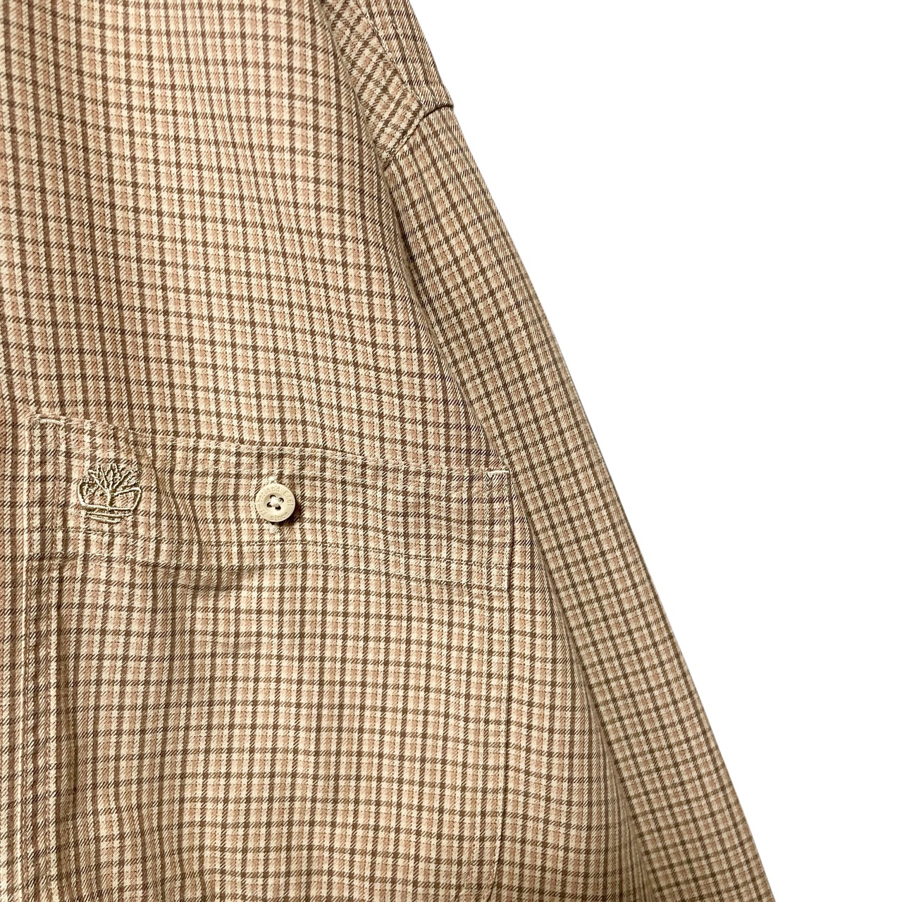 ティンバーランド チェック柄 長袖シャツ BDシャツ ロゴ刺繍 ベージュ L