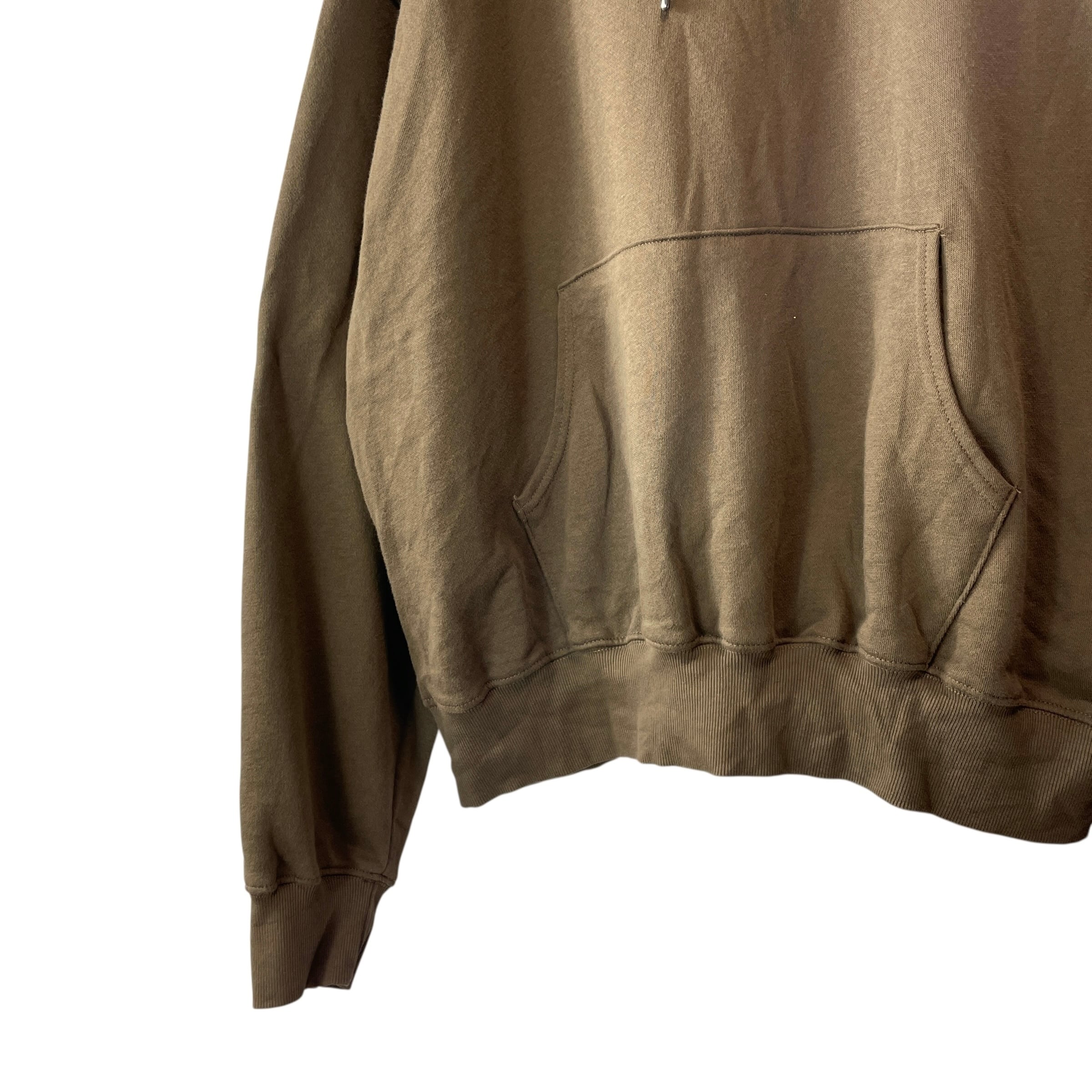 ゆったりとしたシルエットのプルオーバーパーカー。ブラウン系の落ち着いたカラーで、胸元のロゴ刺繍がポイント◎裏起毛で暖かく、デイリーからアウトドアまで幅広く使える一着。状態も良好で、まだまだ長くご愛用いただけます。