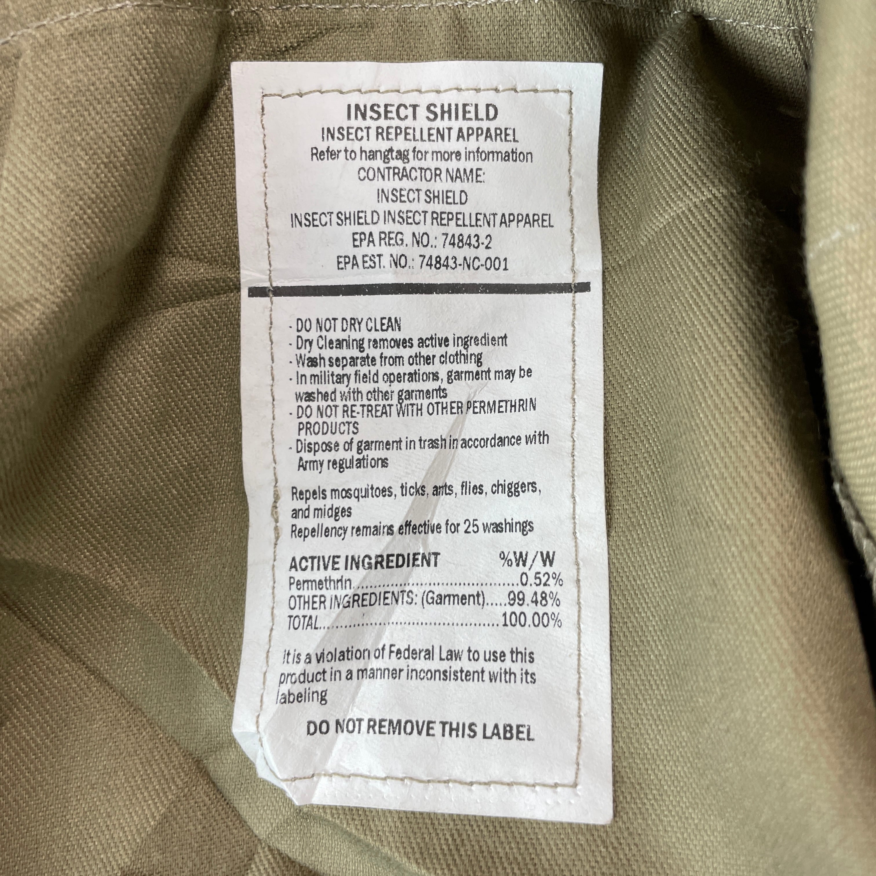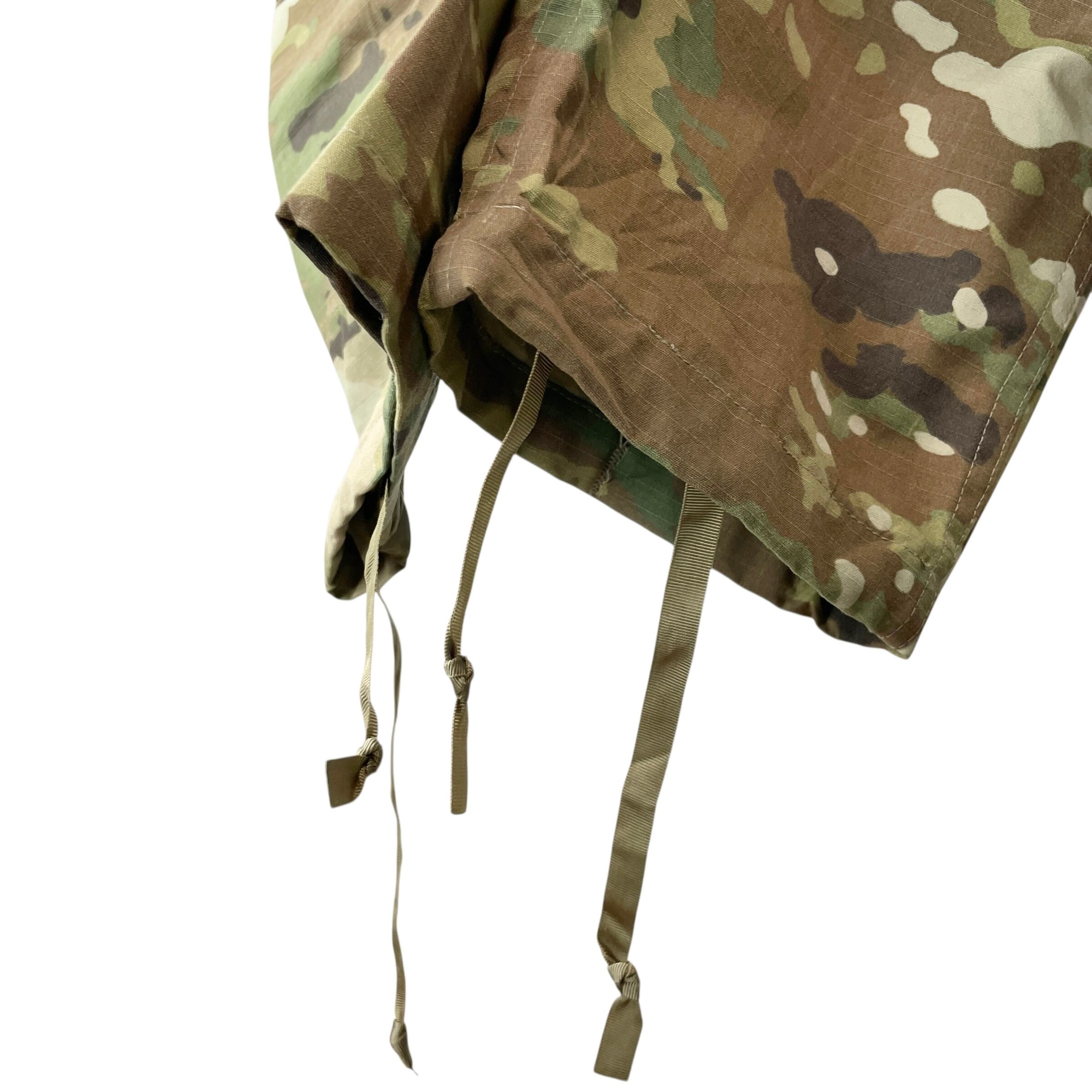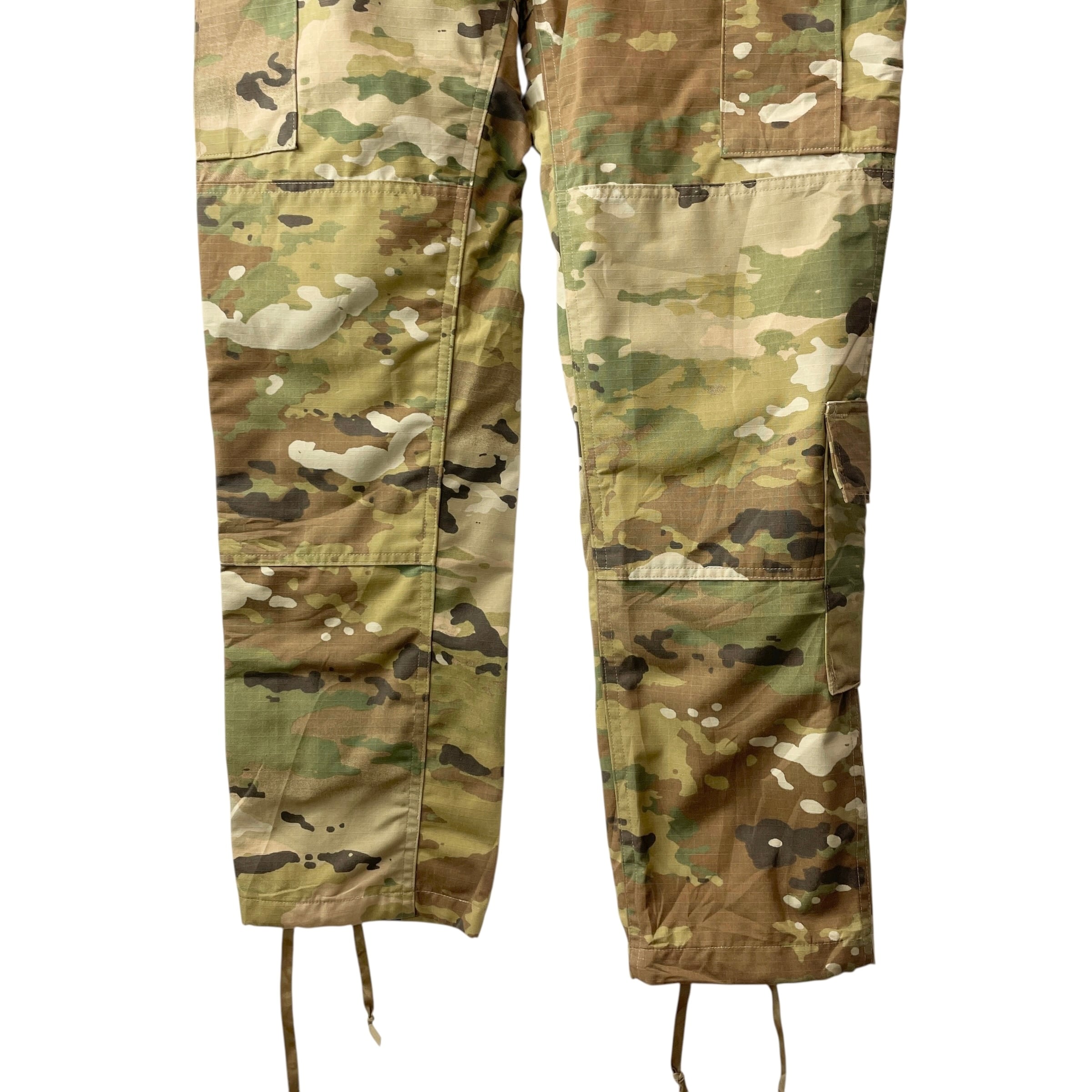 ミリタリー好きに人気の米軍実物 ACU コンバットパンツ。インセクトシールド加工(ペルメトリン含有)で、蚊・ダニ・ハエなどの害虫を寄せ付けにくい仕様です。軽量で破れに強いリップストップ生地、収納力抜群のカーゴポケット、裾のドローコードなど機能性も充実。