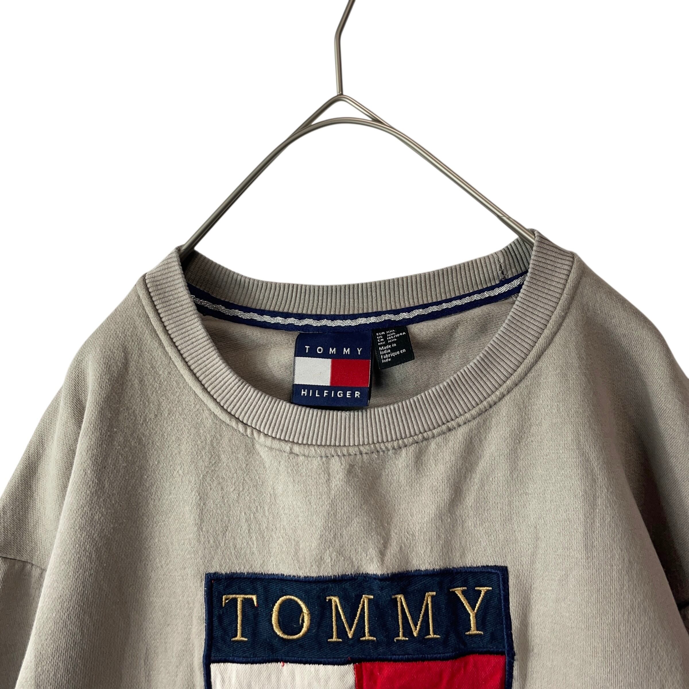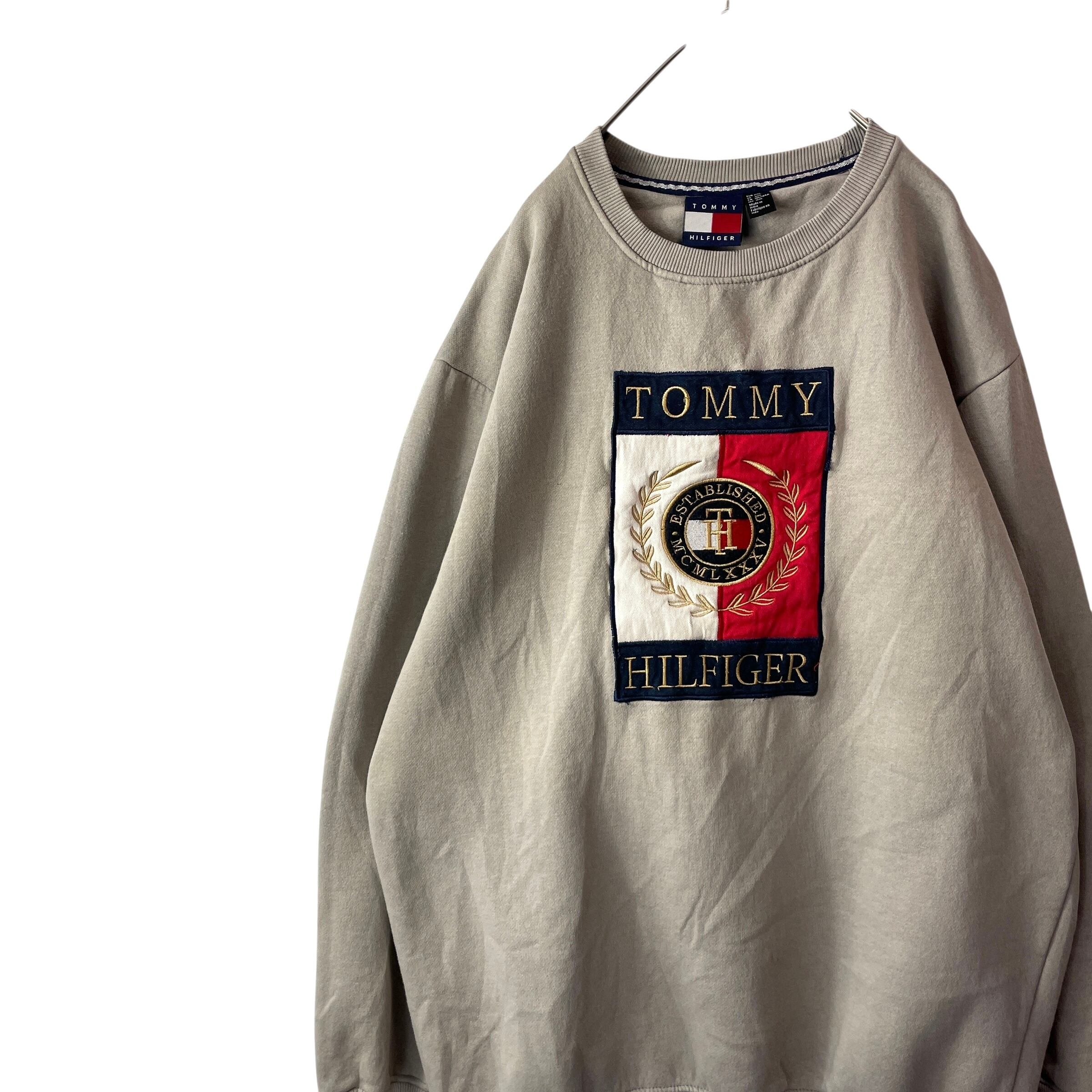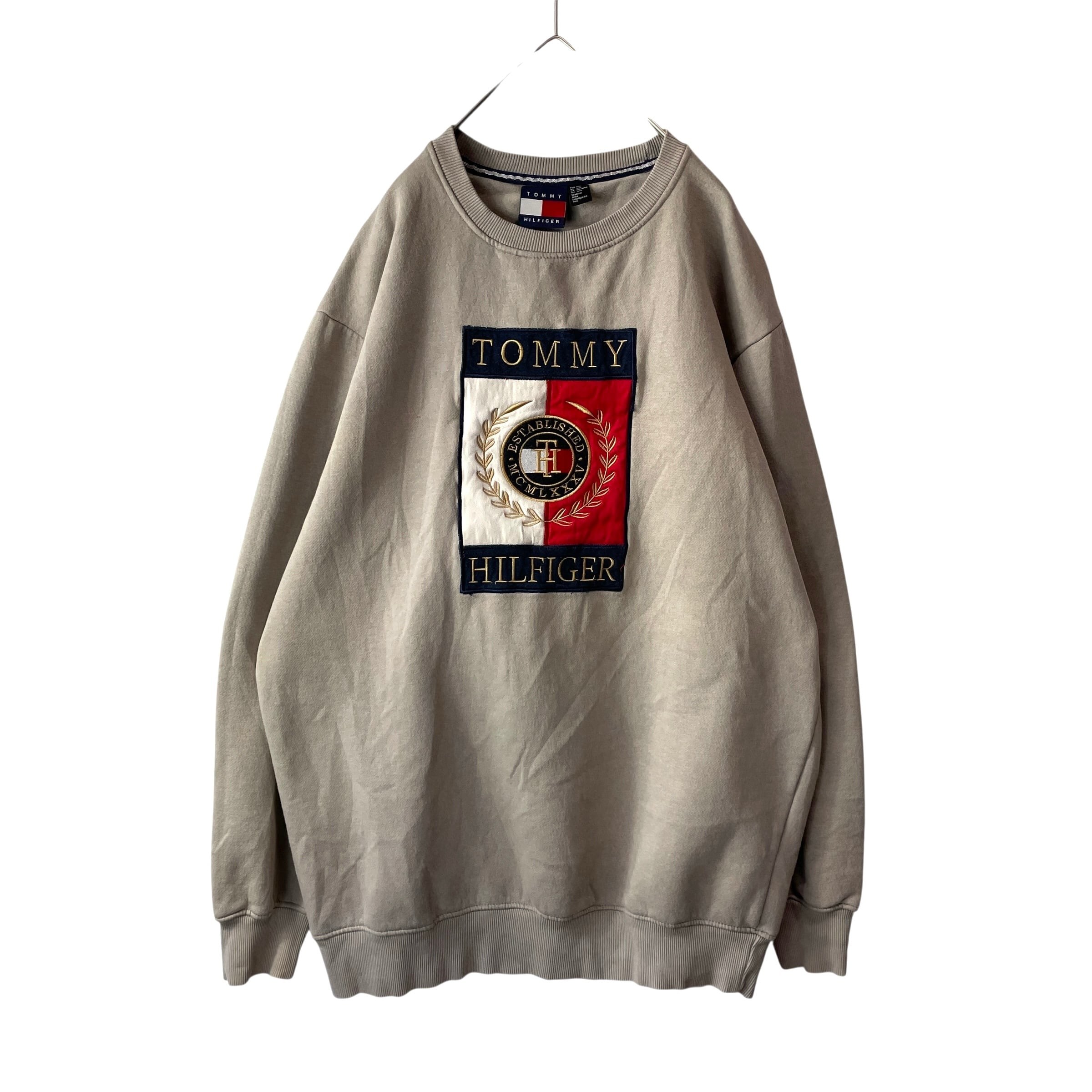 トミーヒルフィガー 刺繍 ビッグロゴ クールネックスウェット グレージュ XXL