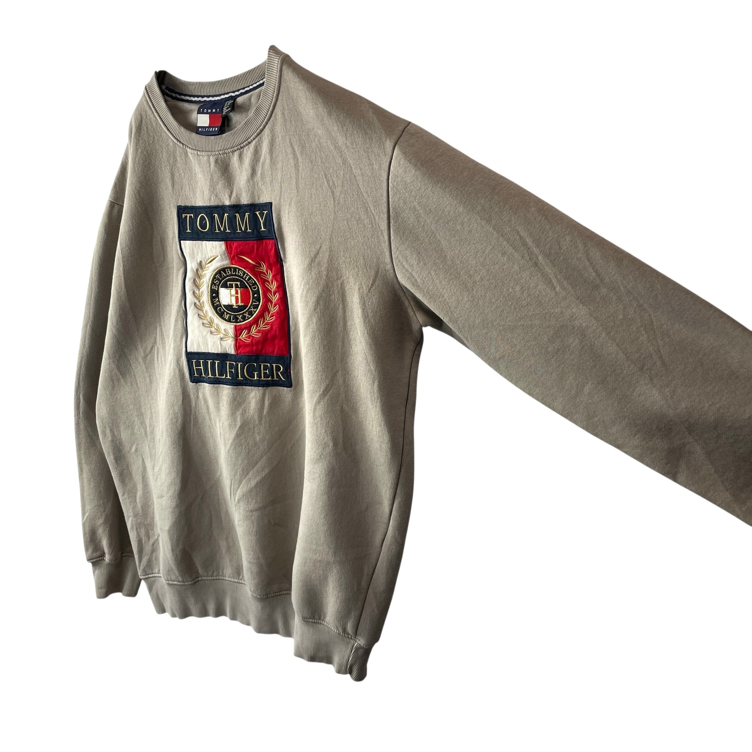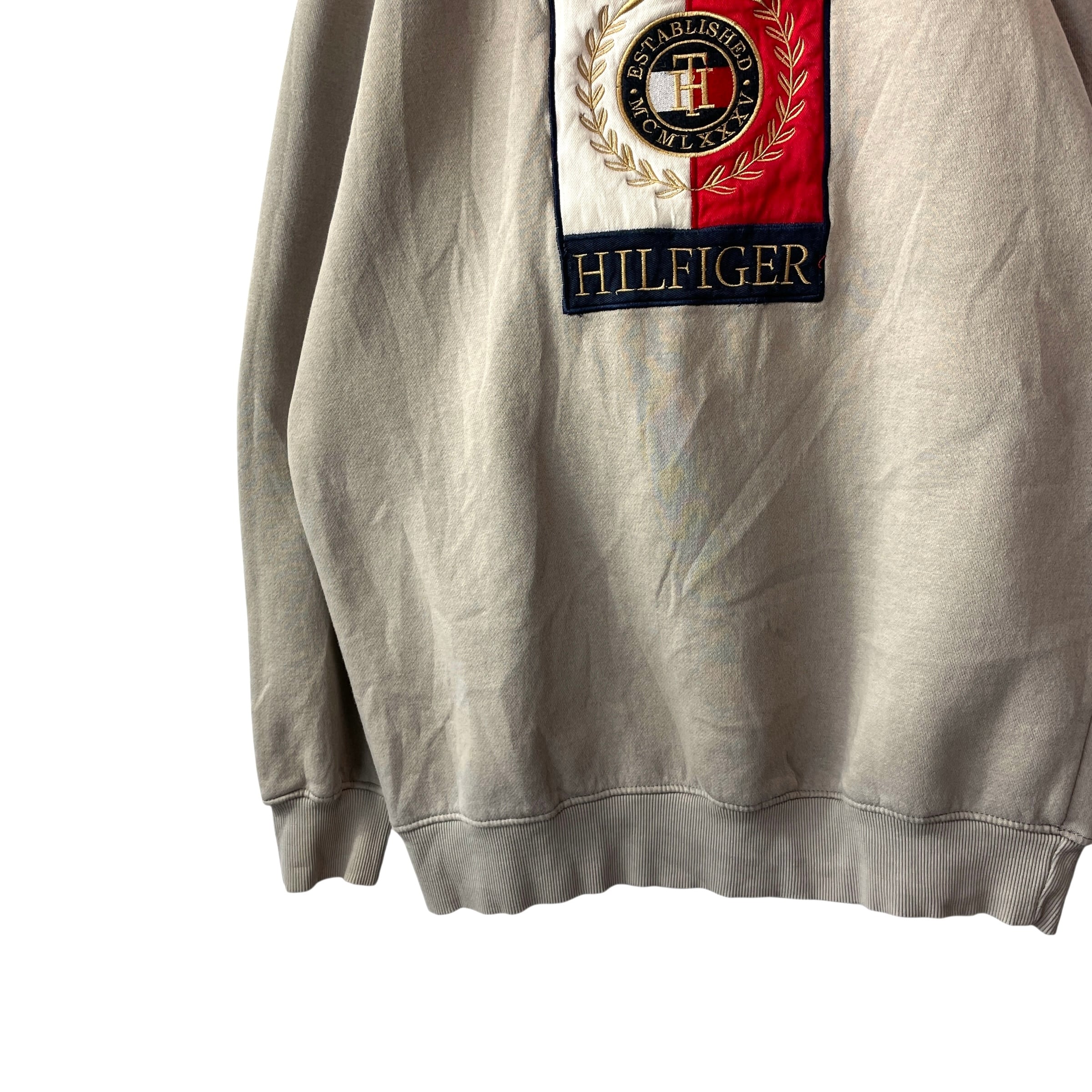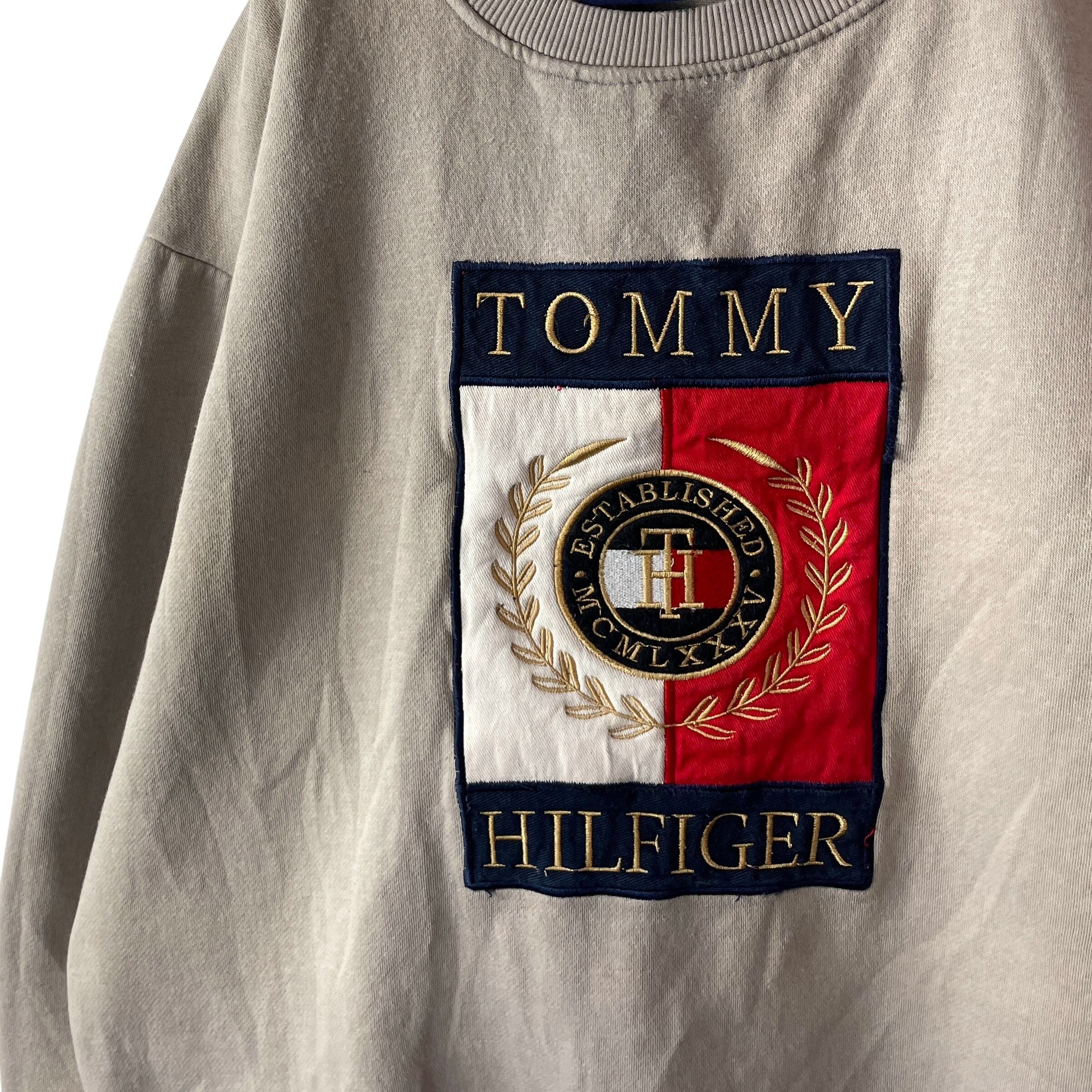 トミーヒルフィガー 刺繍 ビッグロゴ クールネックスウェット グレージュ XXL