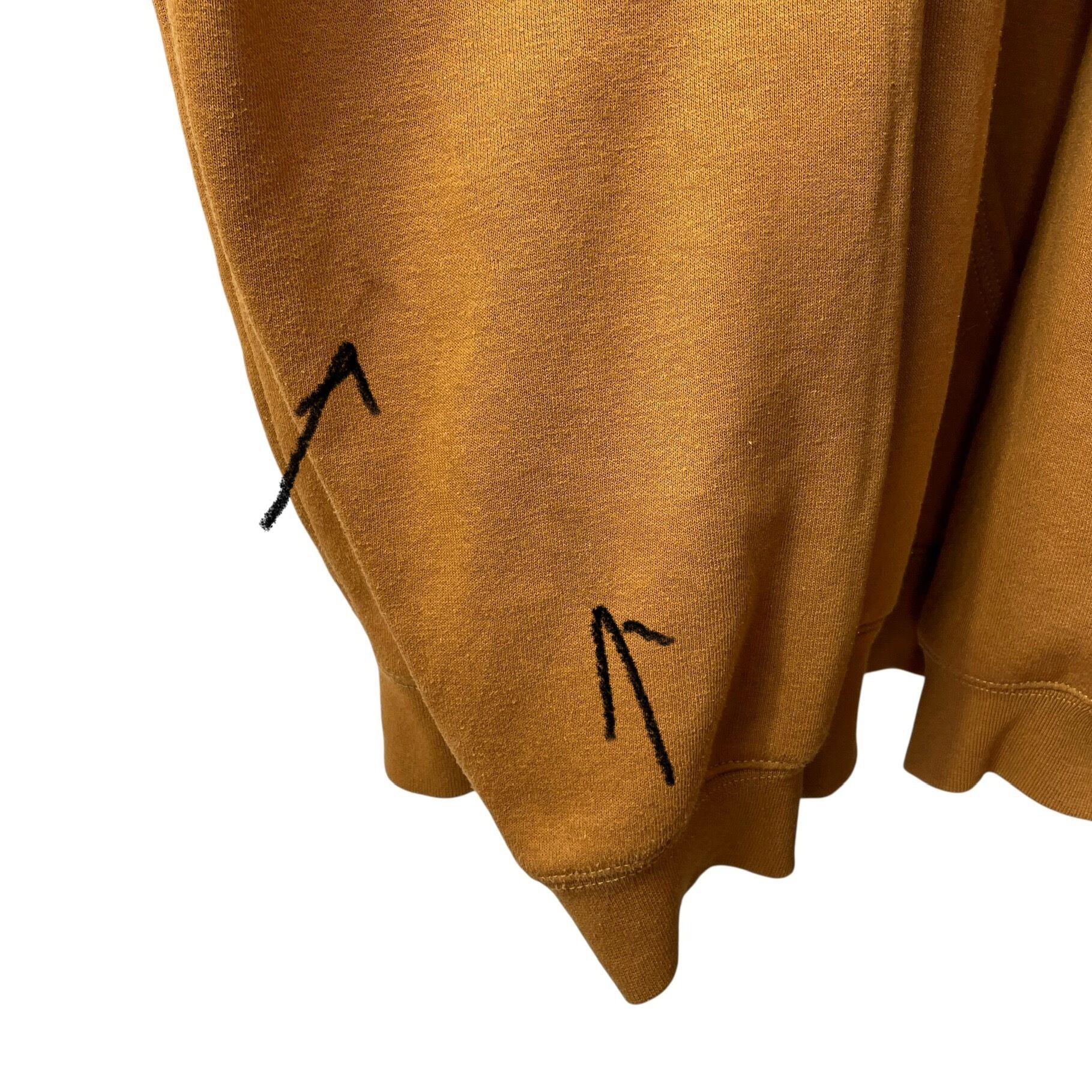 ▲お腹ポケット、袖口上 薄い汚れ 変色箇所あり