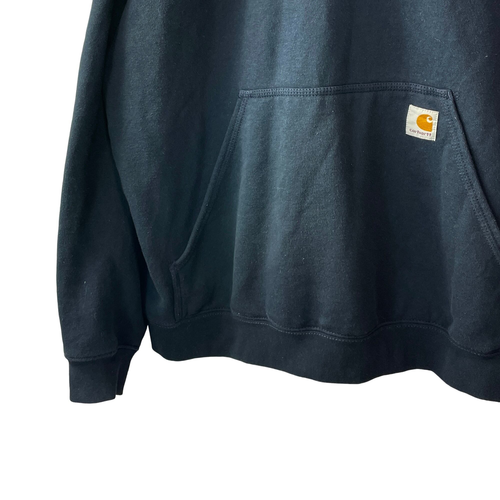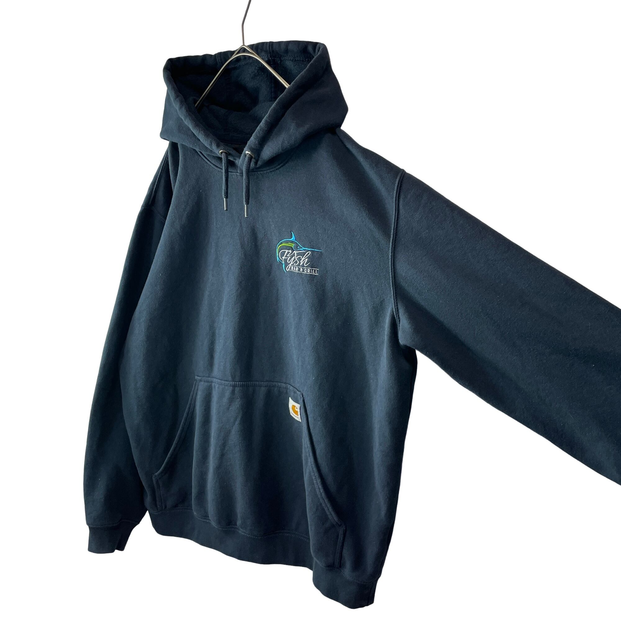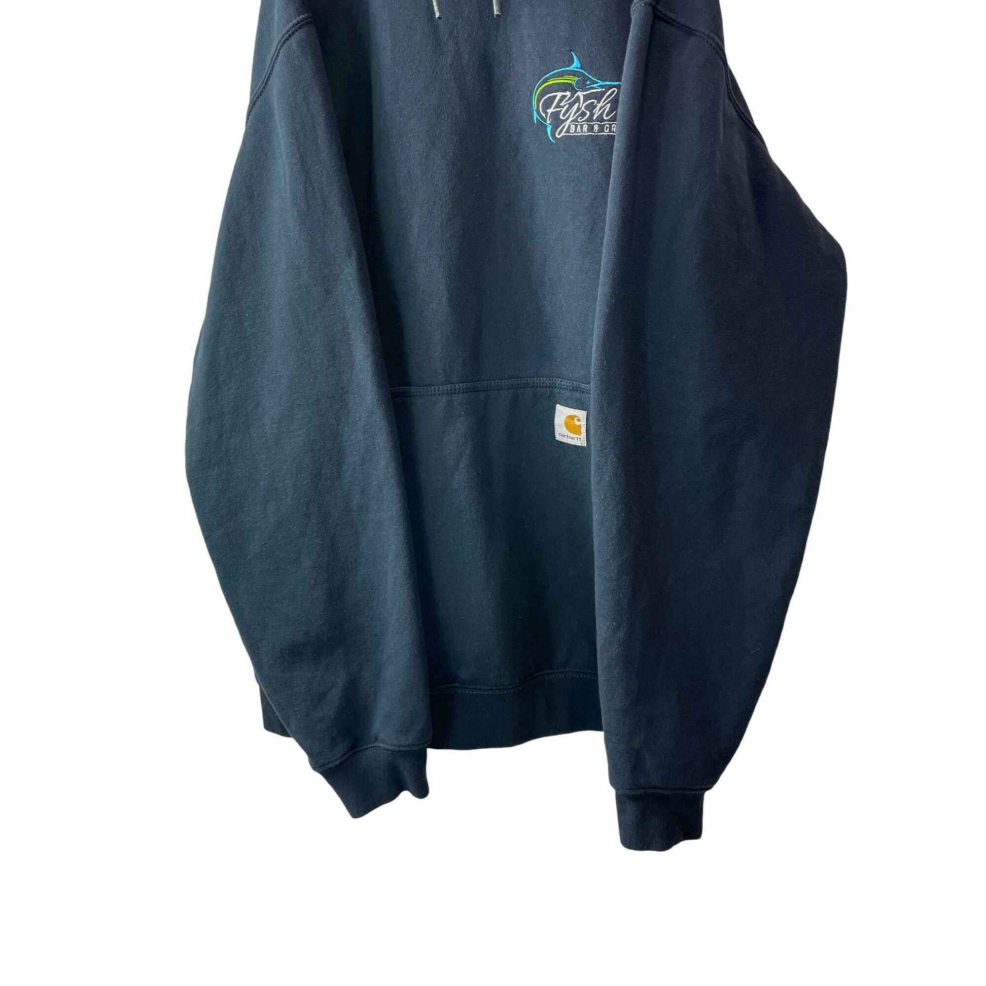 海外古着 カーハート 企業刺繍 ルーズフィット パーカー フェードネイビー L