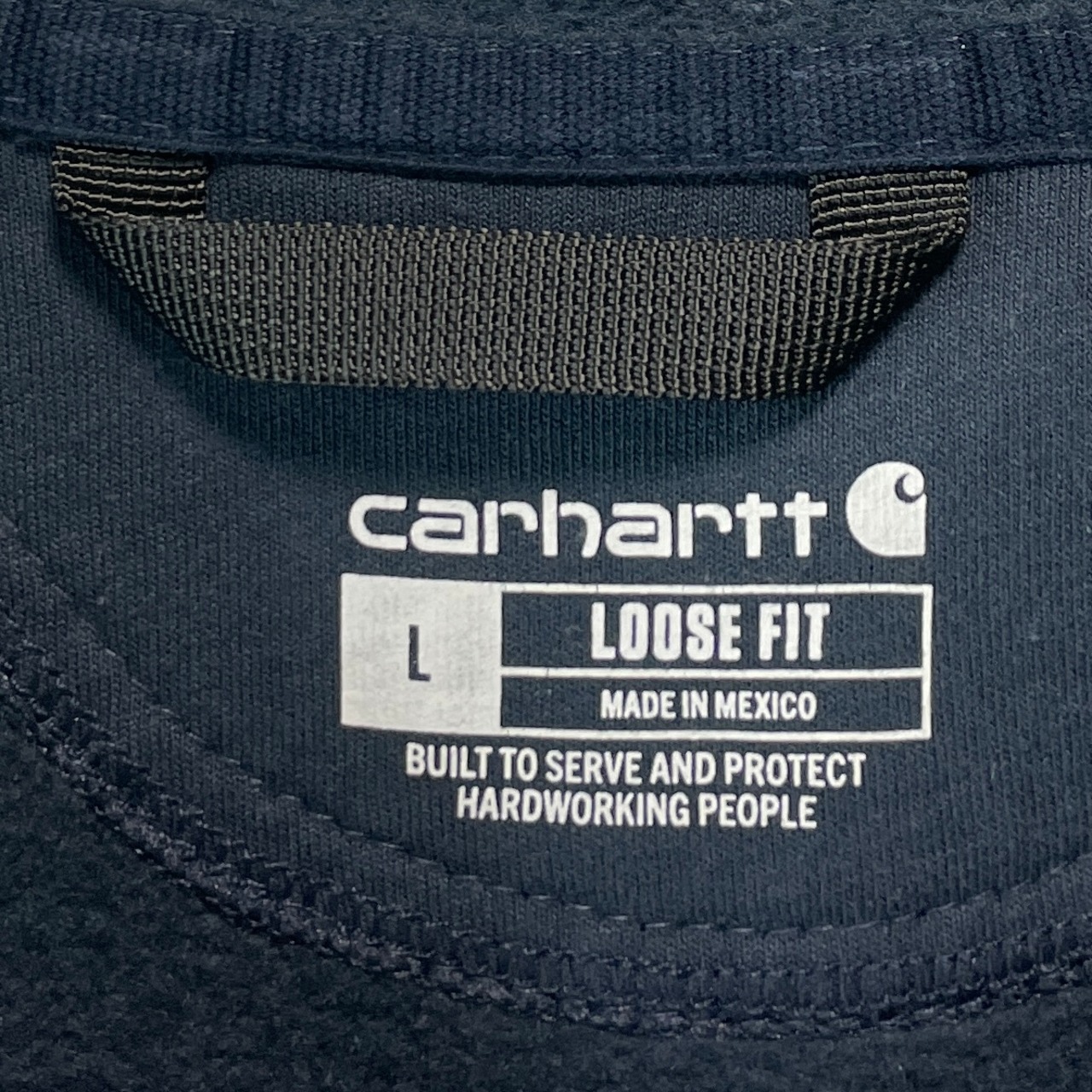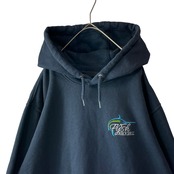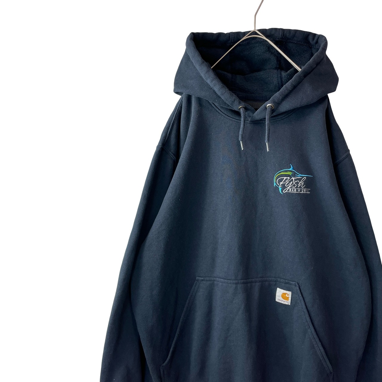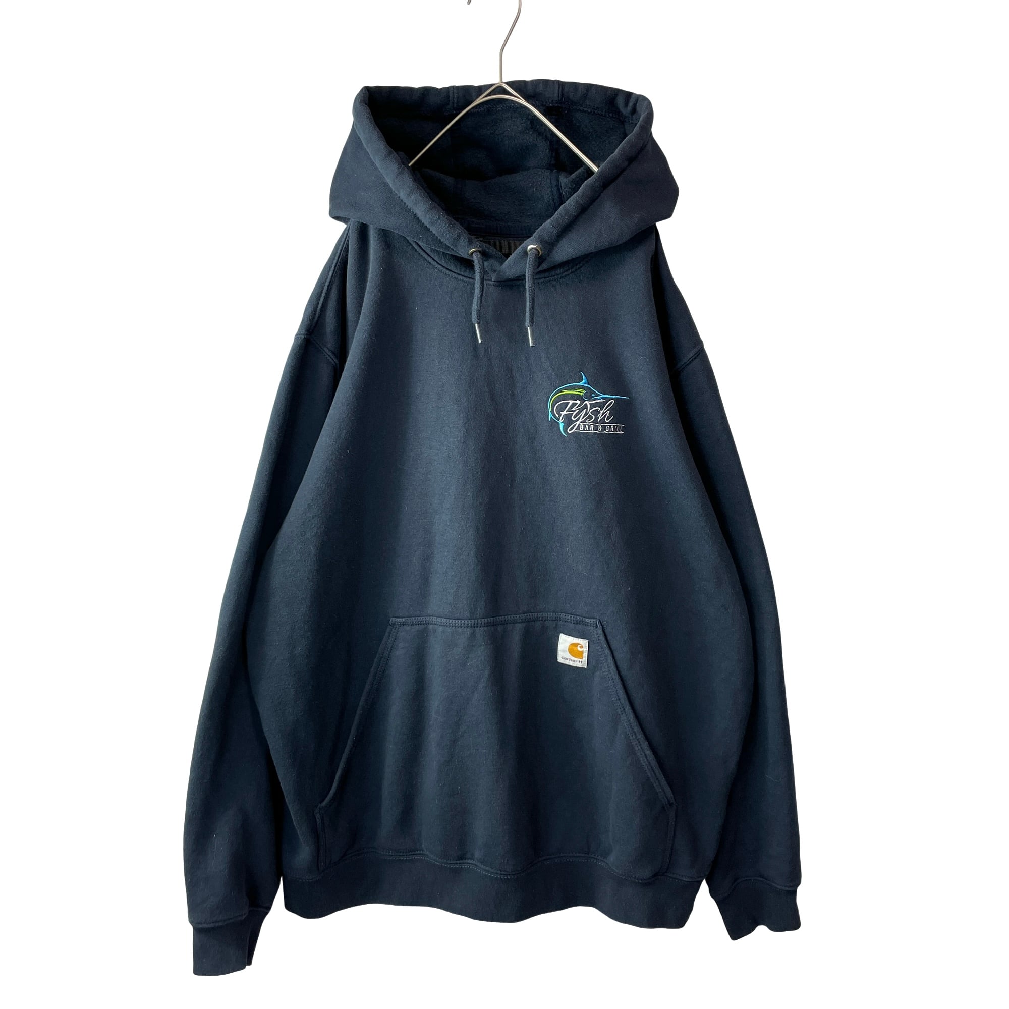 海外古着 カーハート 企業刺繍 ルーズフィット パーカー フェードネイビー L