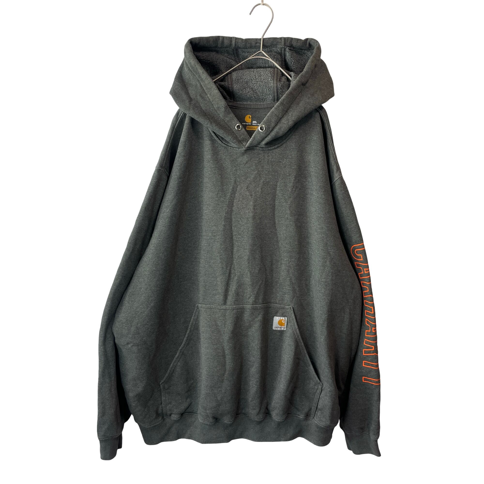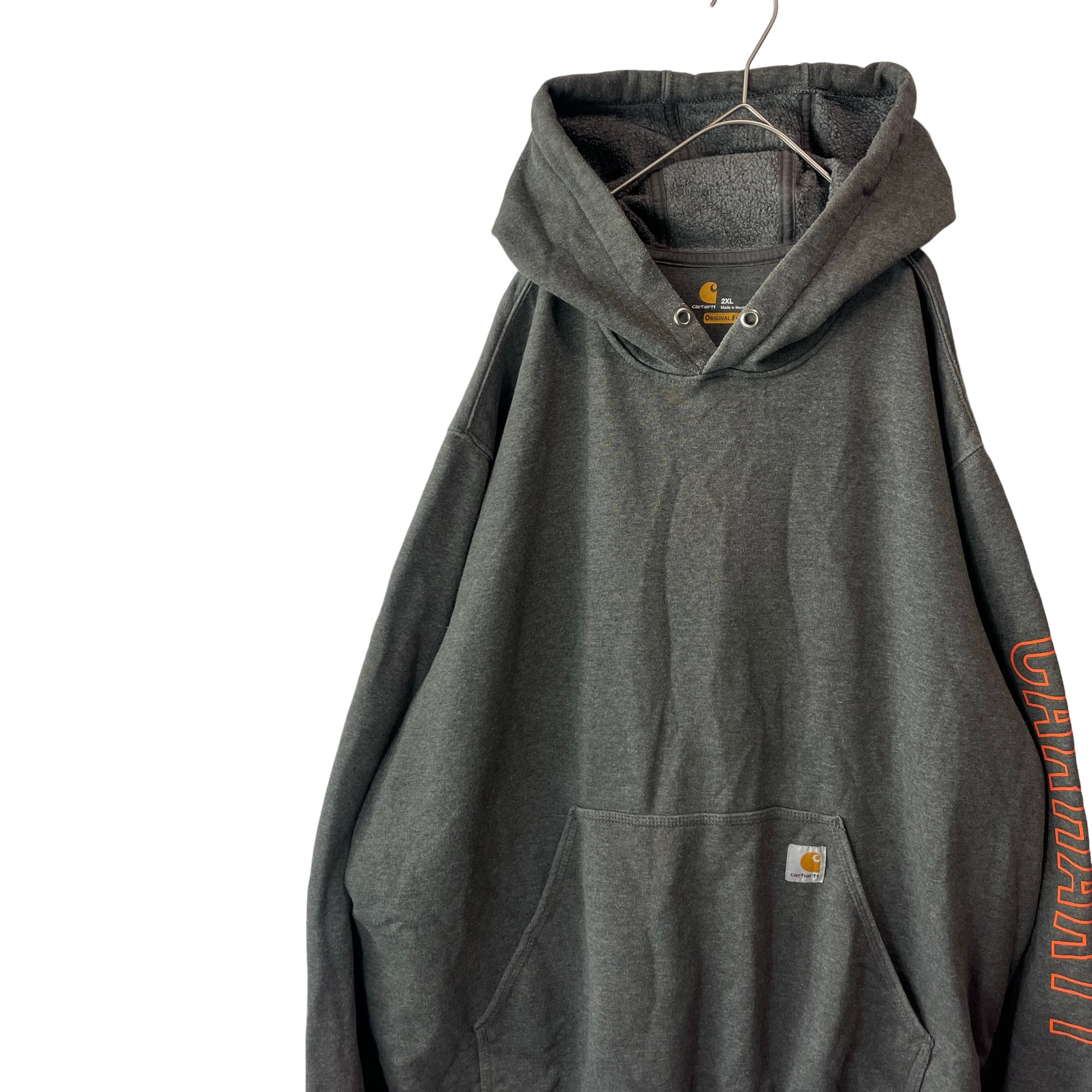 定番人気 カーハート オリジナルフィット パーカー グレー×オレンジロゴ 2XL