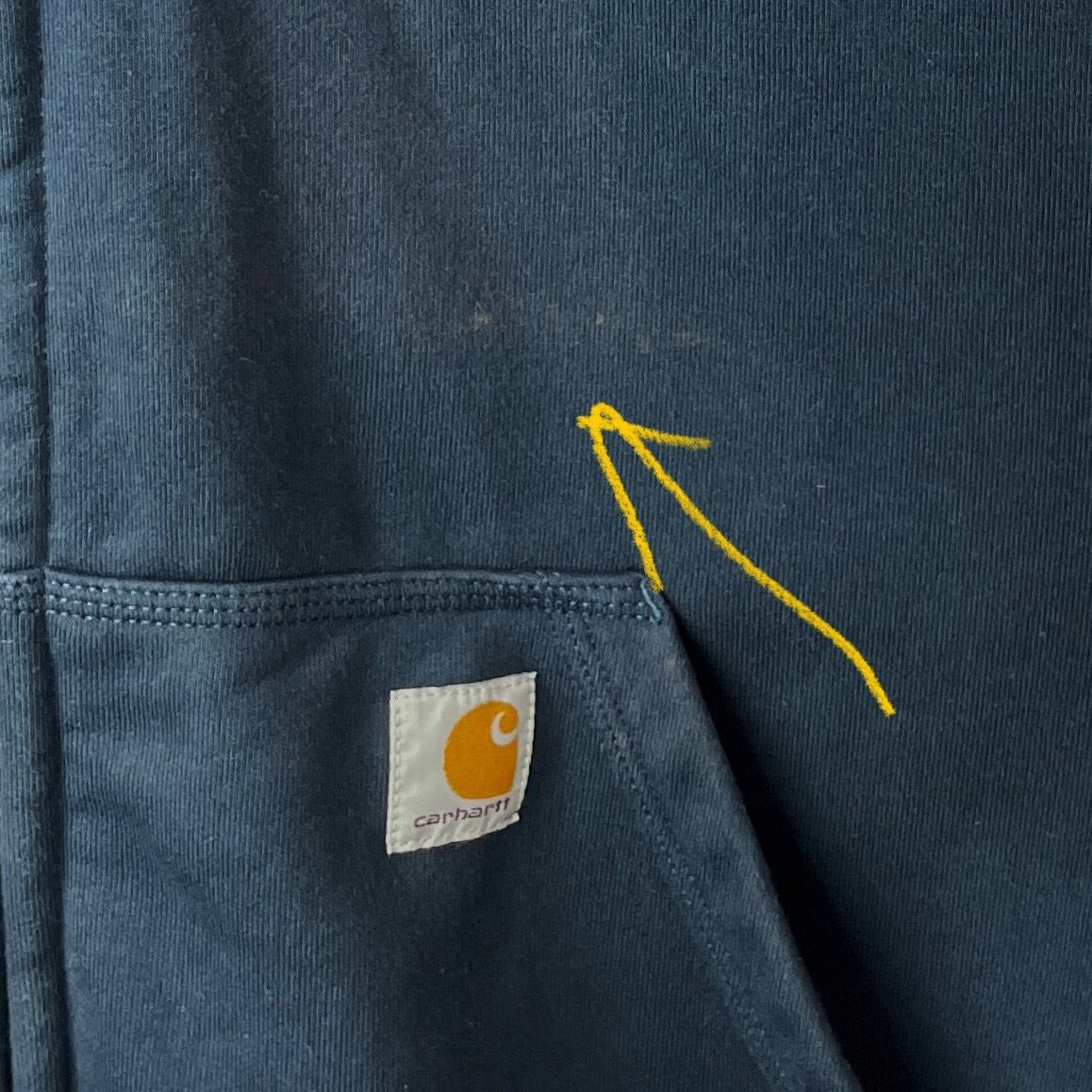 ▲前ポケット上、袖に薄い脱色が見られます。
