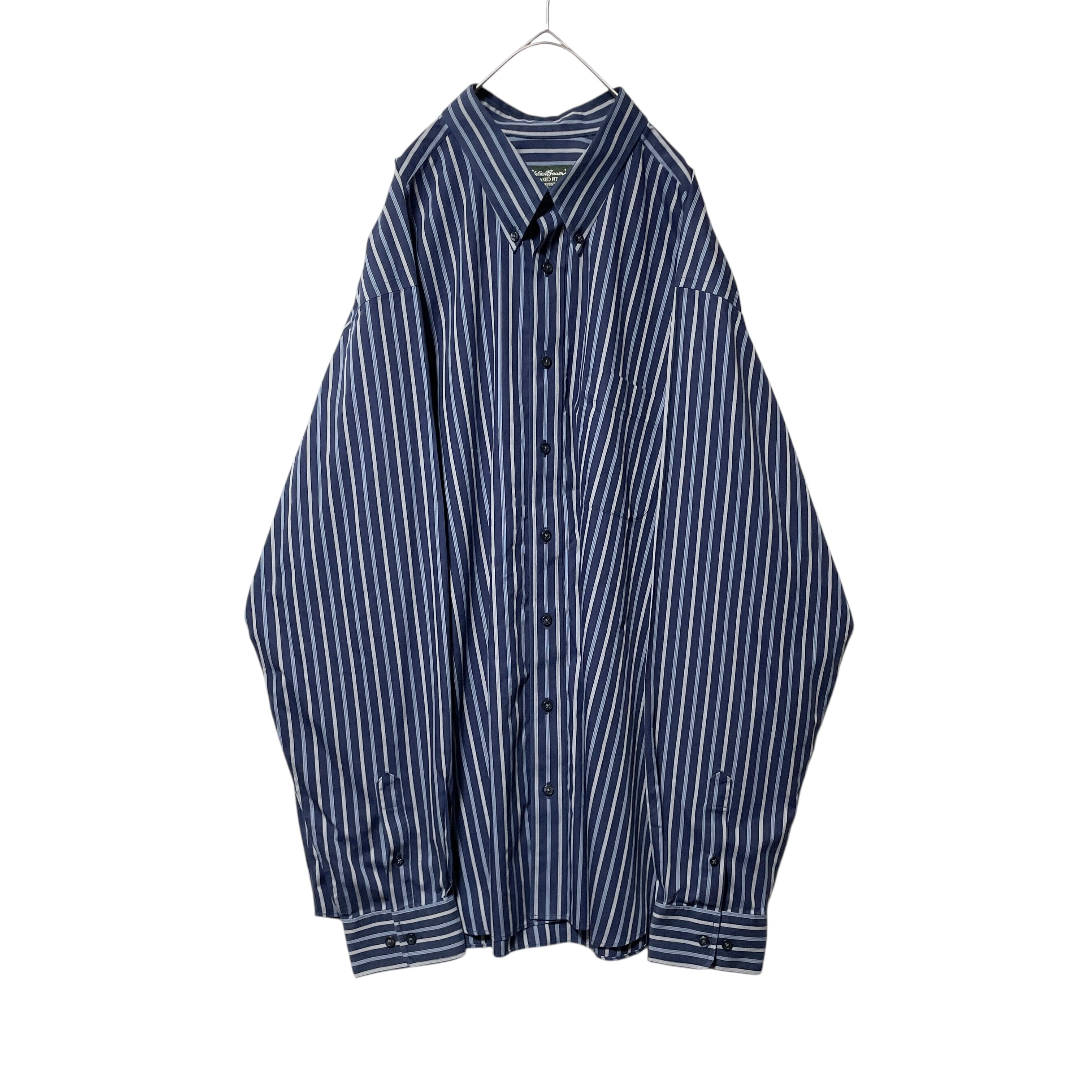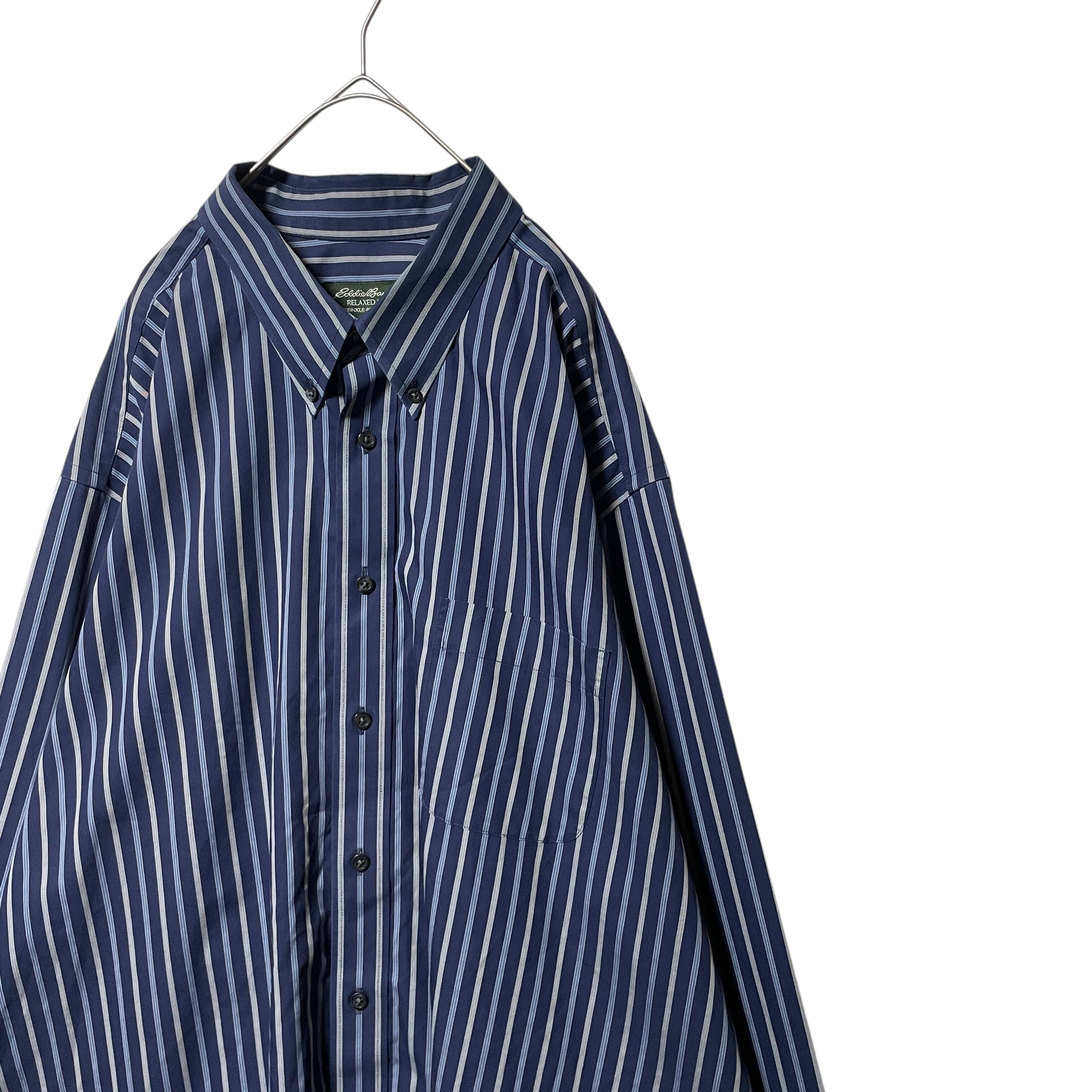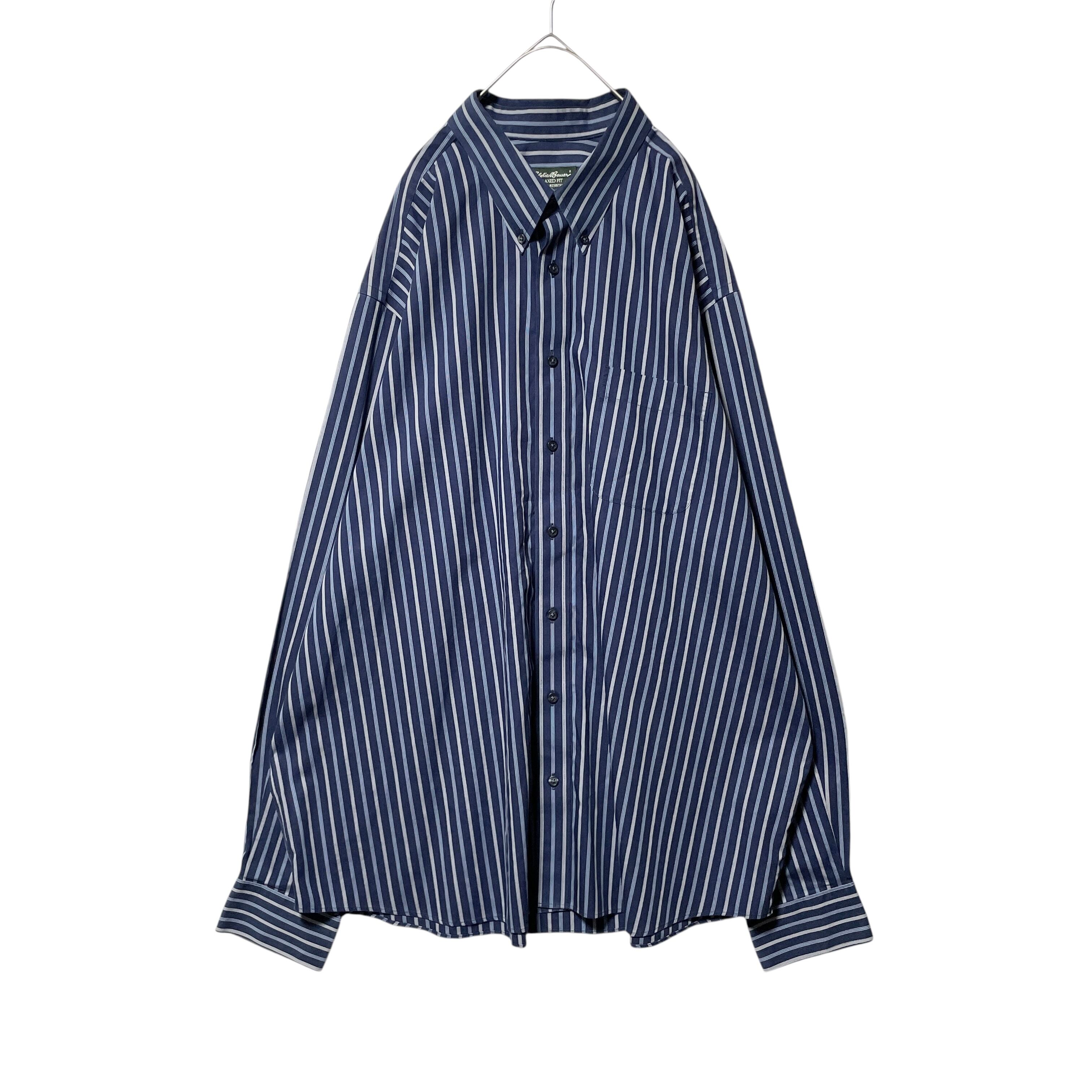 エディーバウアー ストライプ柄 長袖ボタンダウンシャツ ネイビー 紺系 2XL