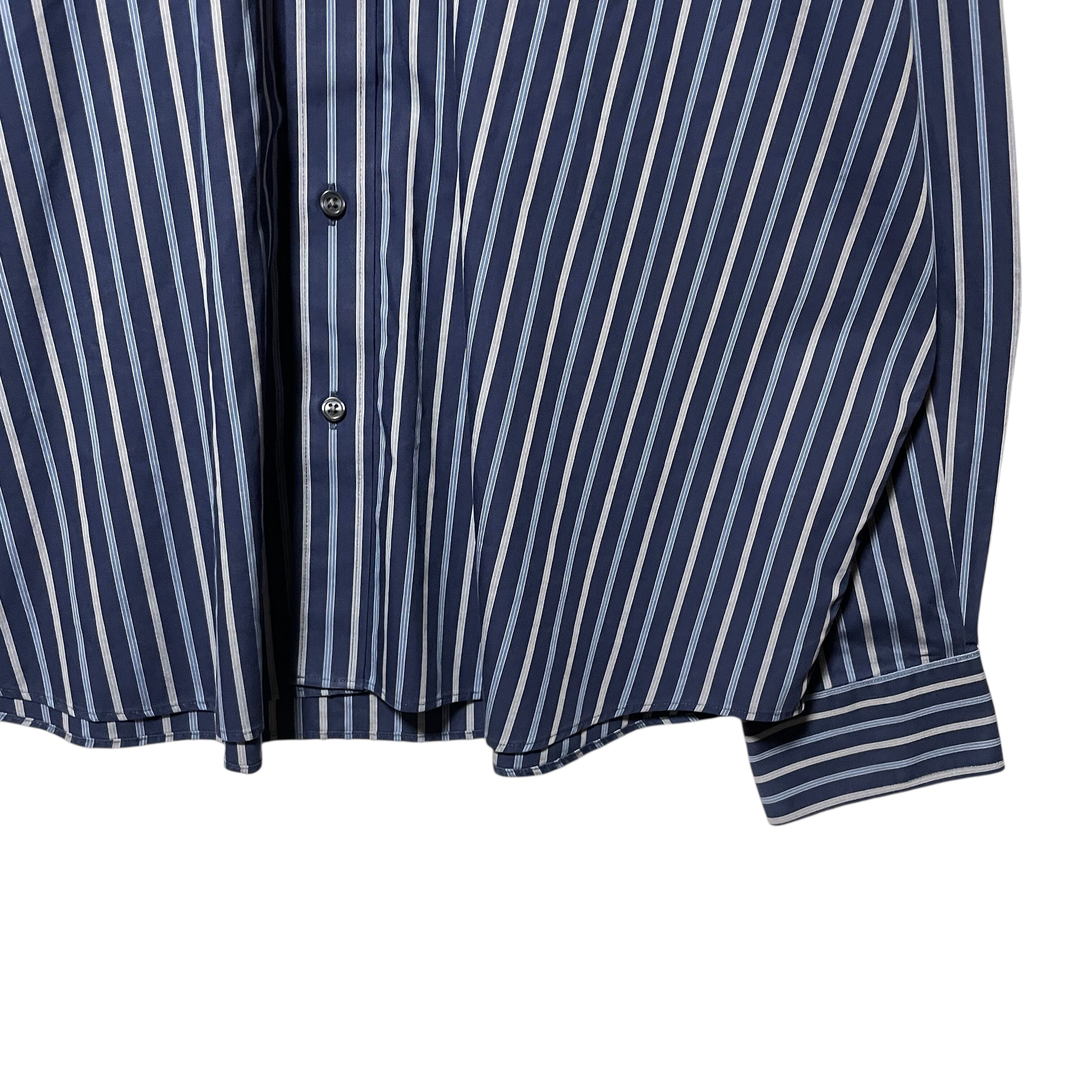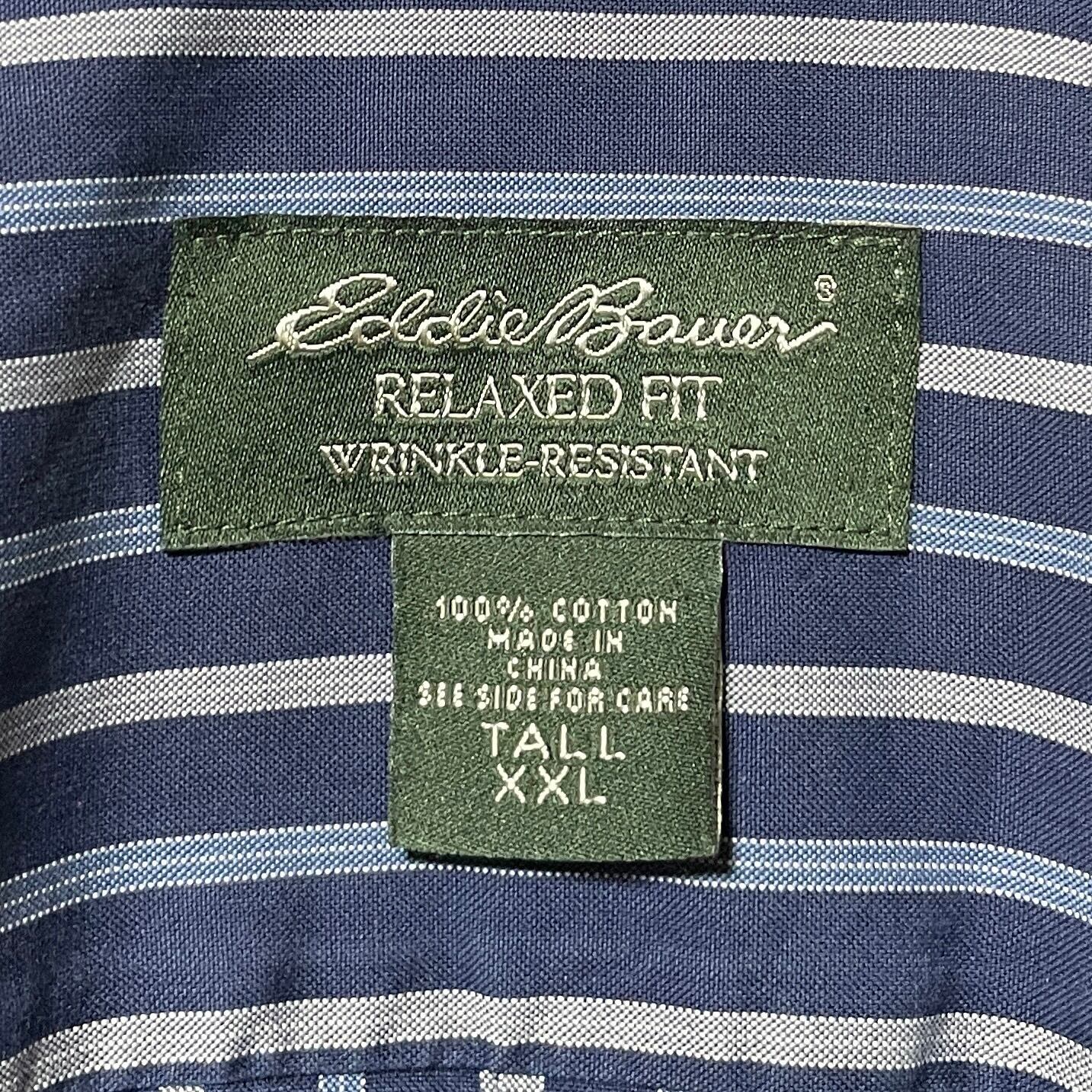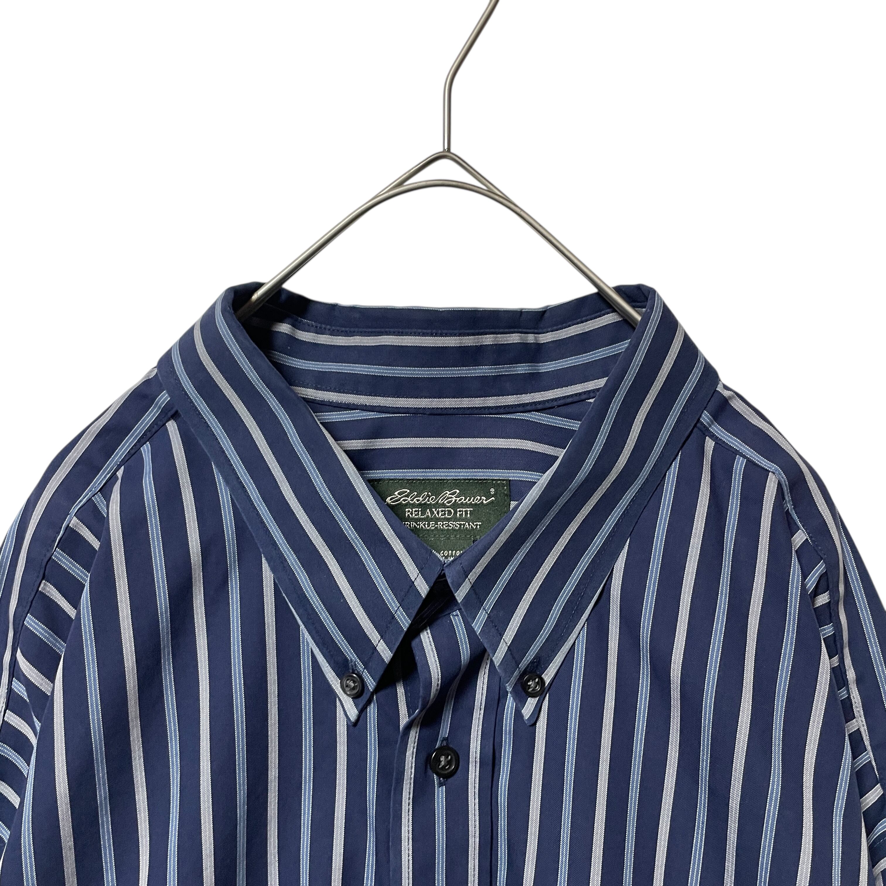 エディーバウアー ストライプ柄 長袖ボタンダウンシャツ ネイビー 紺系 2XL