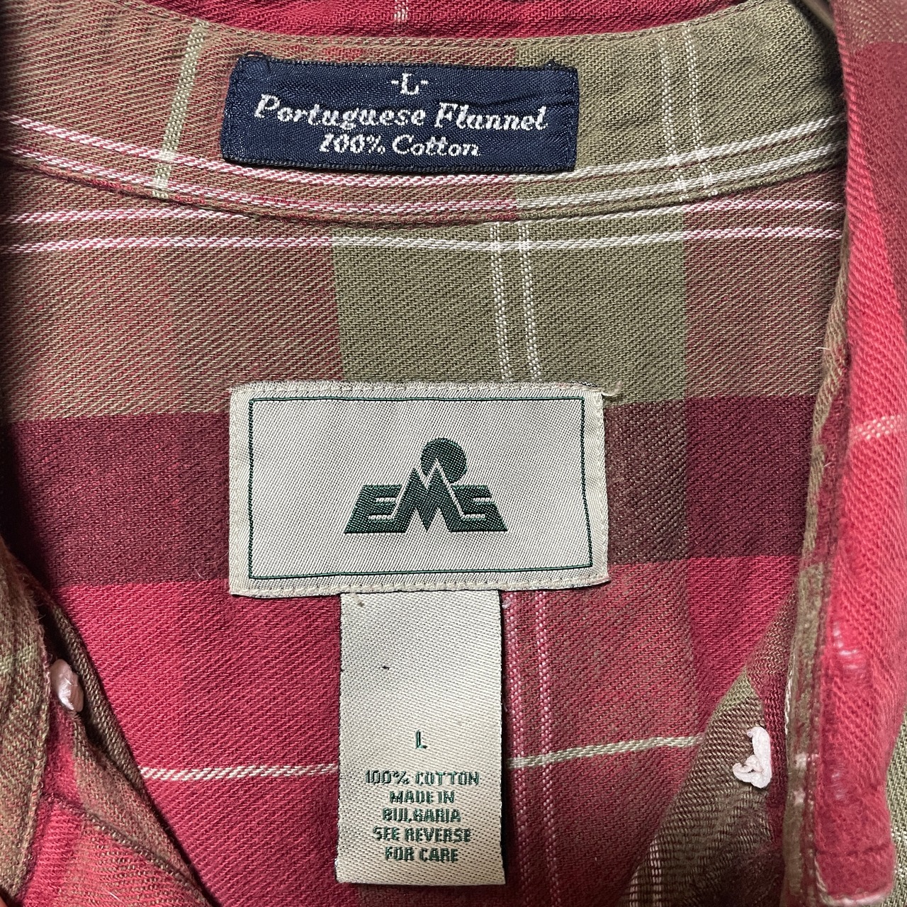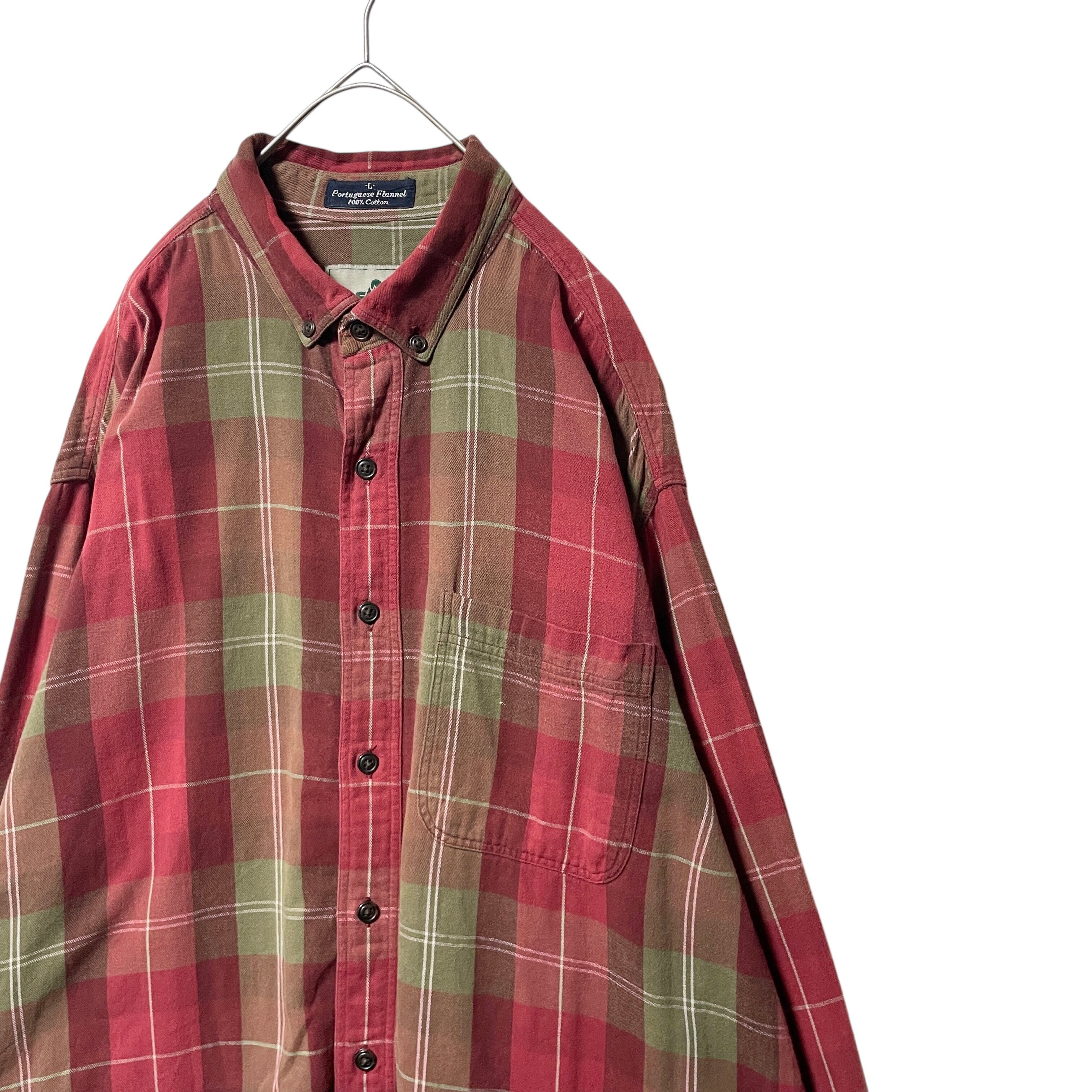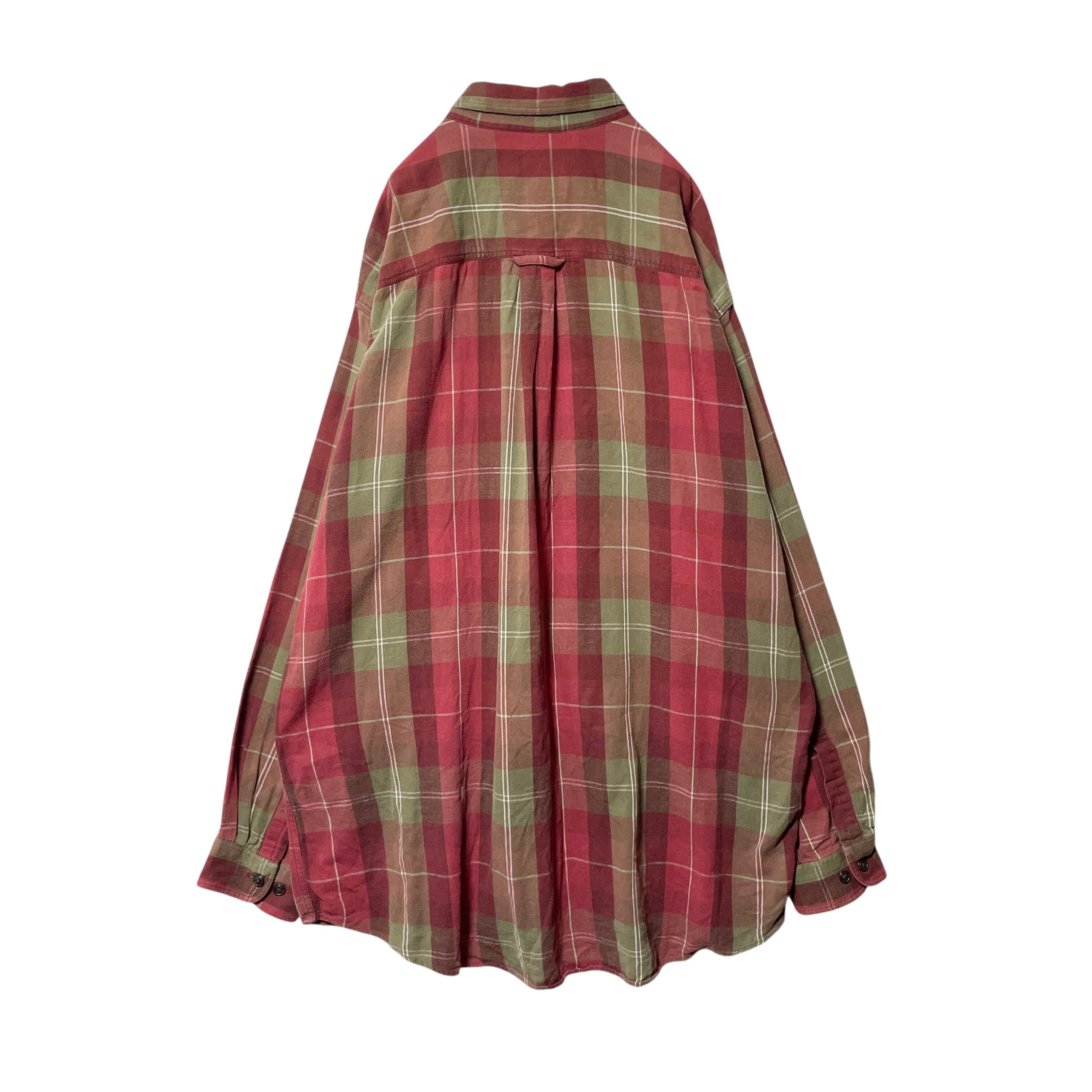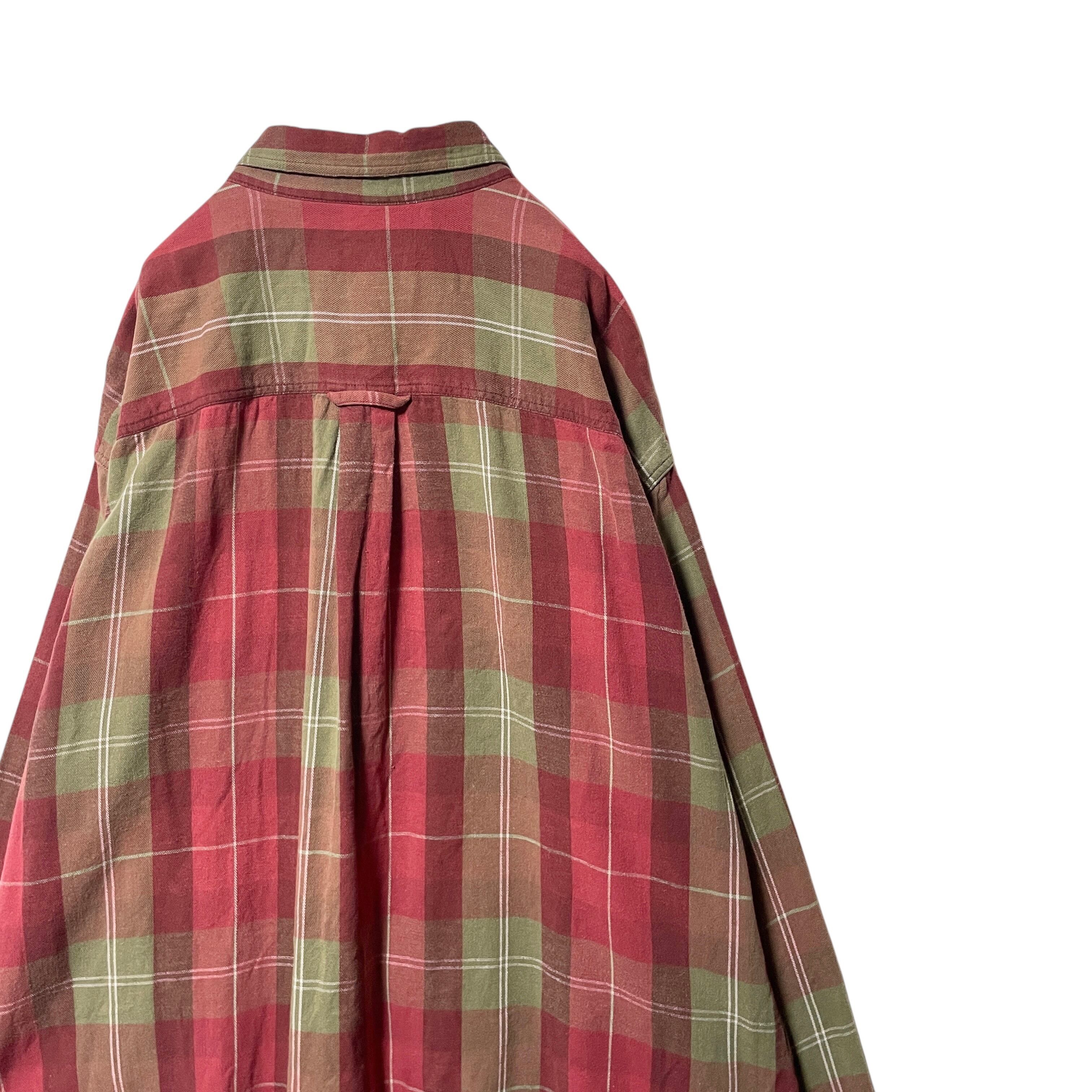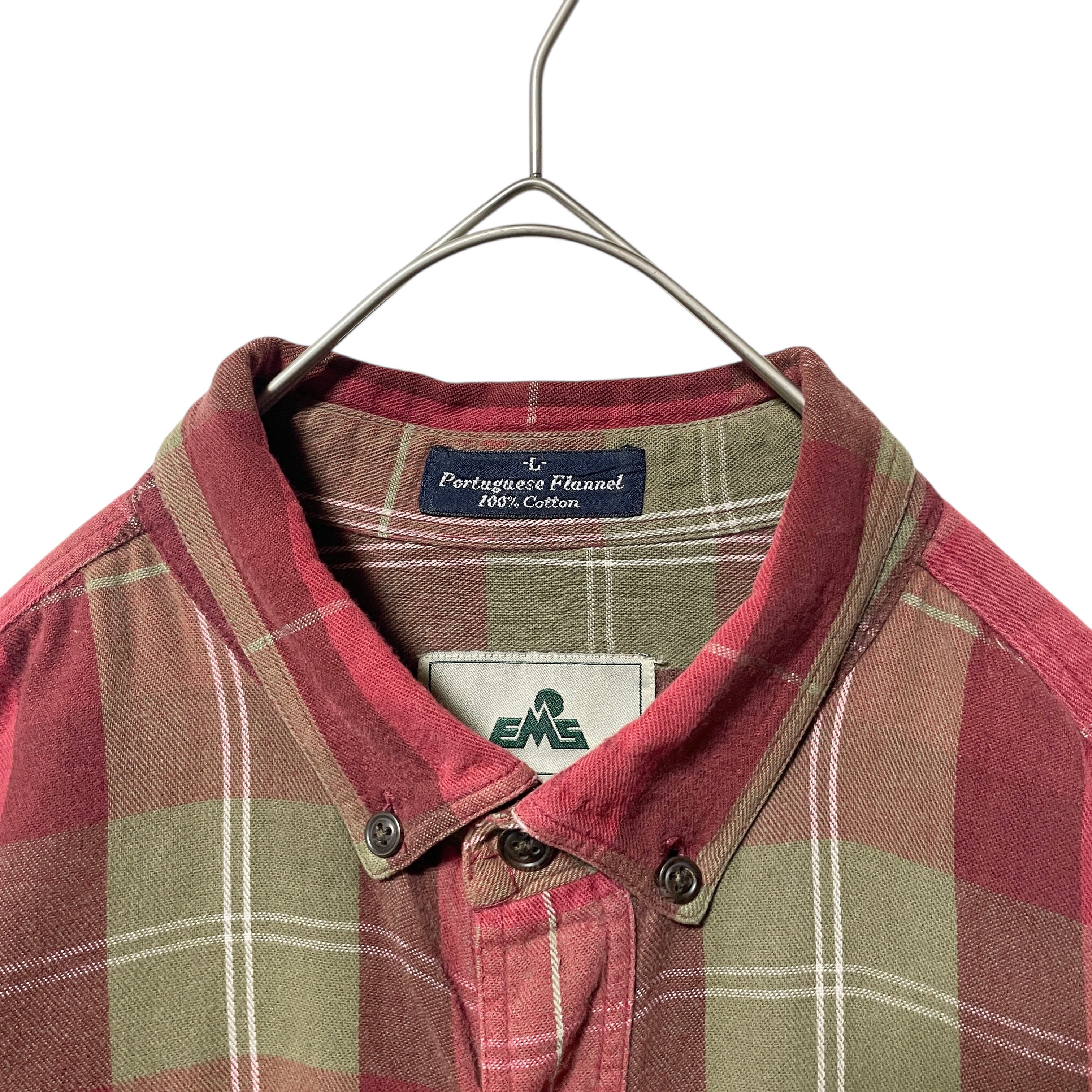 古着 90s-00s EMS チェック柄 長袖シャツ BDシャツ 赤 カーキ L