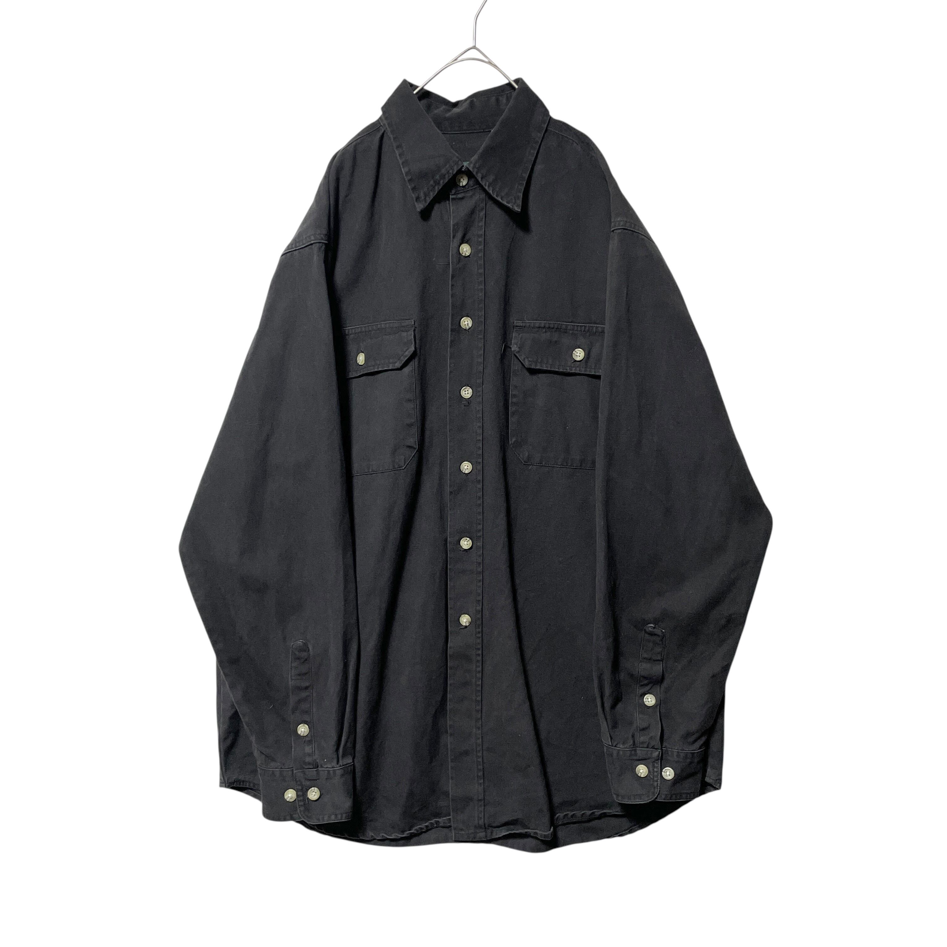 90s-00s 香港製 カベラス 長袖シャツ レギュラーカラー 黒 無地 L