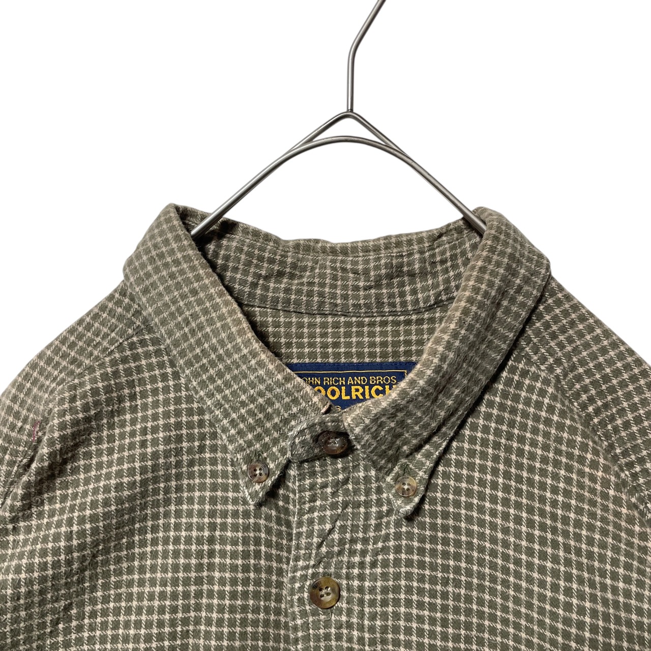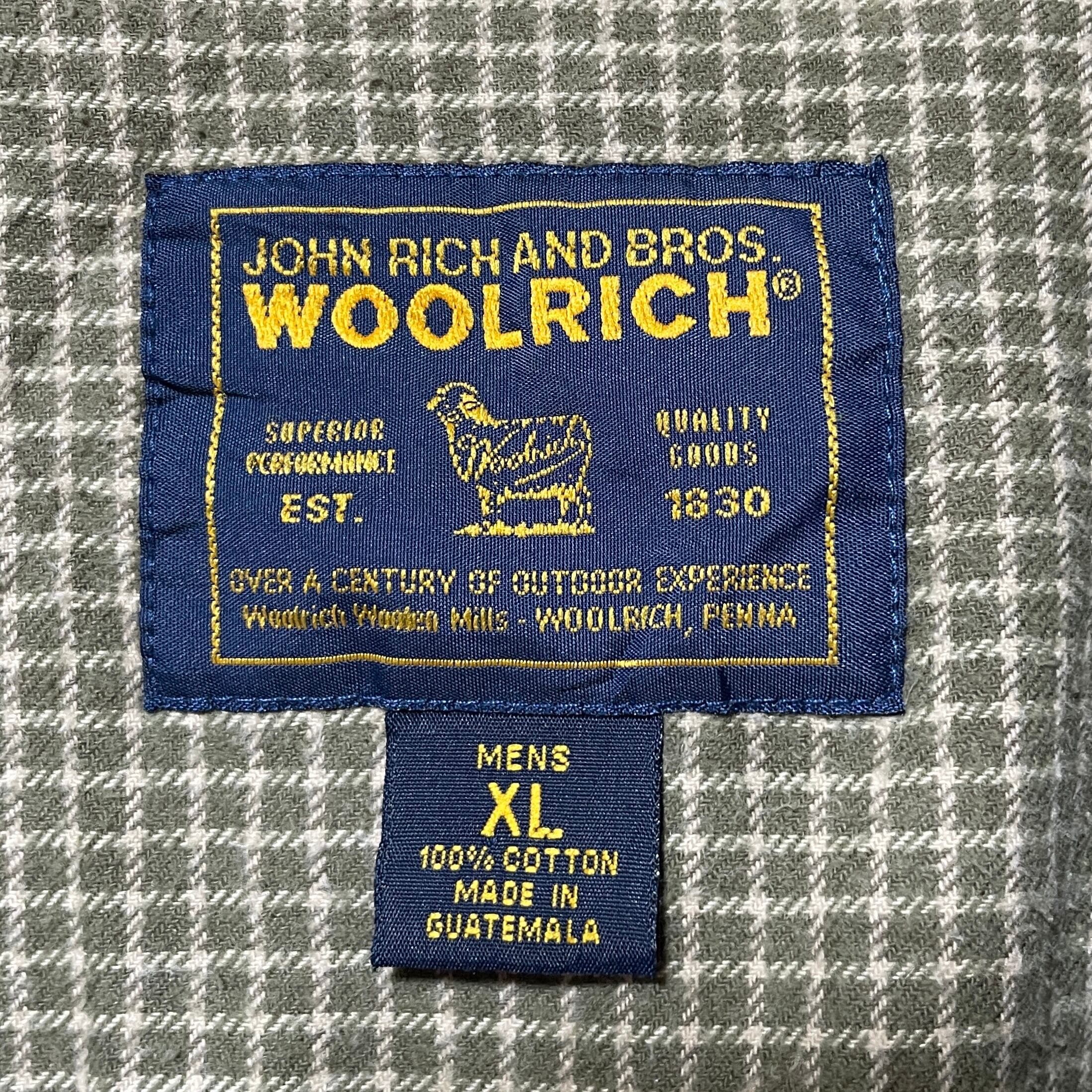 ウールリッチ チェック柄 長袖ボタンダウンシャツ カーキ ロゴタグ付き XL