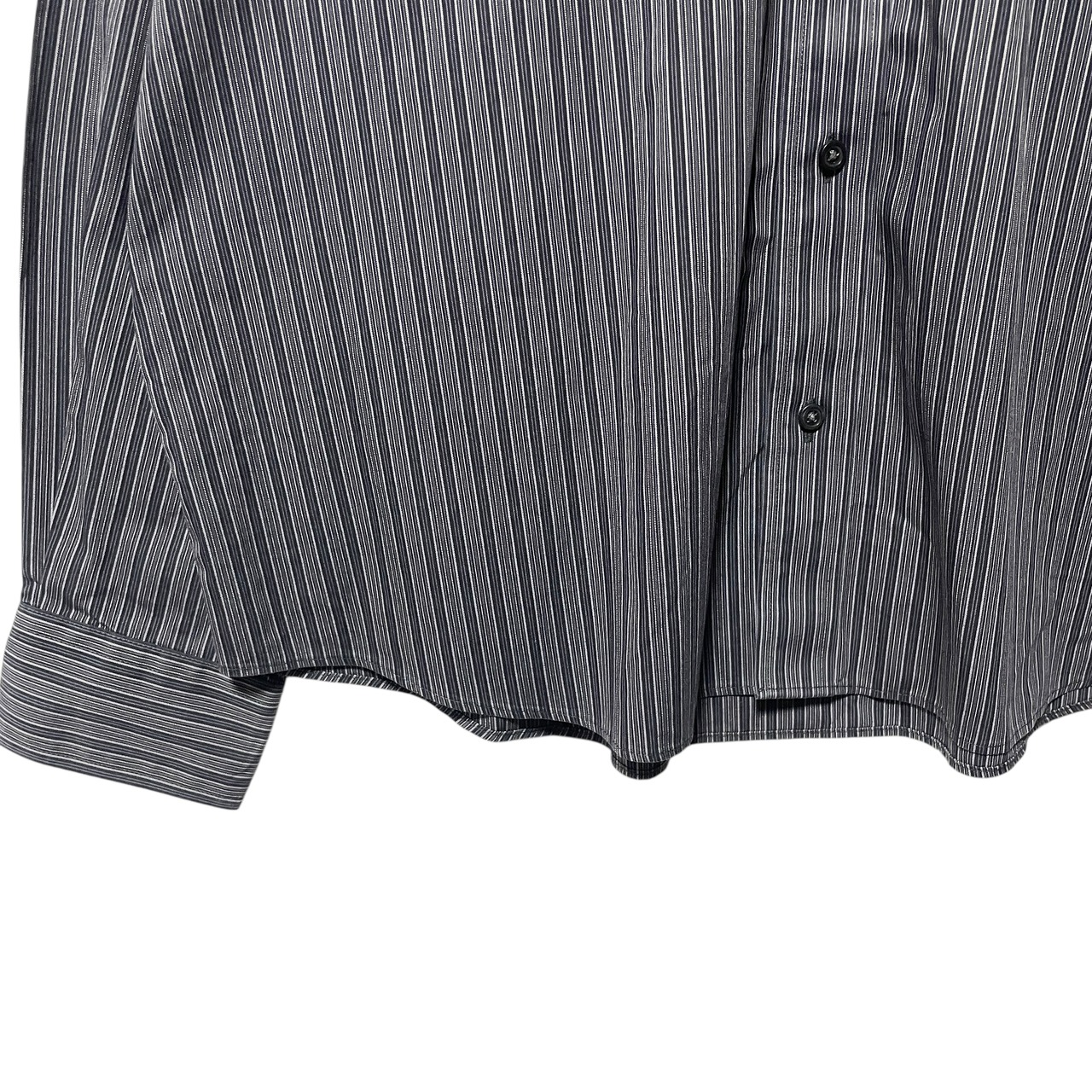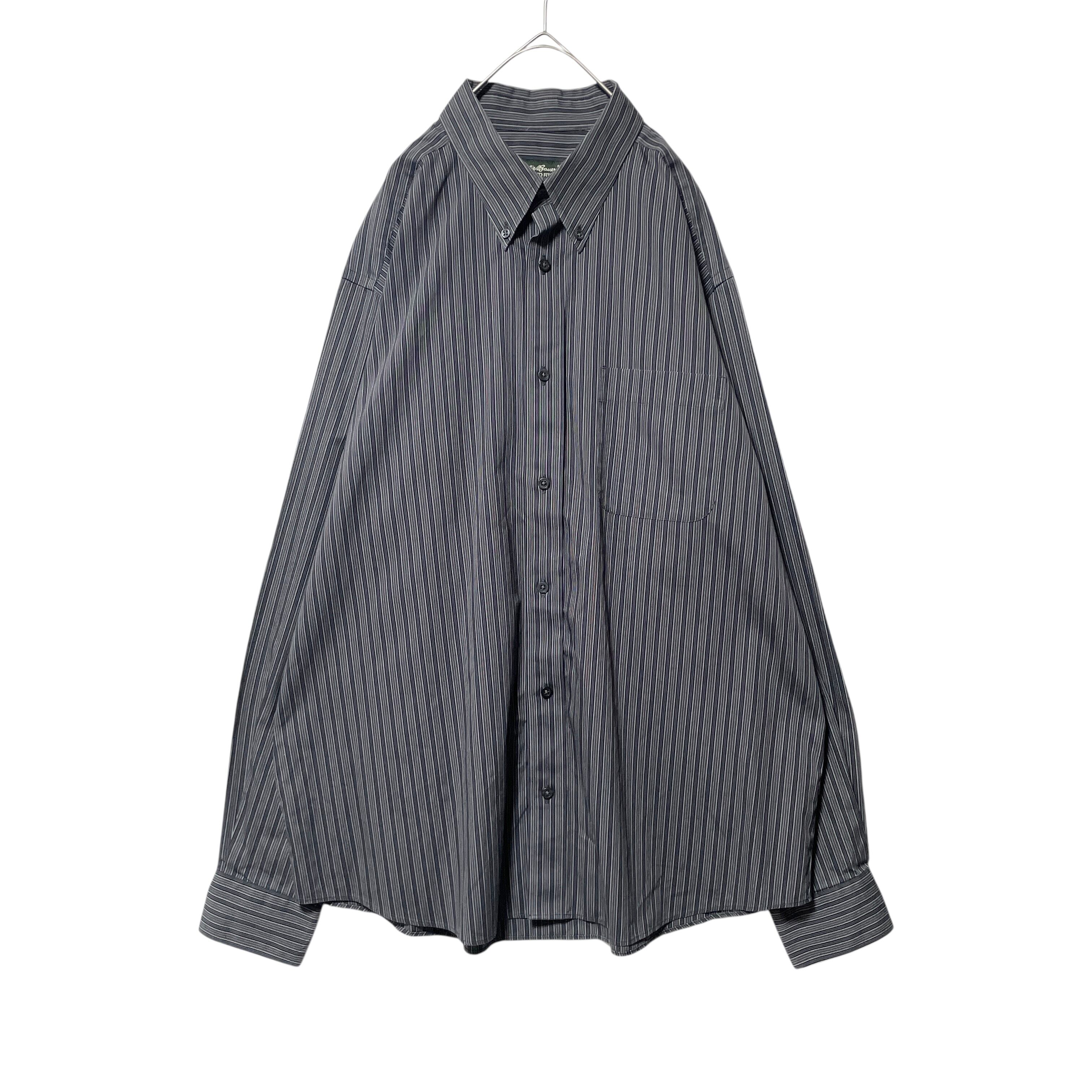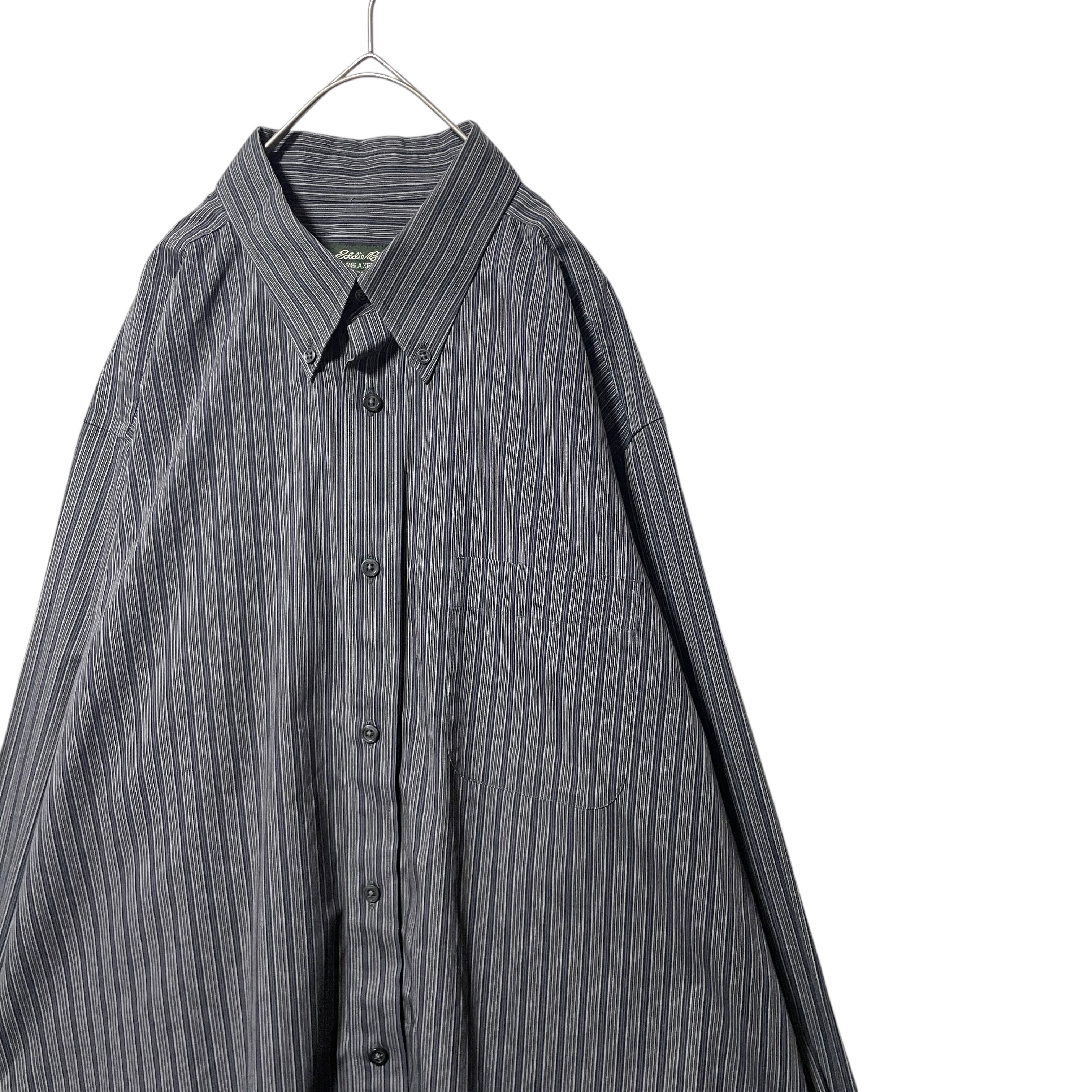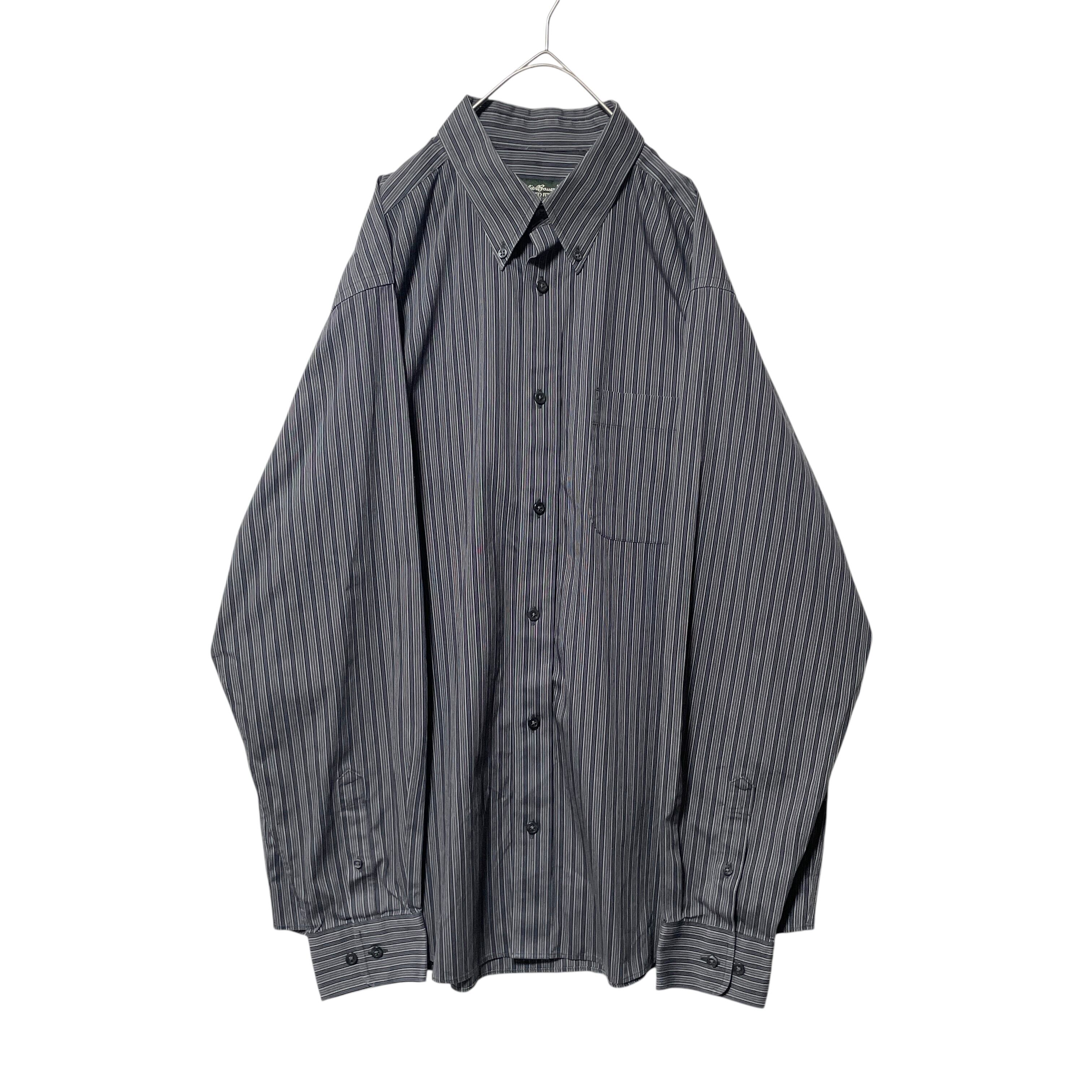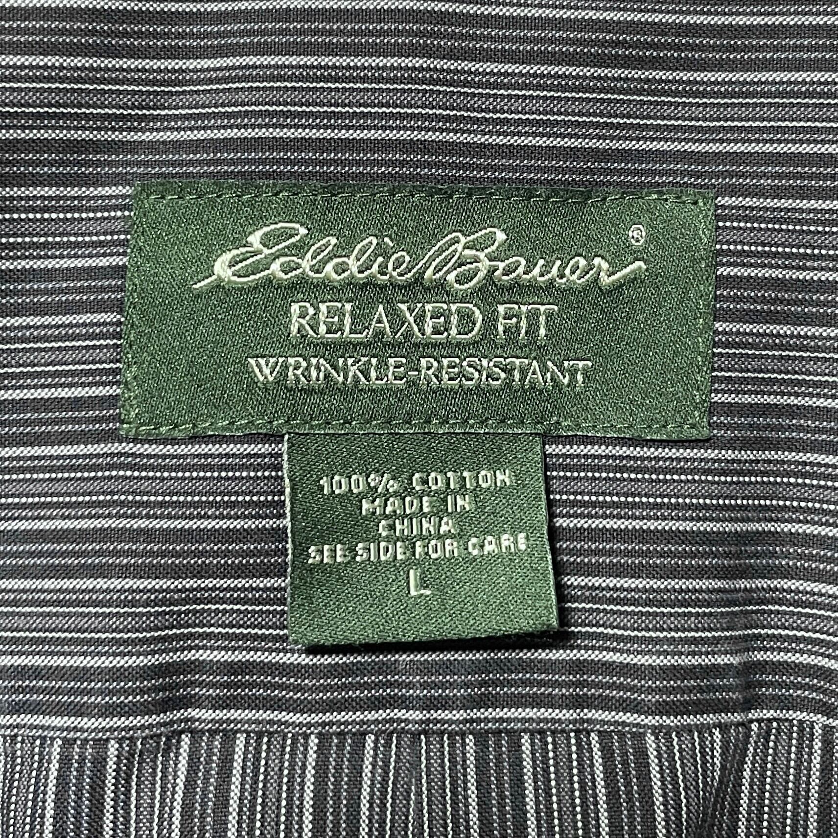 エディーバウアー リラックスフィット 形態安定 ストライプ長袖シャツ グレー L