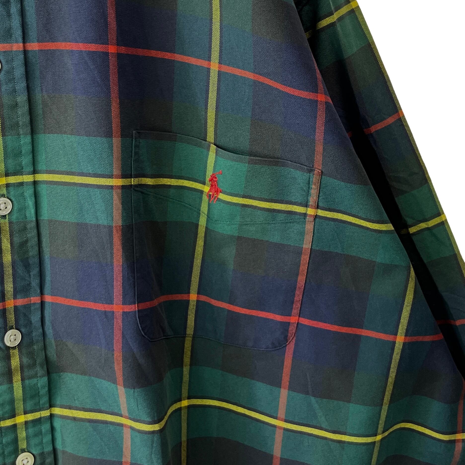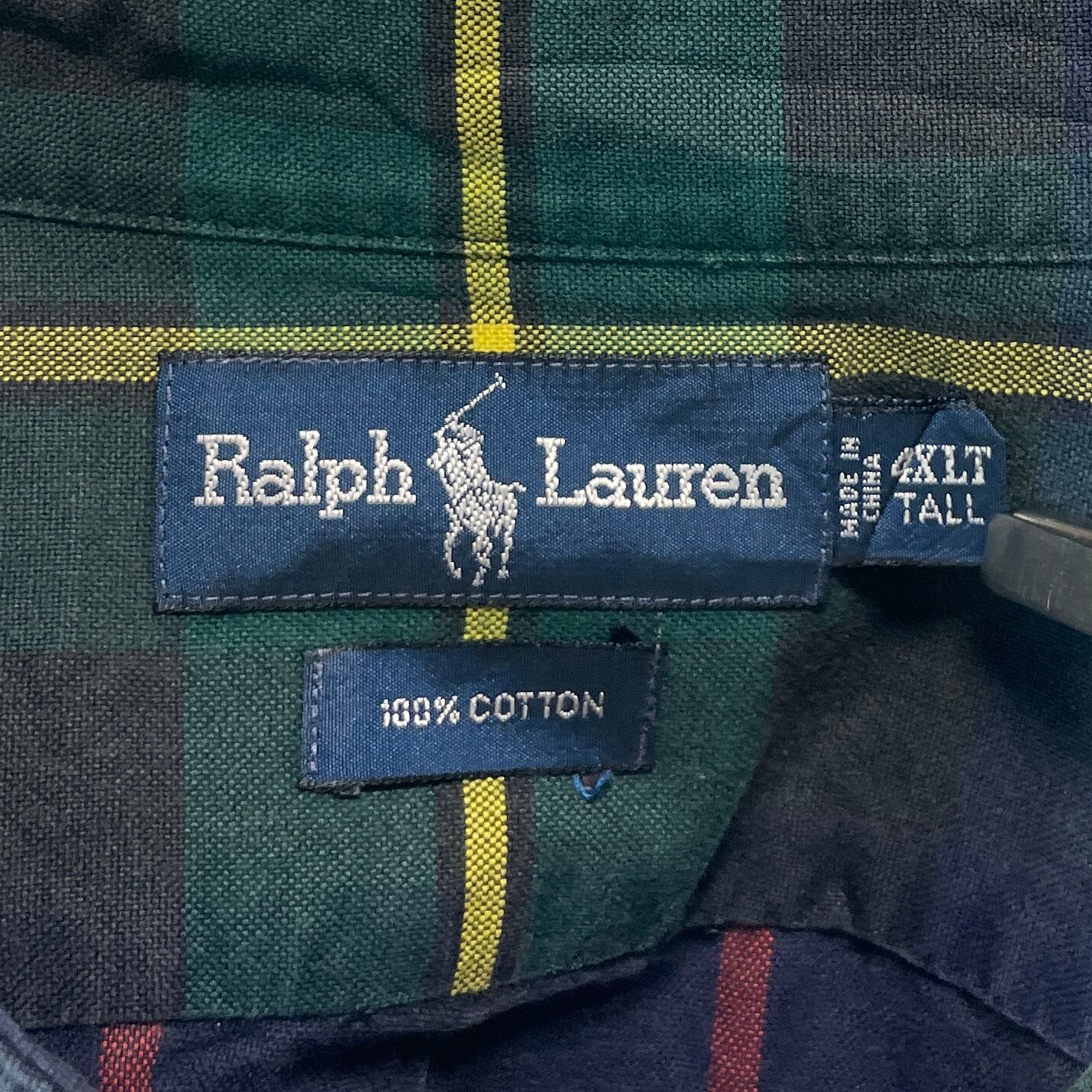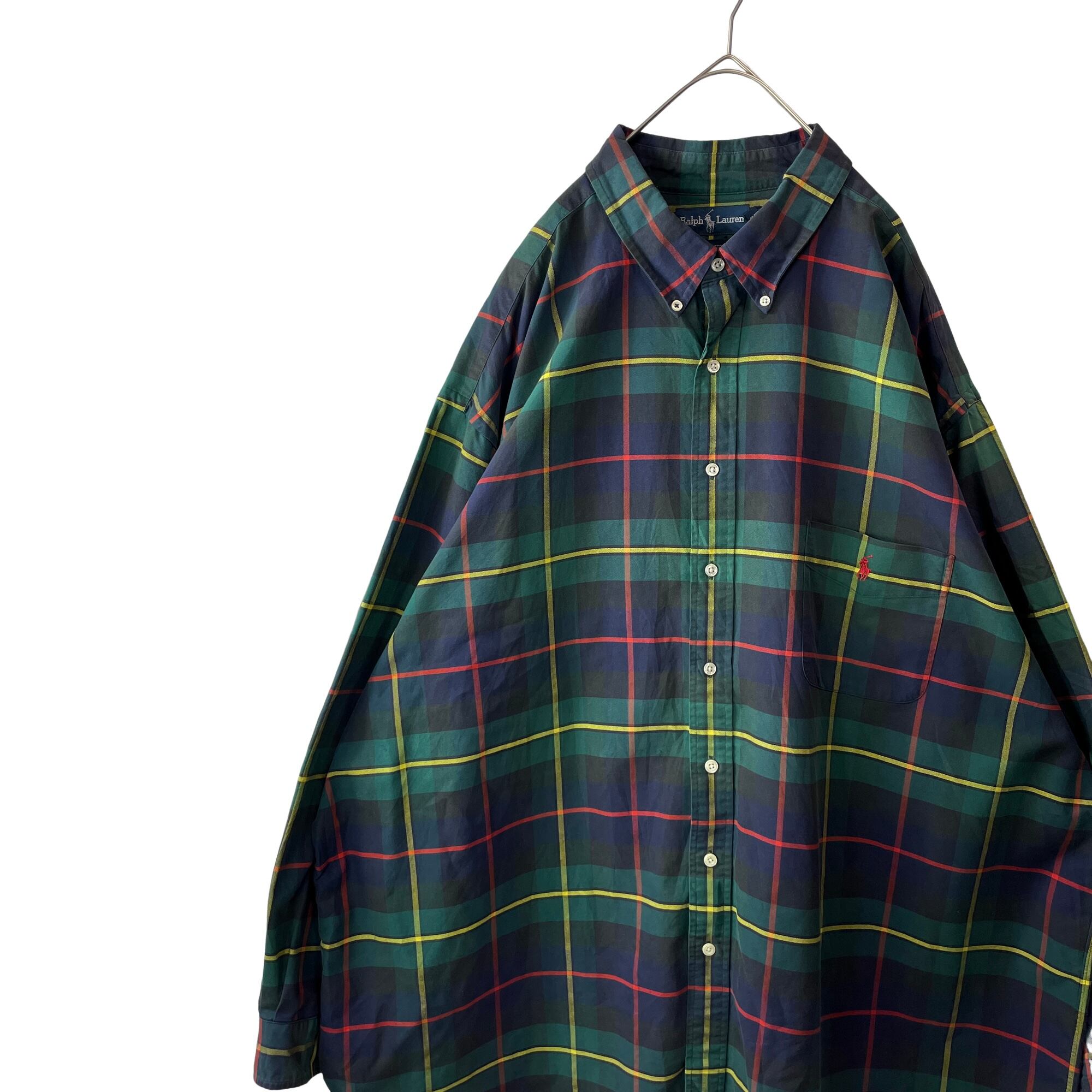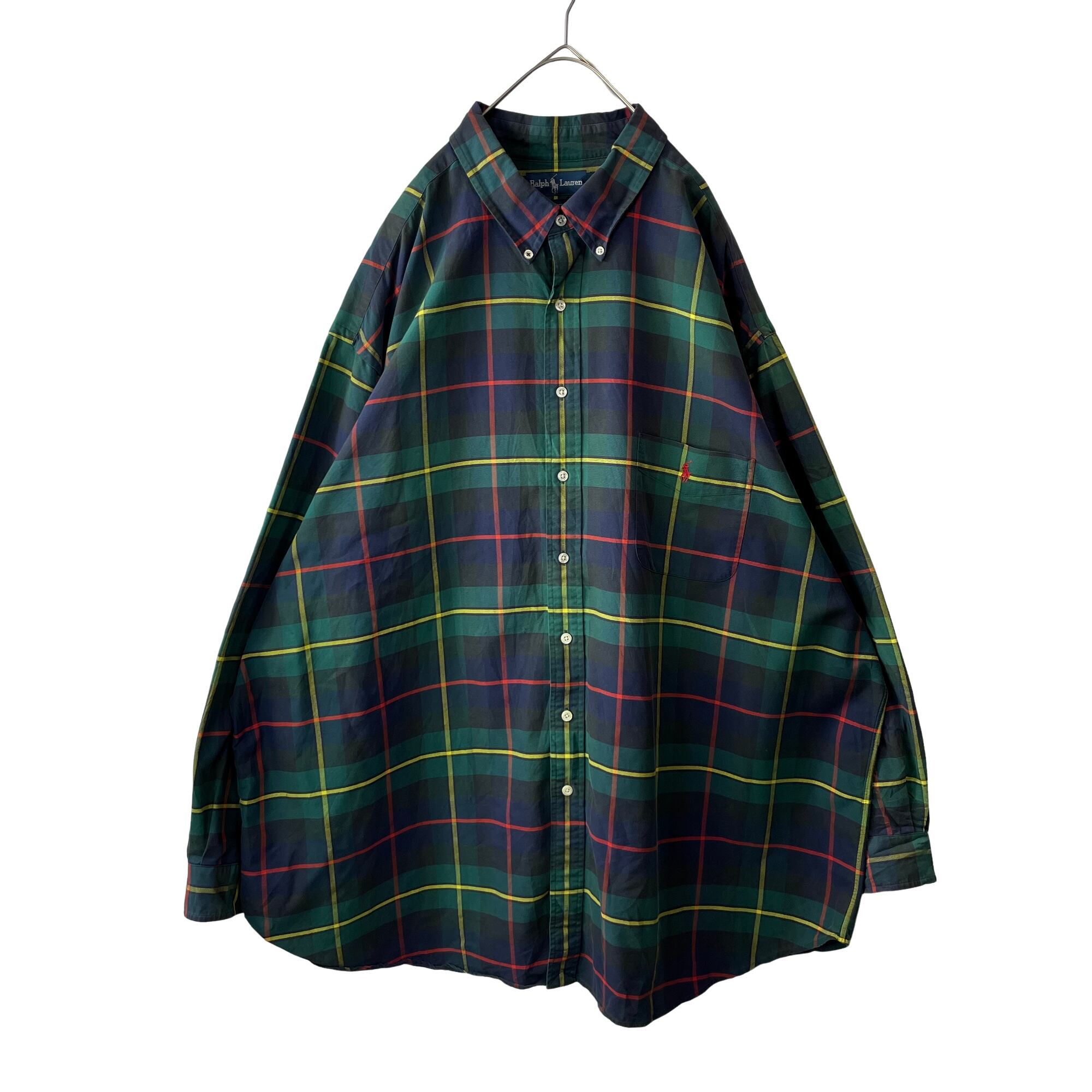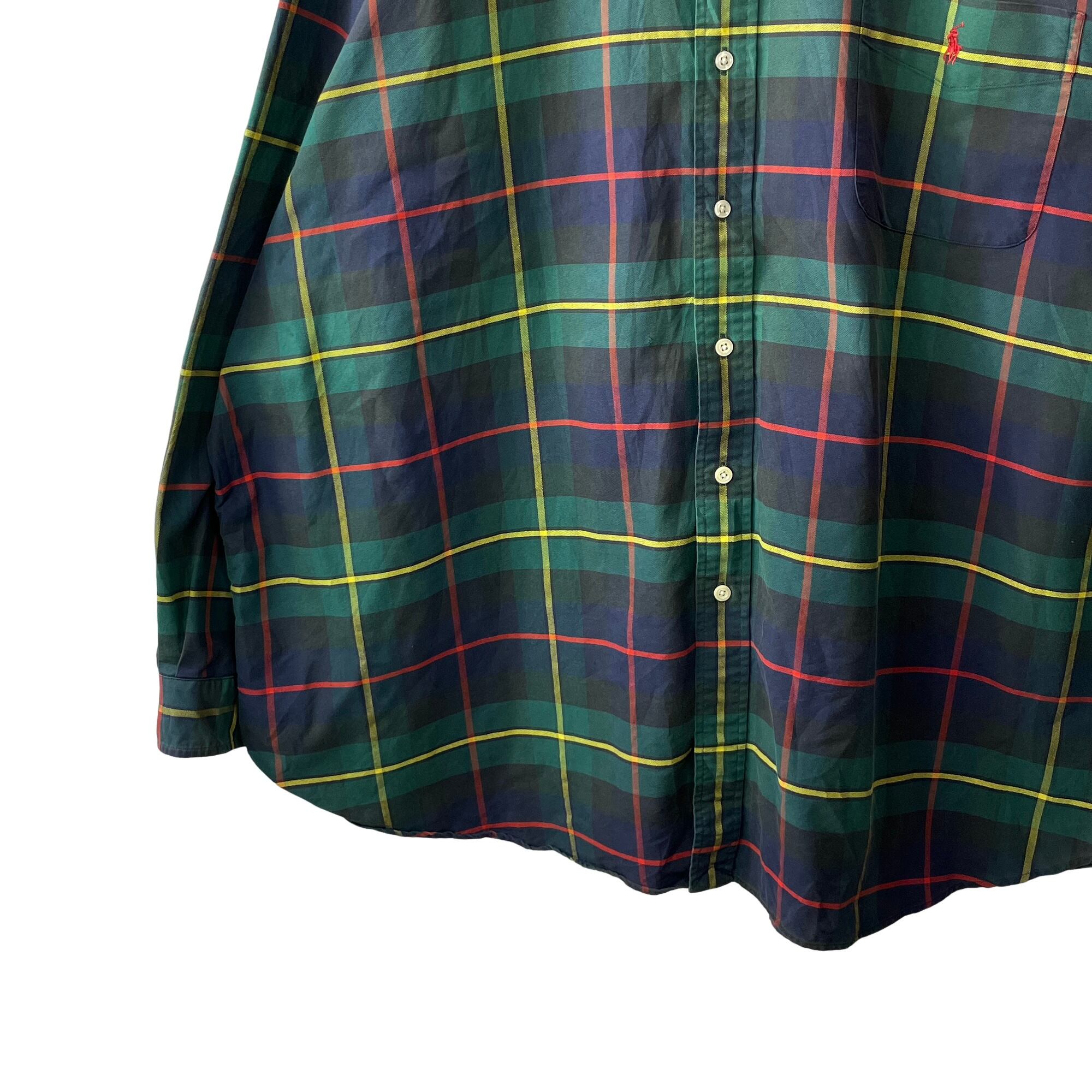 【超ビッグサイズ】ラルフローレン グリーン系 チェック 長袖BDシャツ 4XLT