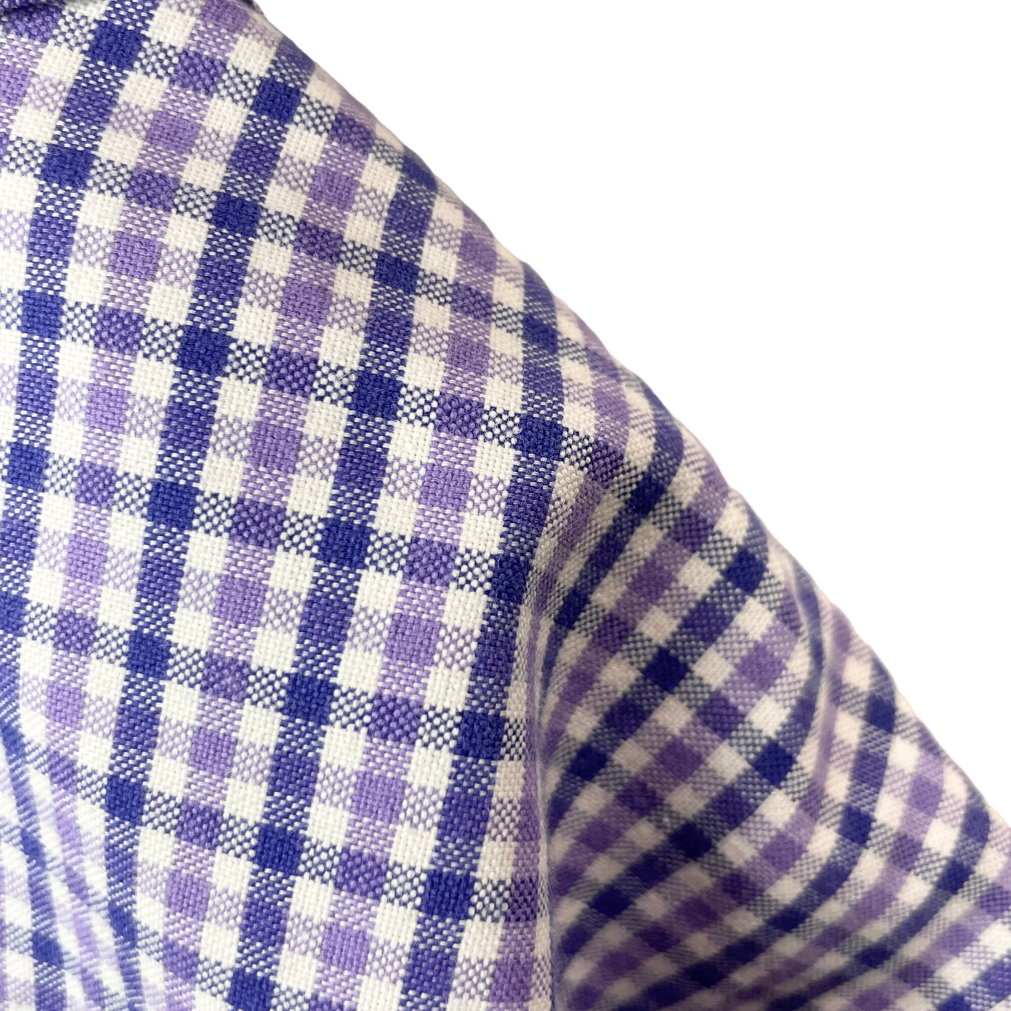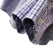 ✅清潔感あふれるラベンダー(薄紫色)×ネイビーのギンガムチェック。胸元には、多色の糸で立体的に表現された希少なマルチカラーポニー刺繍入り。