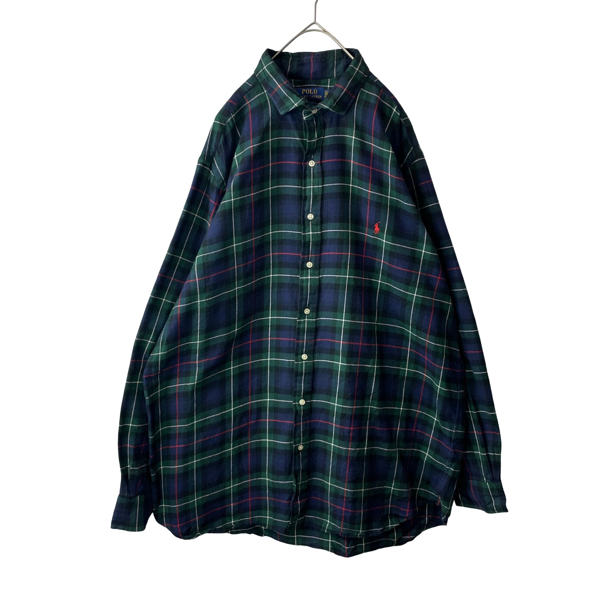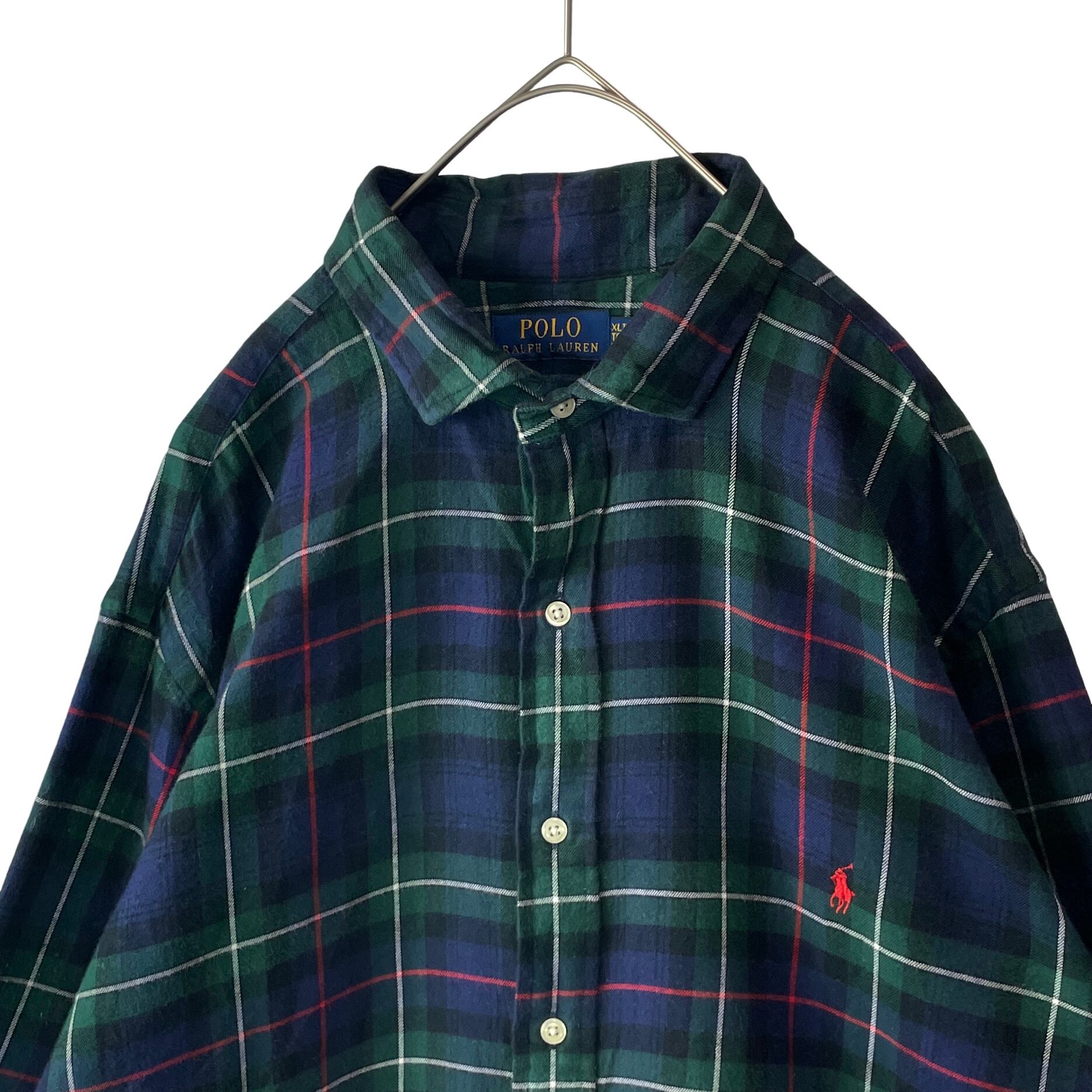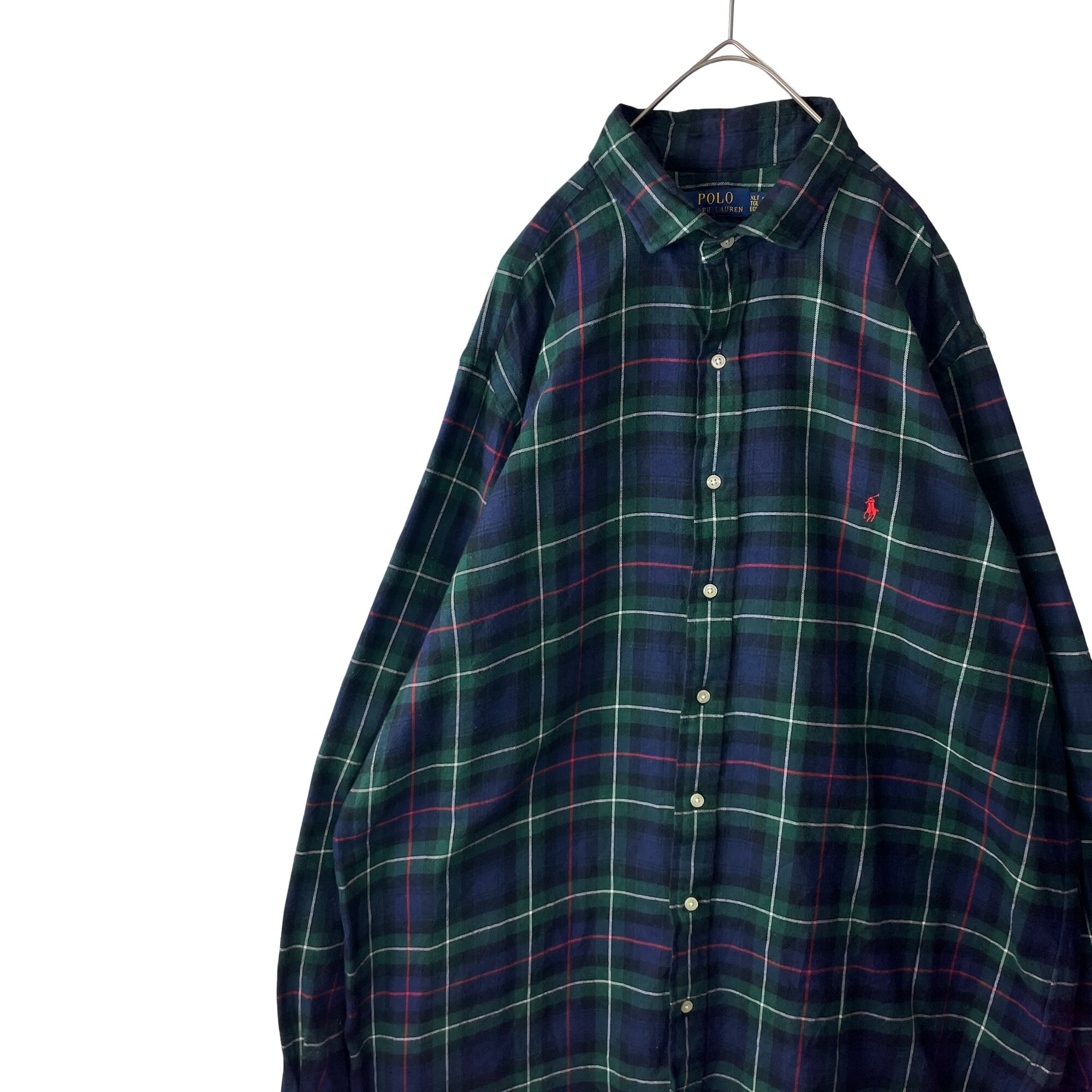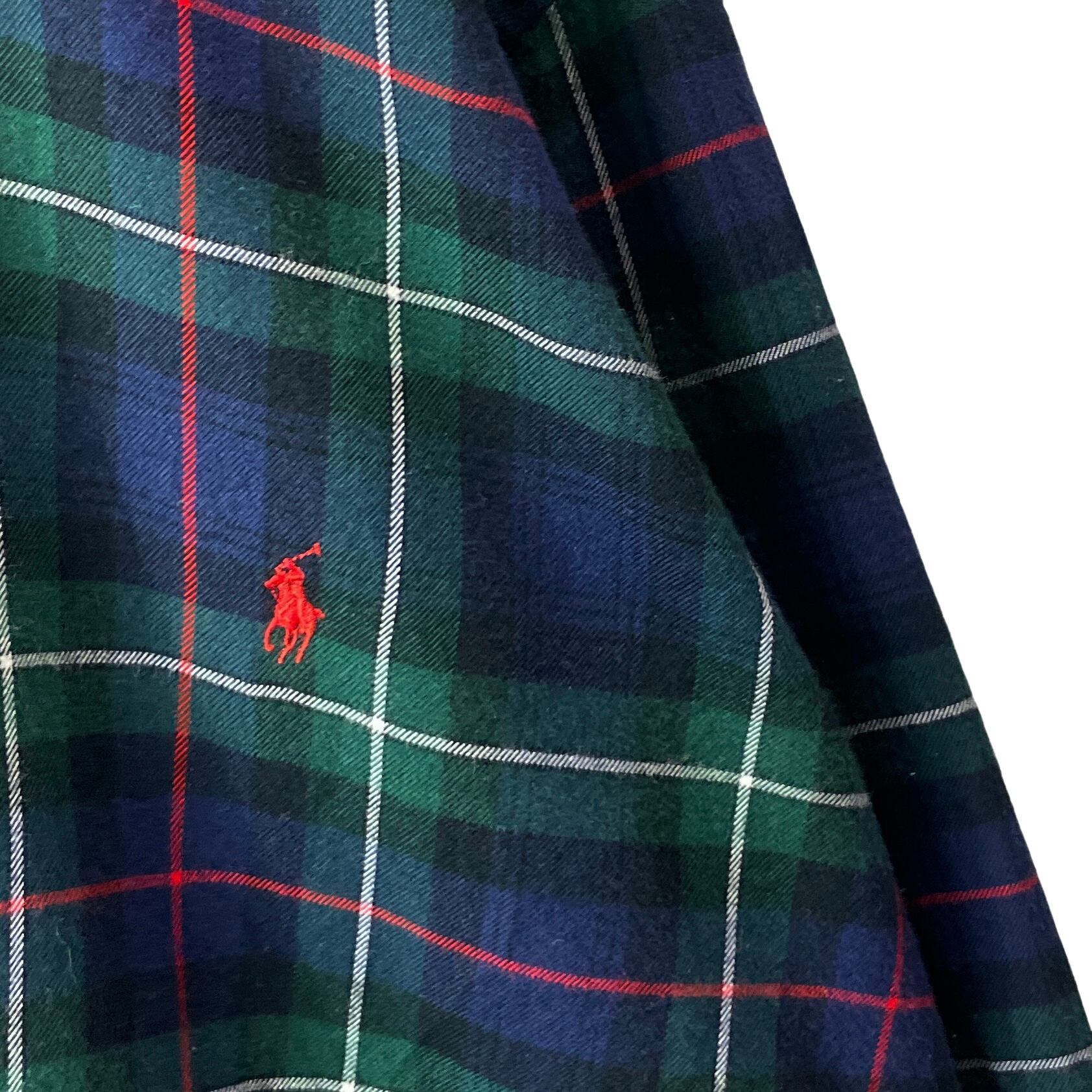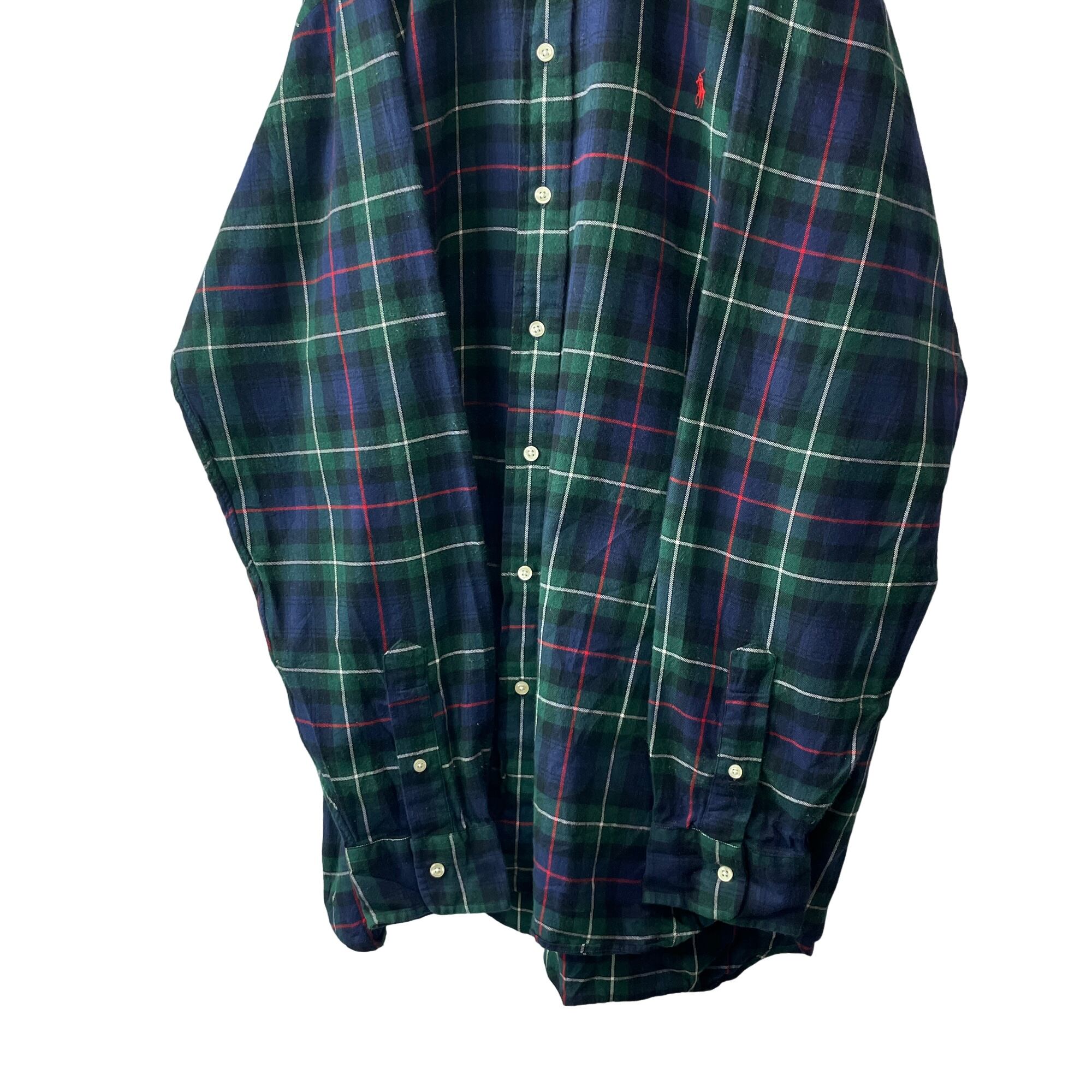ポロラルフローレン レギュラーカラー チェック フランネルシャツ 緑 紺 XLT