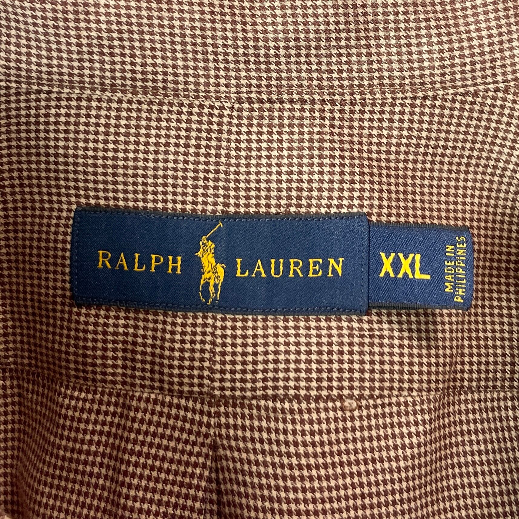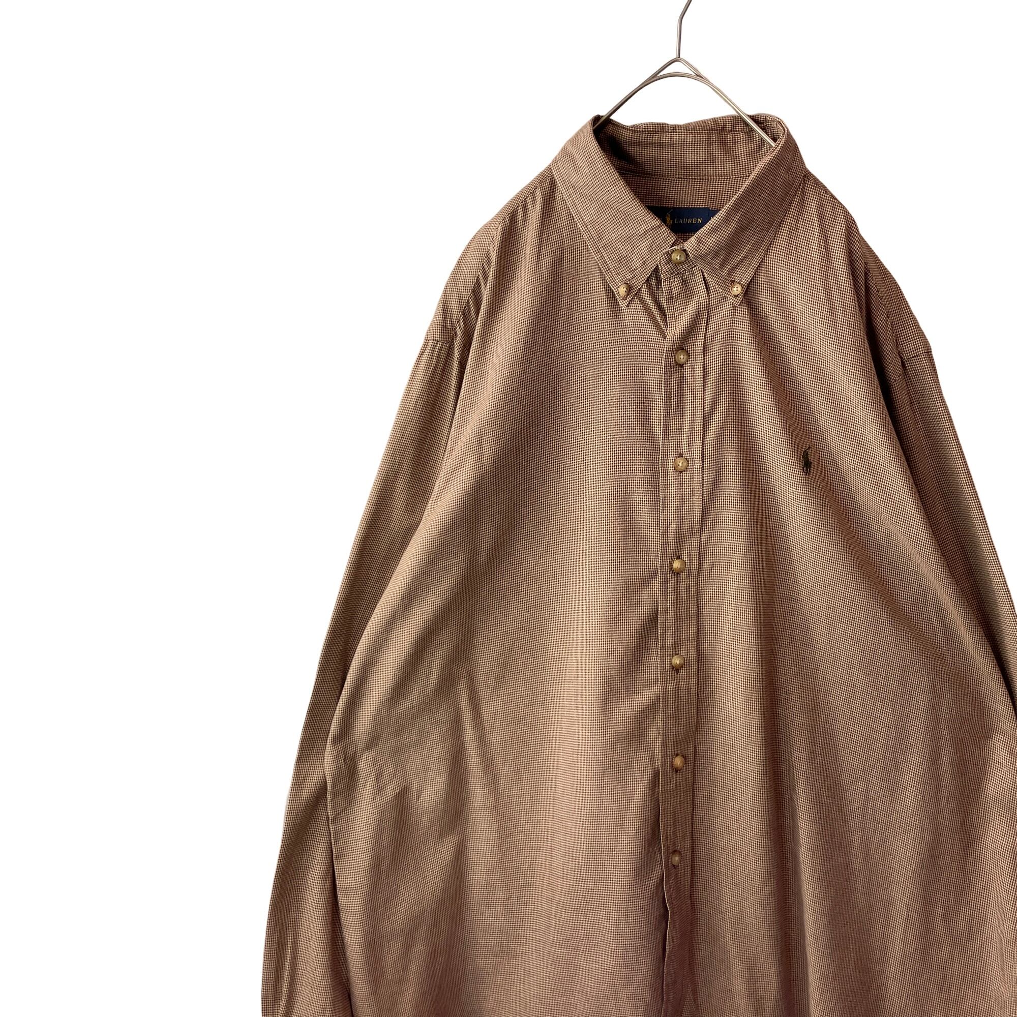 ラルフローレン 千鳥格子 長袖ボタンダウンシャツ ブラウン カーキポニー XXL