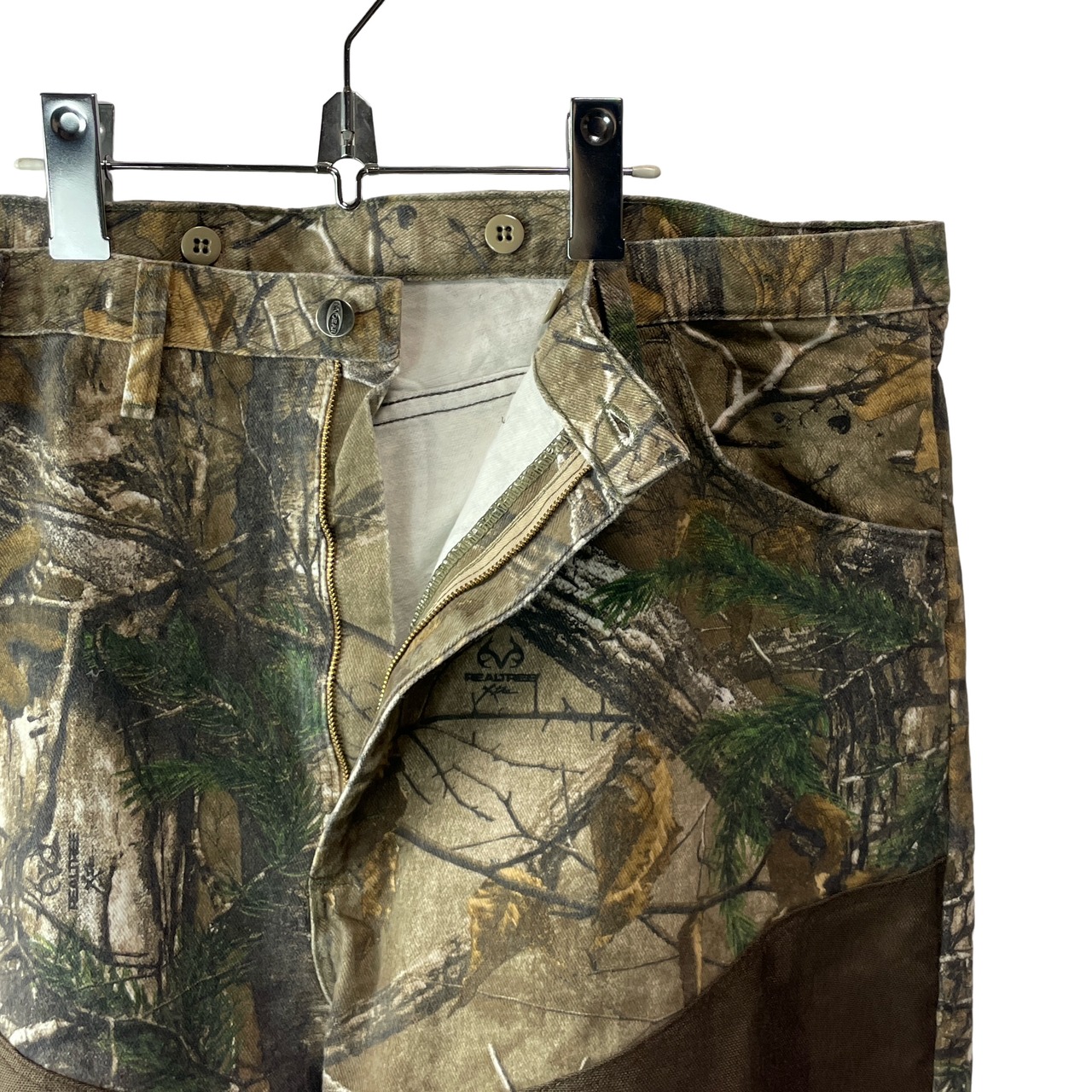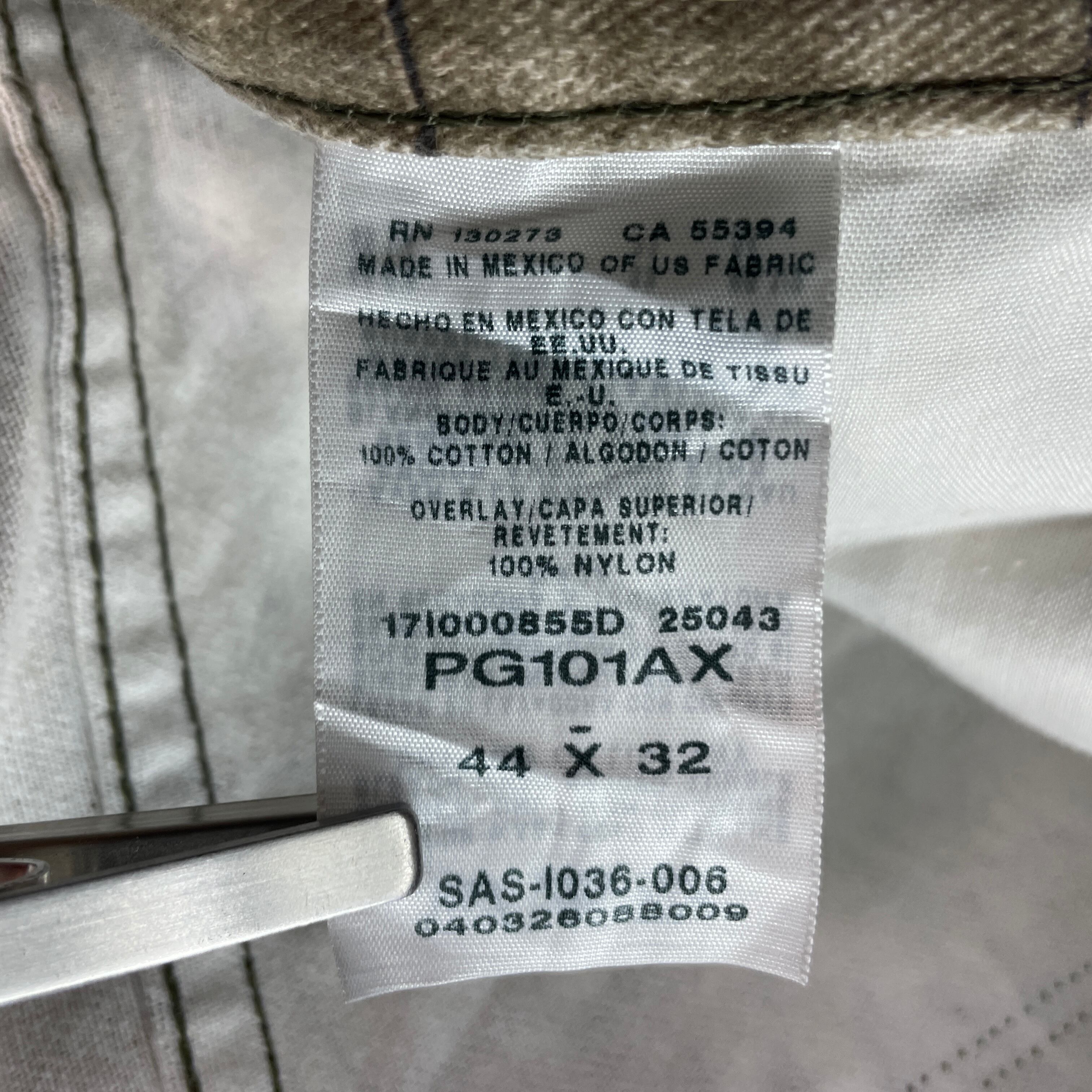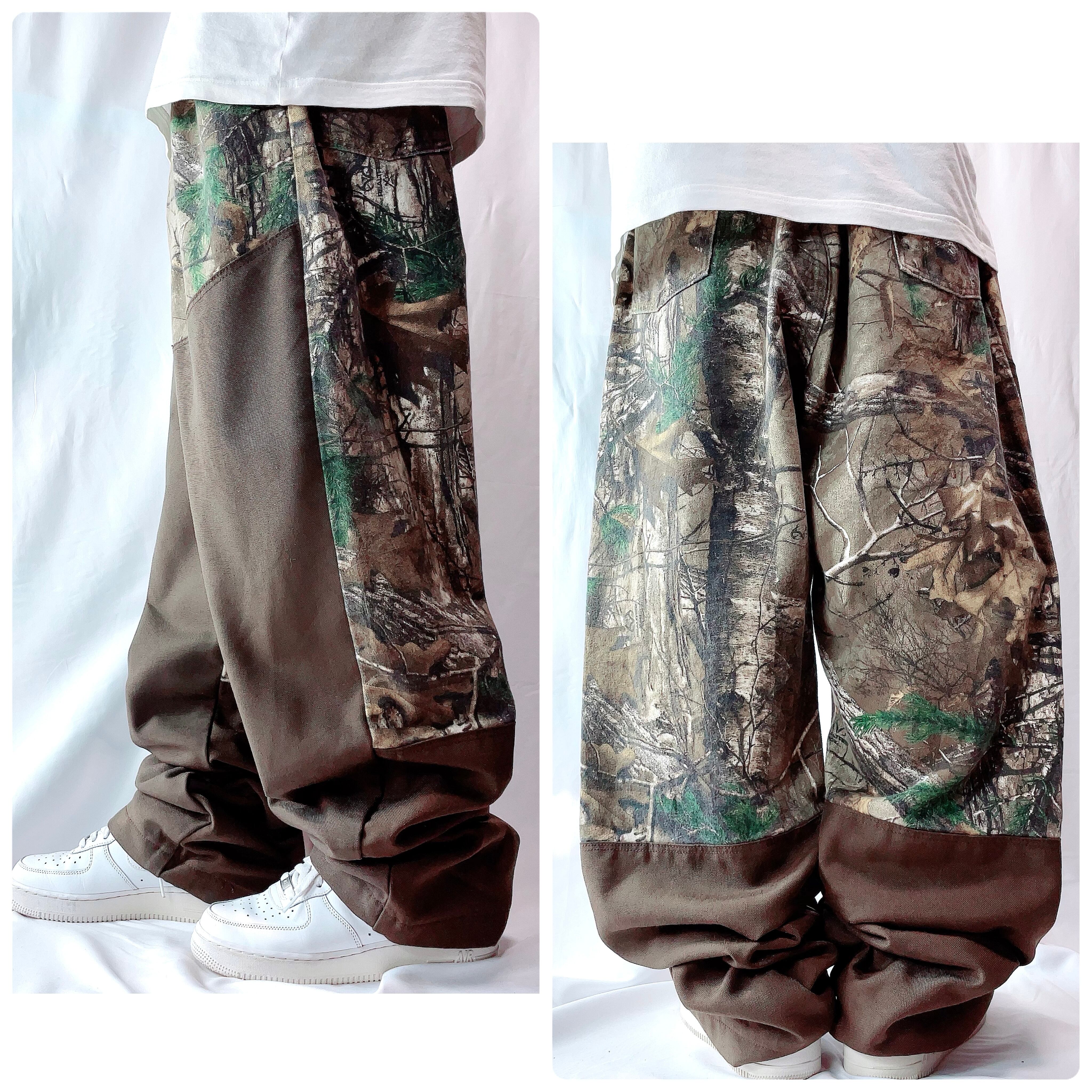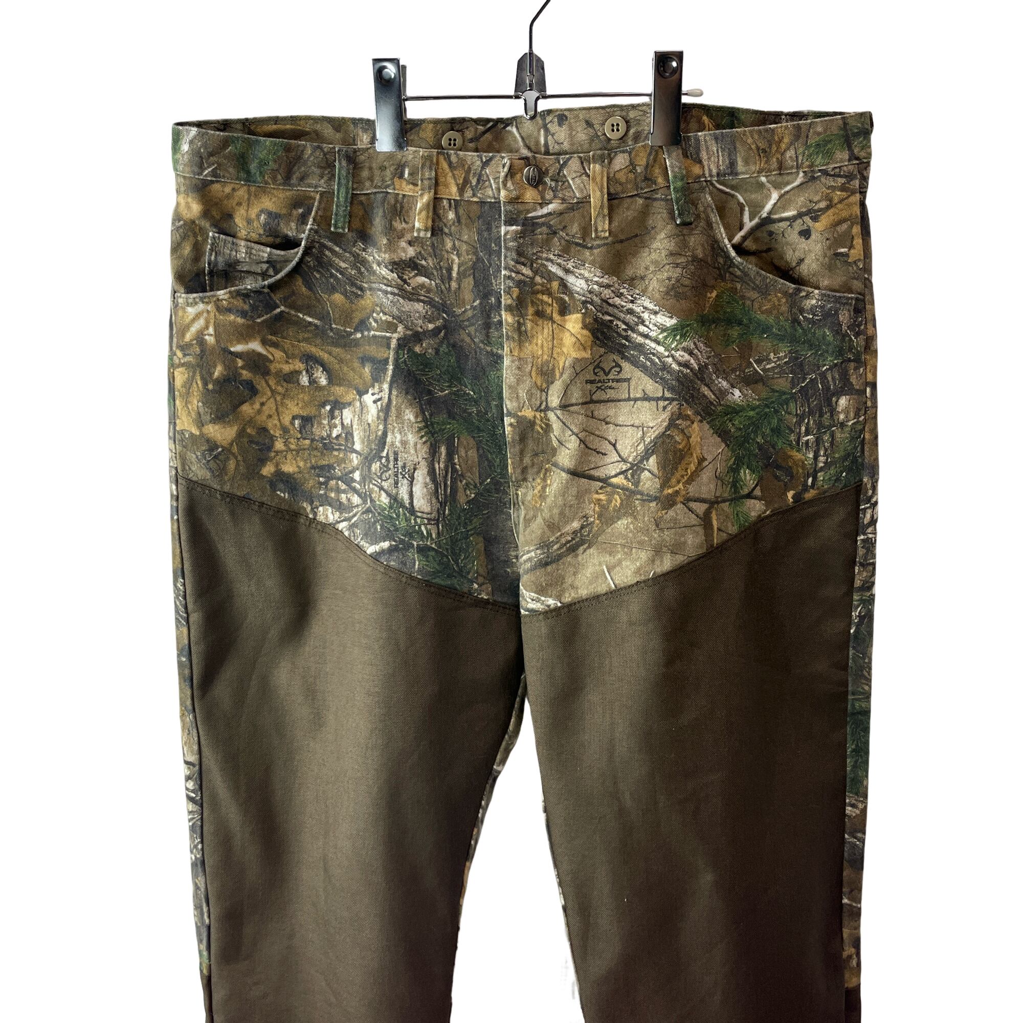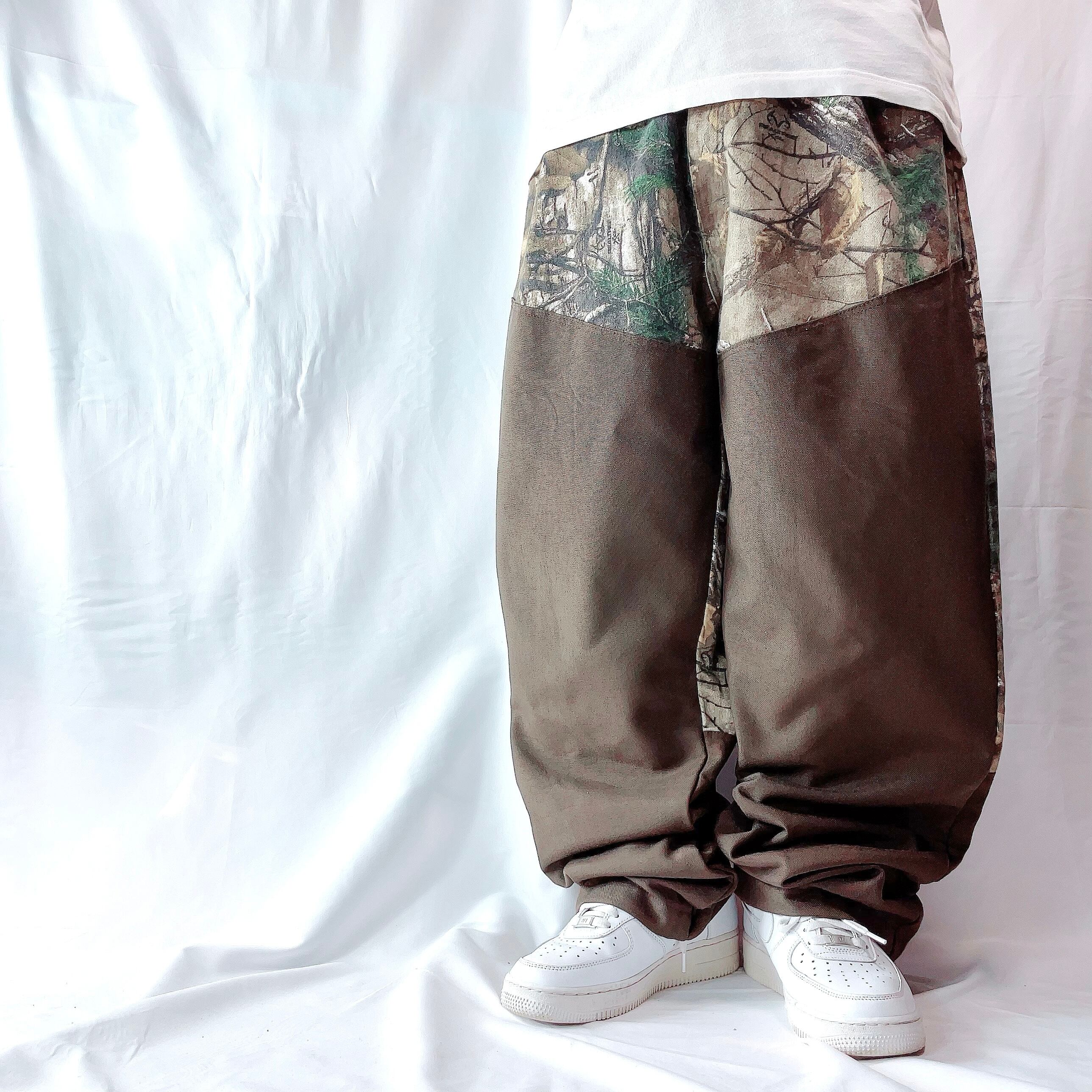 ✅こだわりのアメリカ製生地を使用し、メキシコでタフに縫製された、現行品とは一線を画す質感が魅力。リアルツリー柄に、耐久性の高いナイロン切り替えを施したハイブリッドなルックスが目を引きます。
