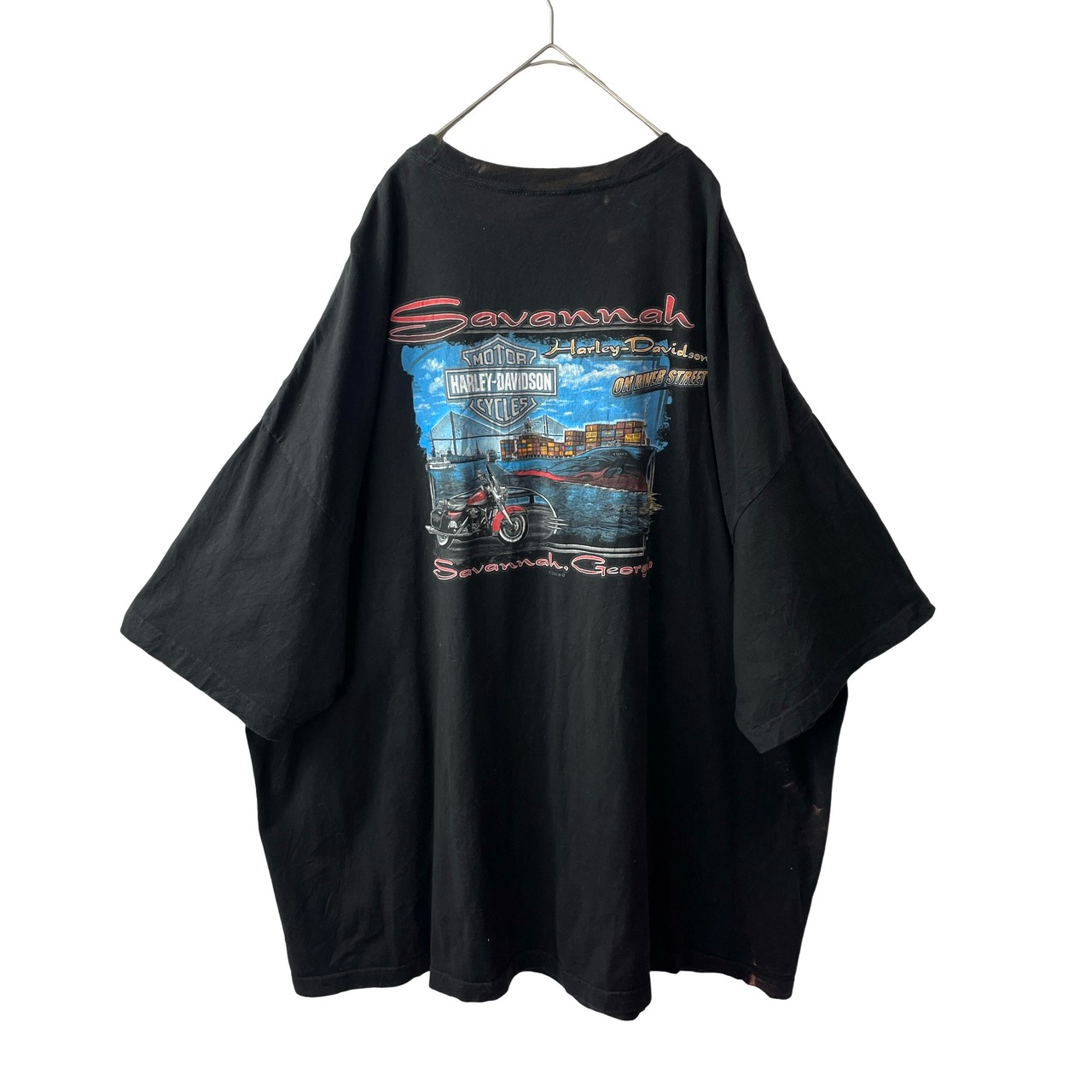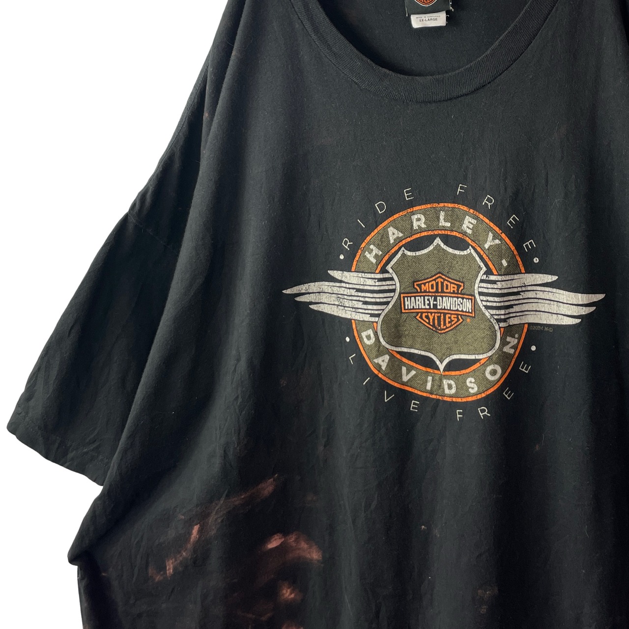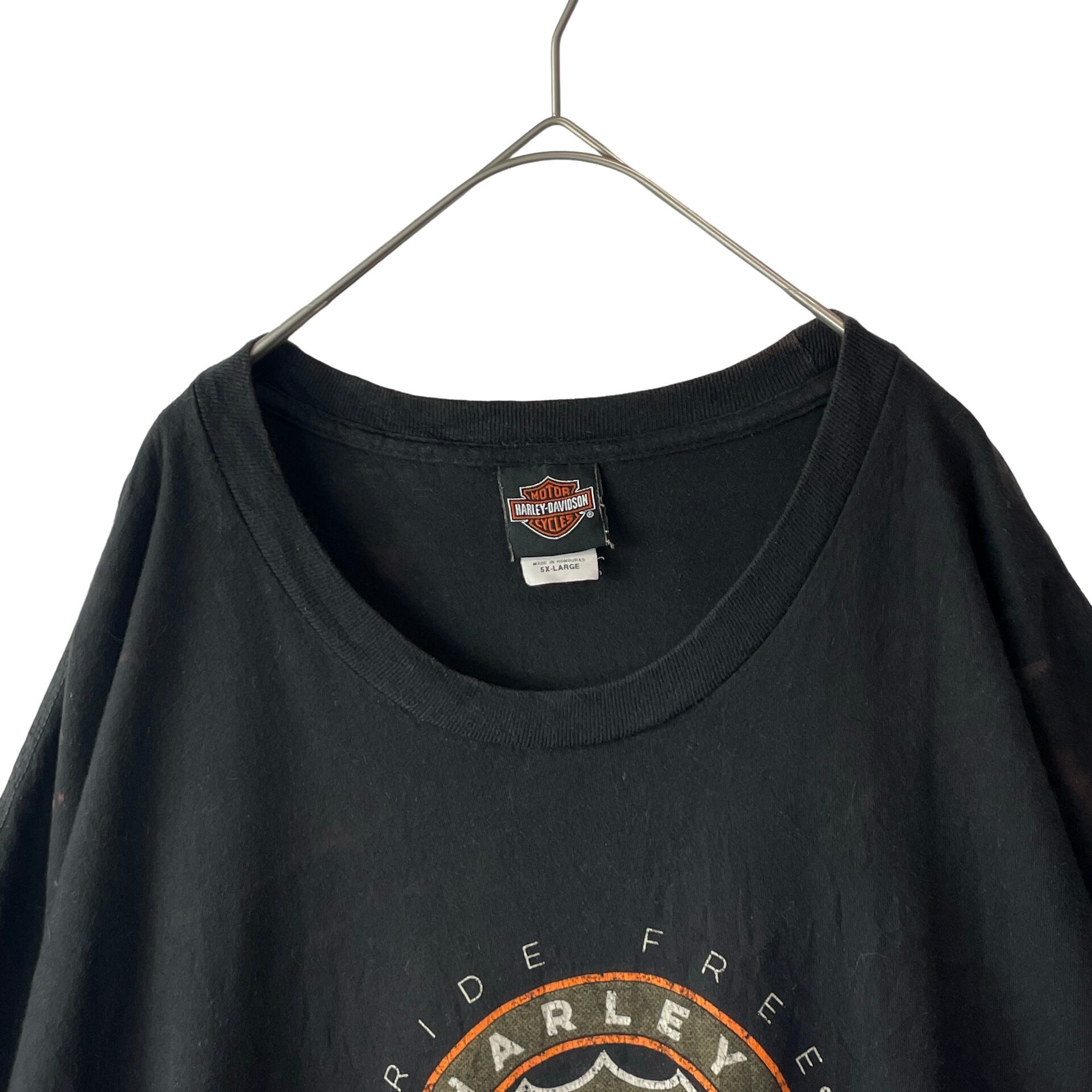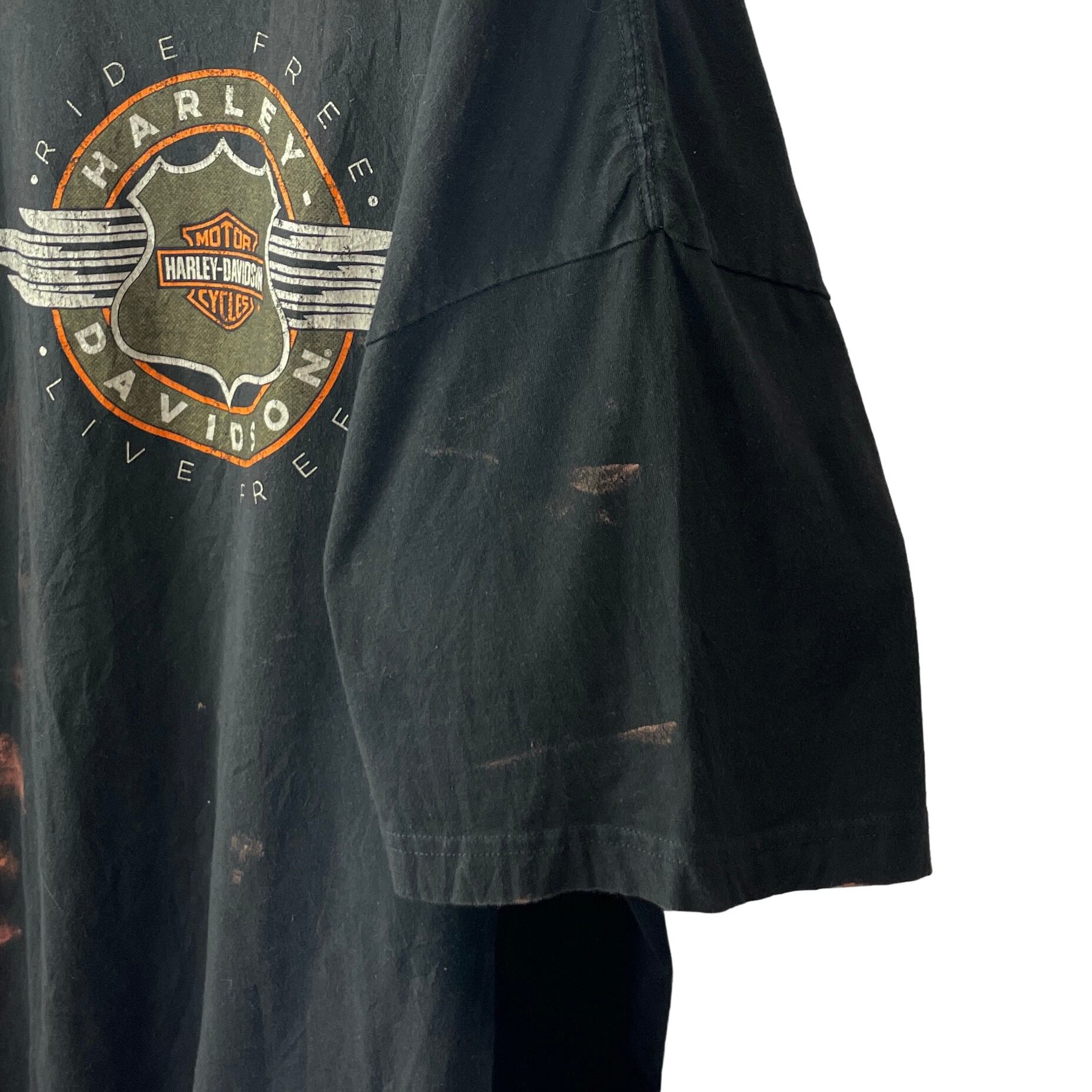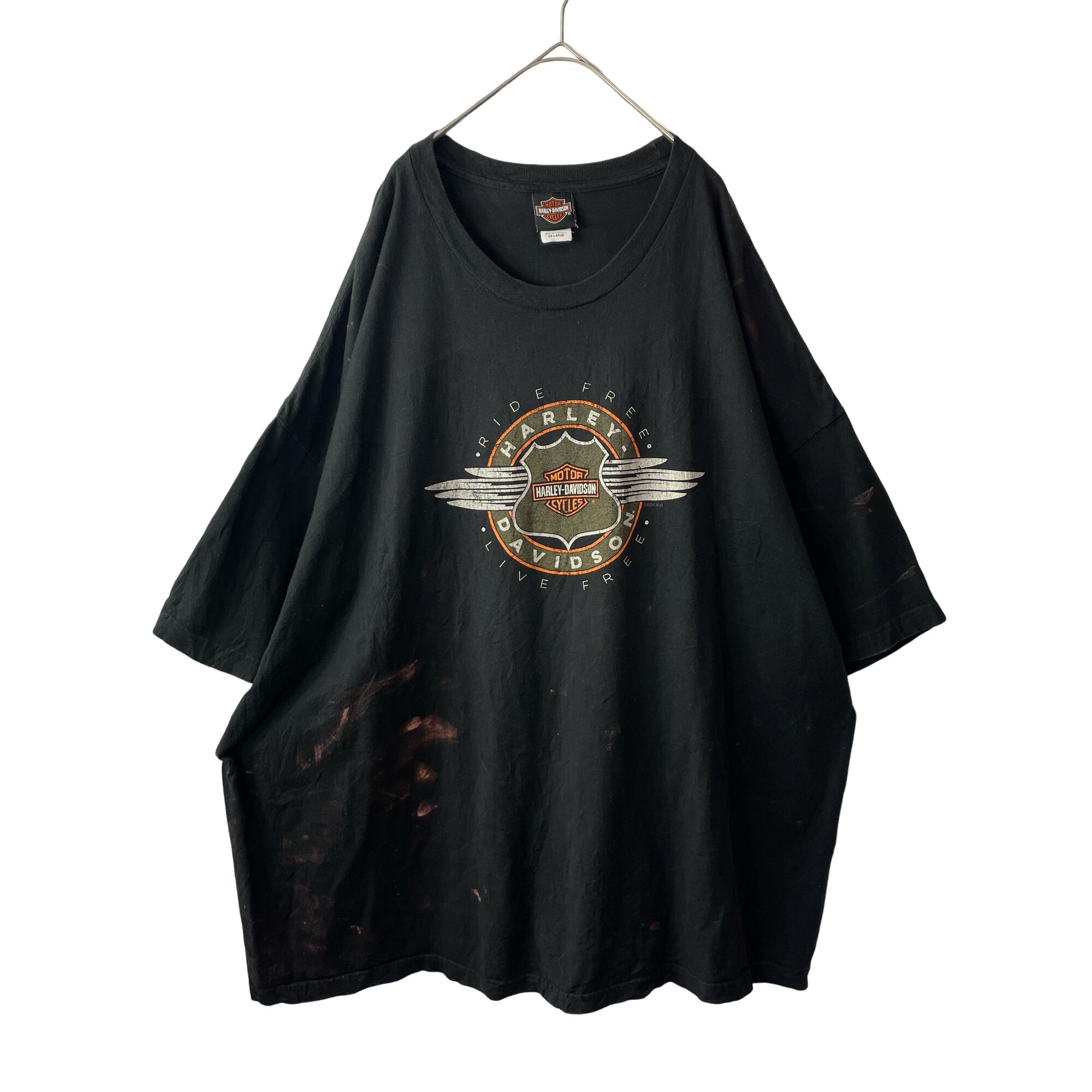 ハーレーダビッドソン 両面プリントTシャツ 黒 超ビッグサイズ ブリーチ 5XL