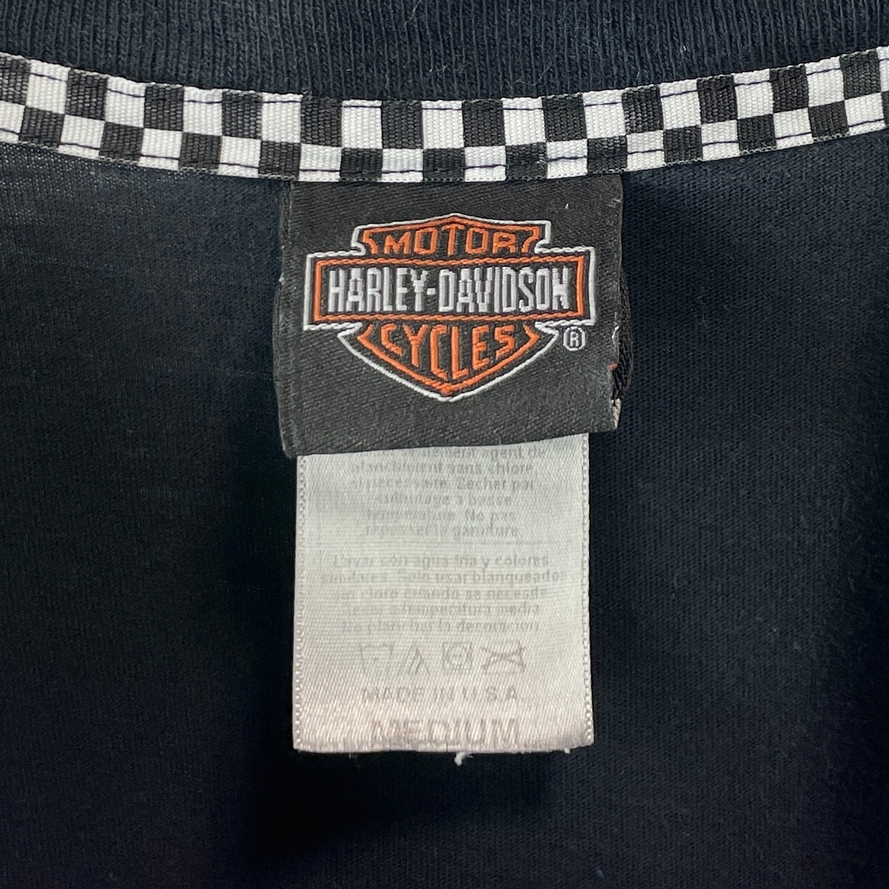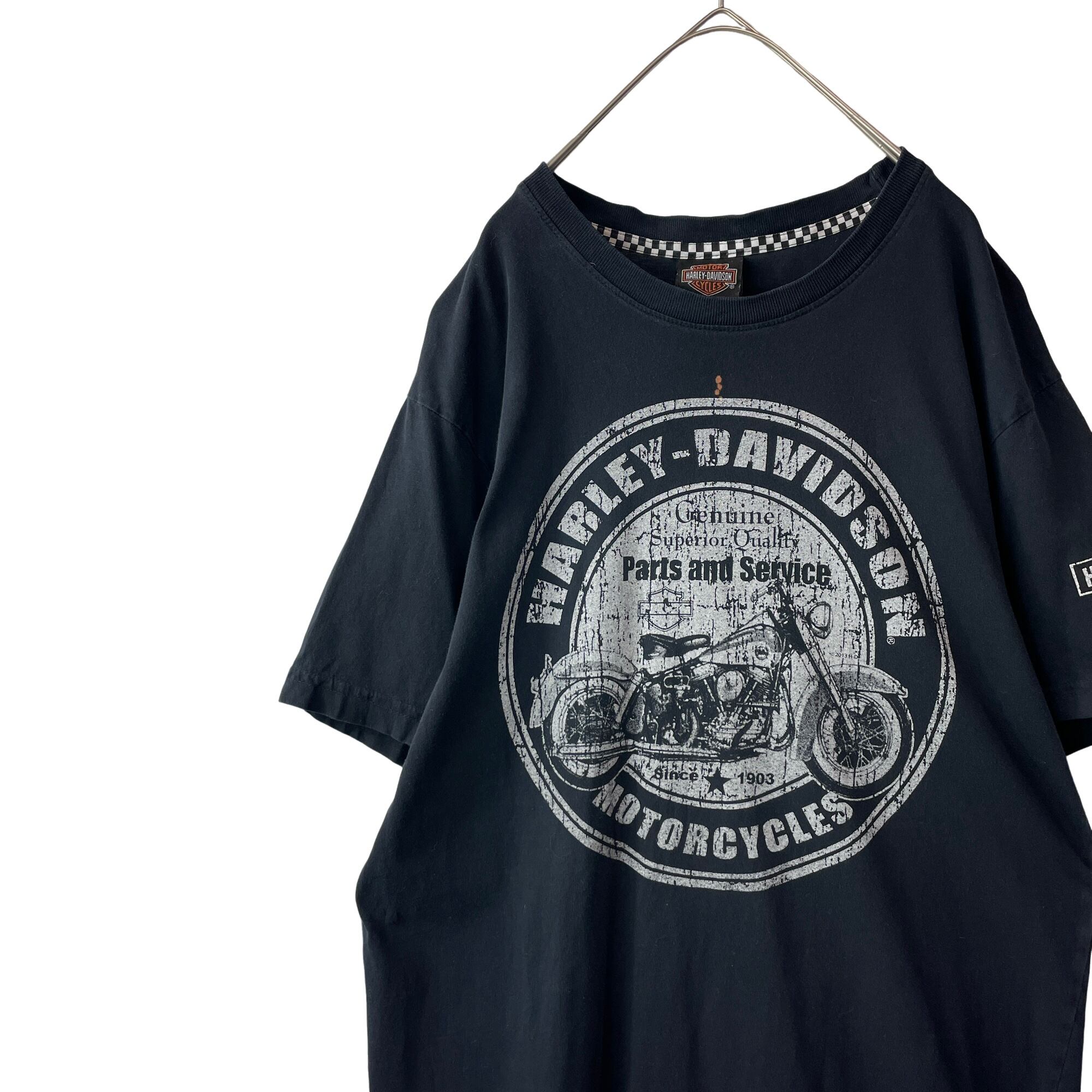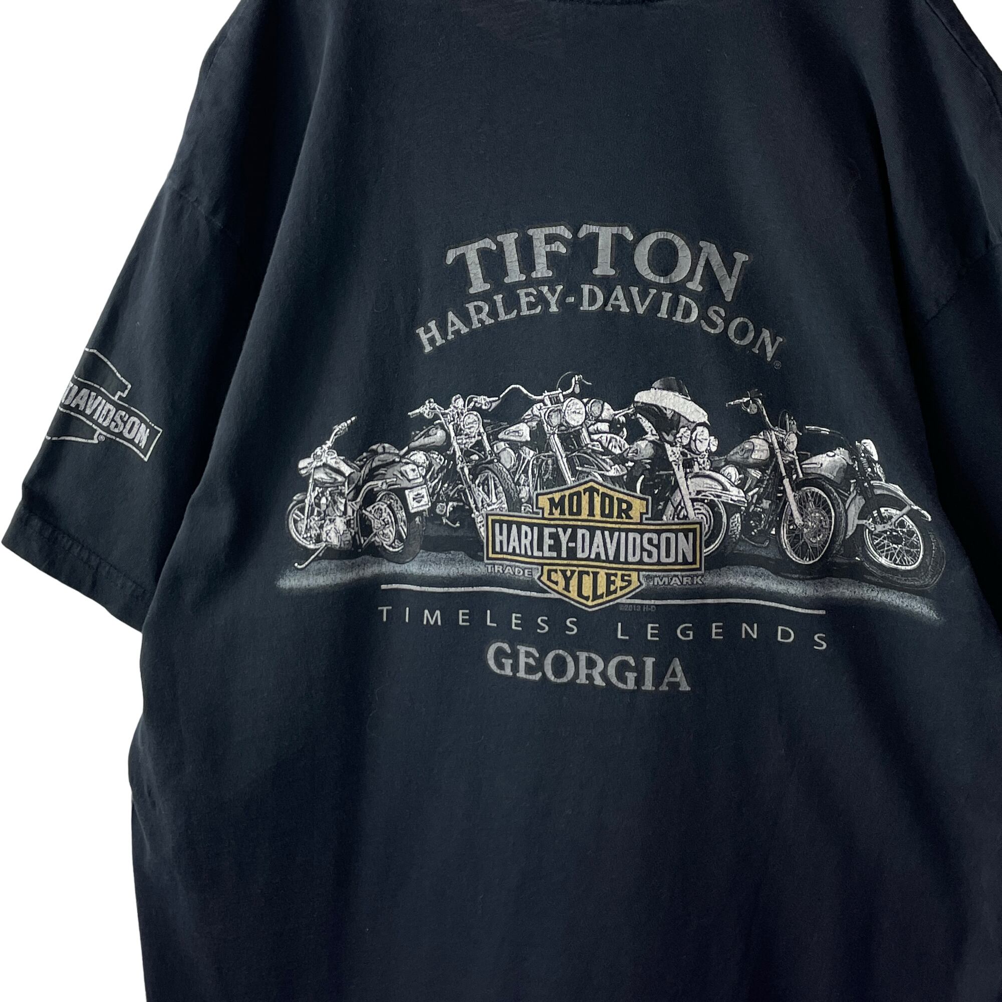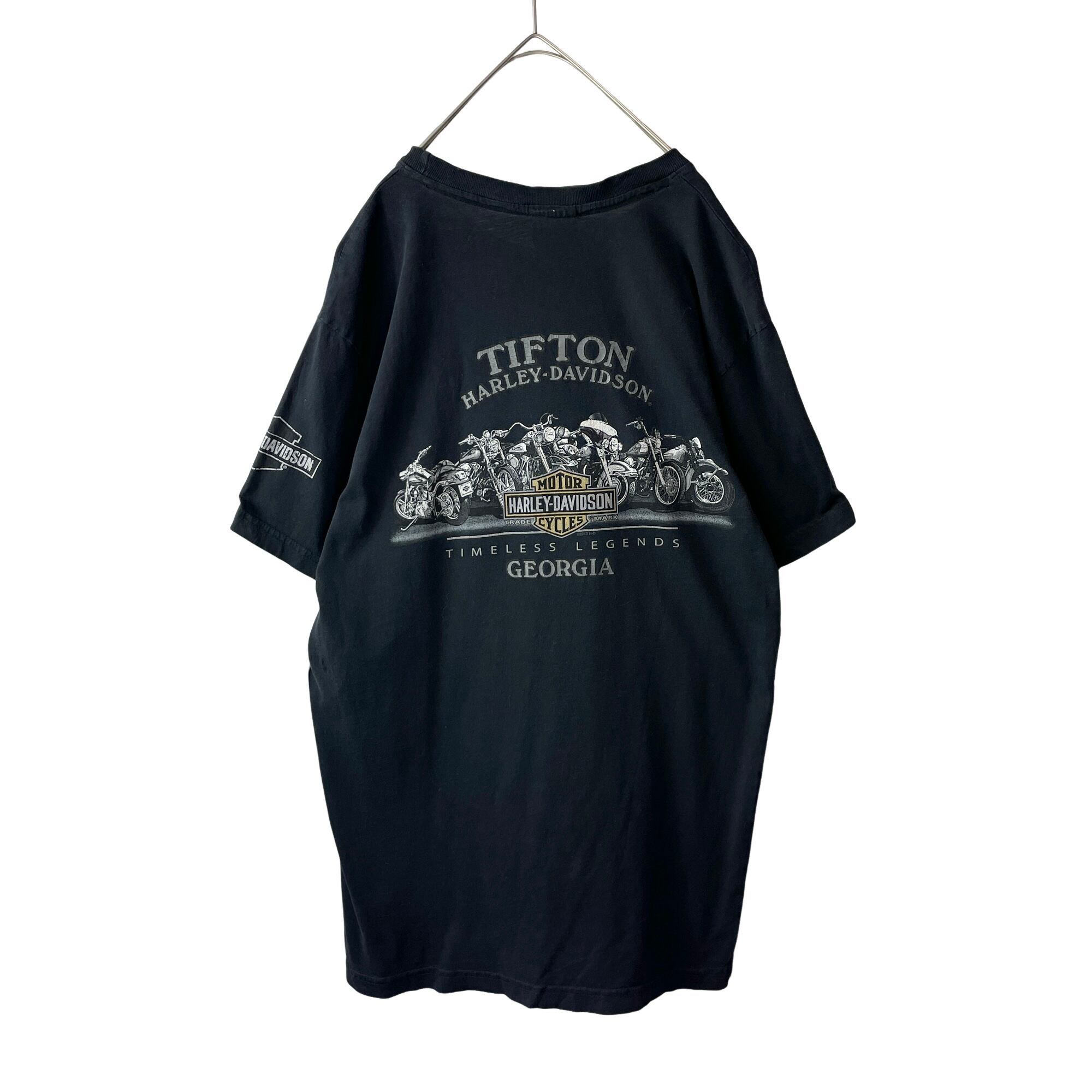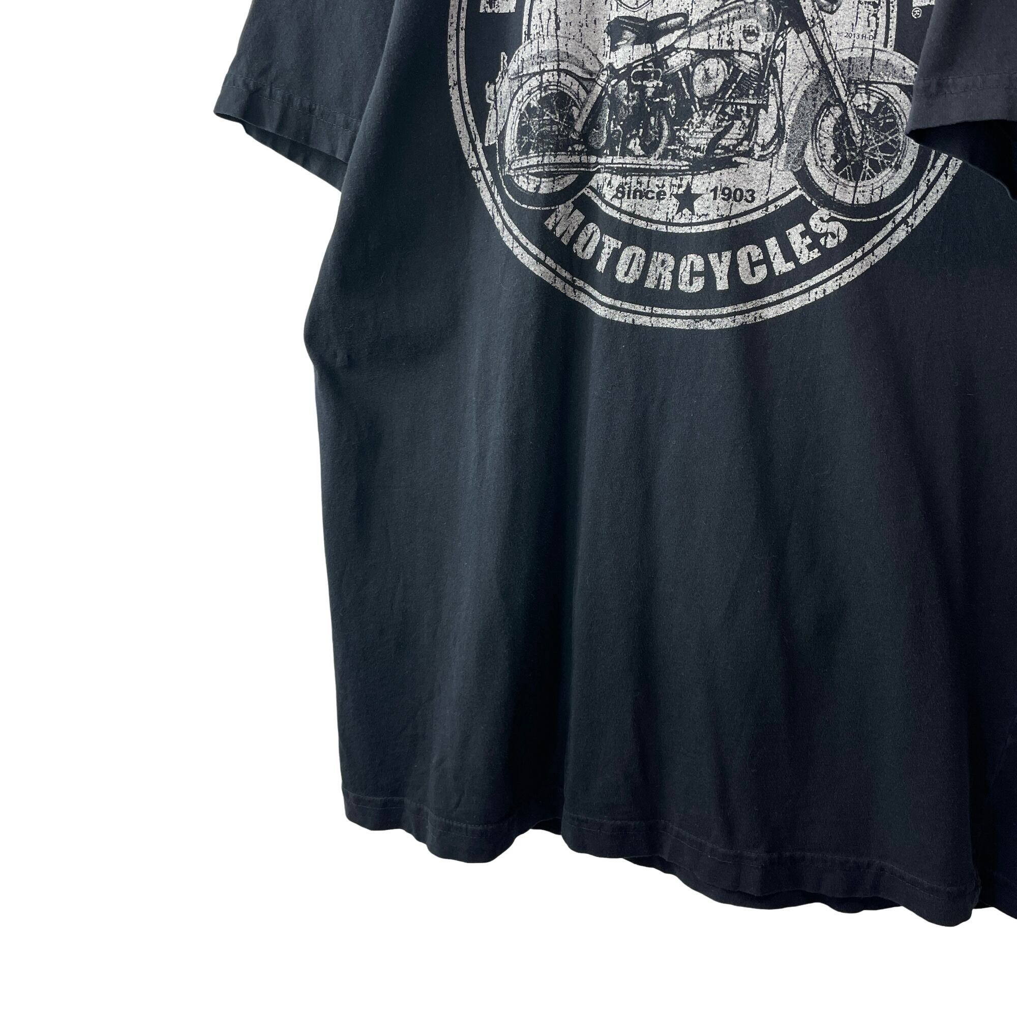 古着 ハーレーダビッドソン USA製 両面プリント Tシャツ 歴代バイク 黒 M