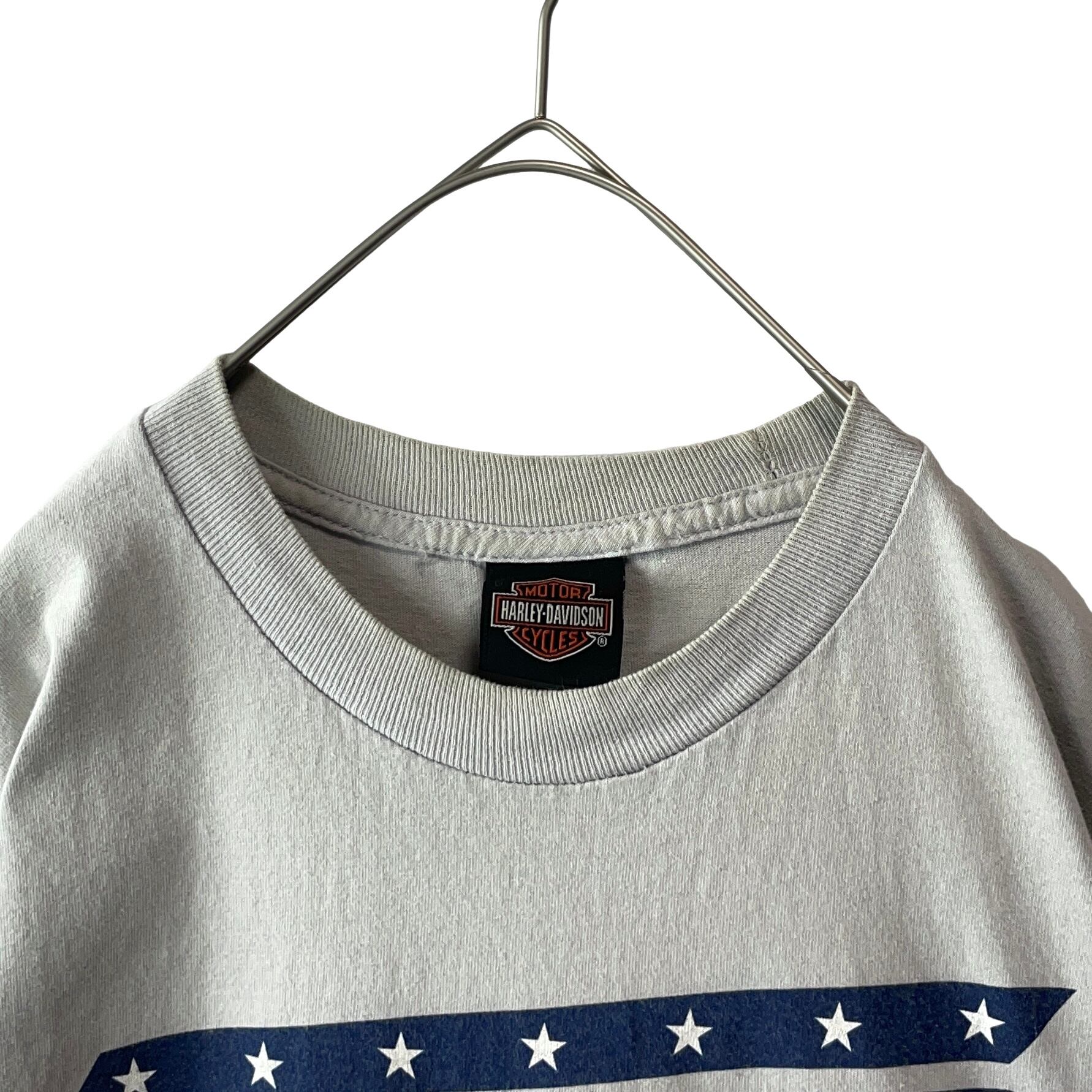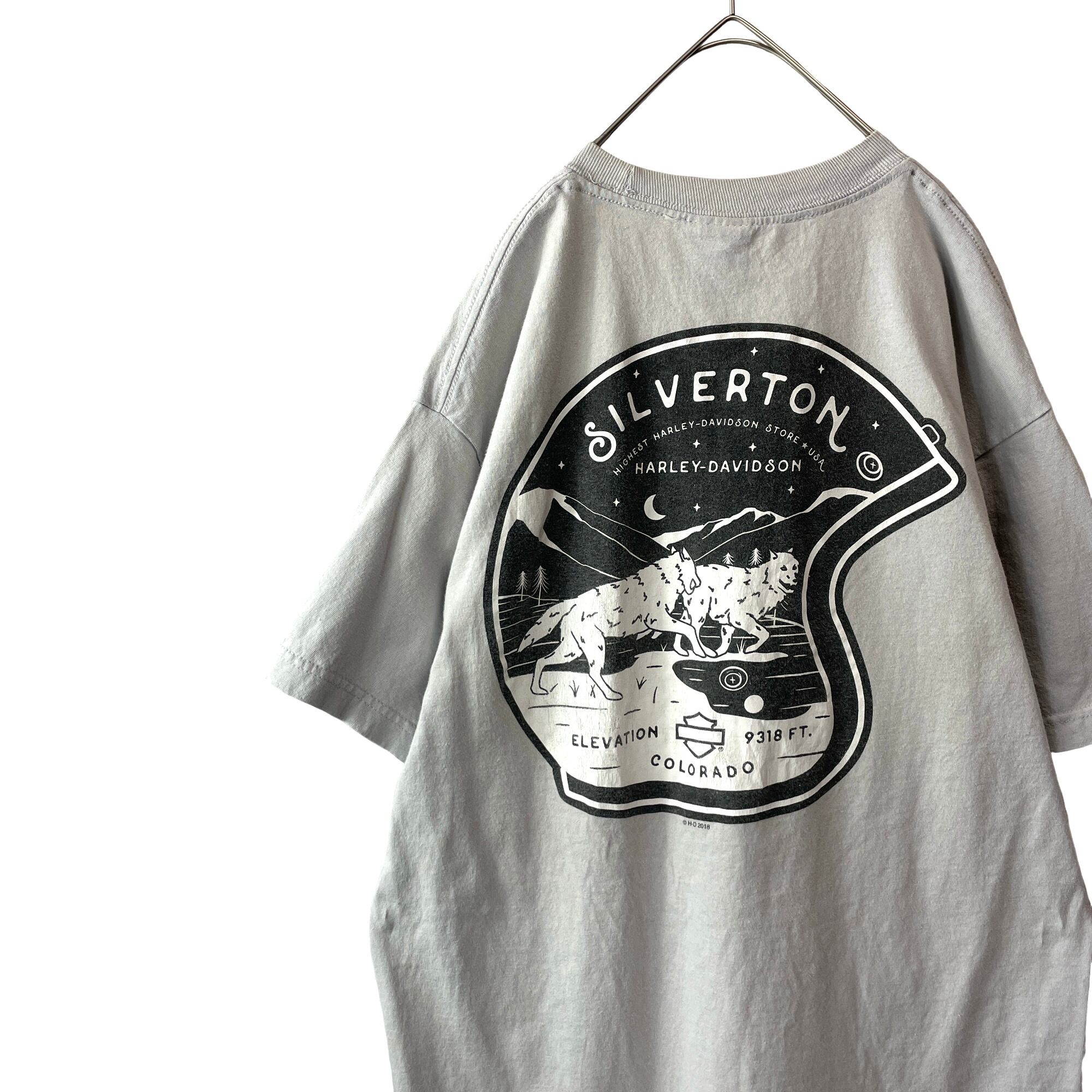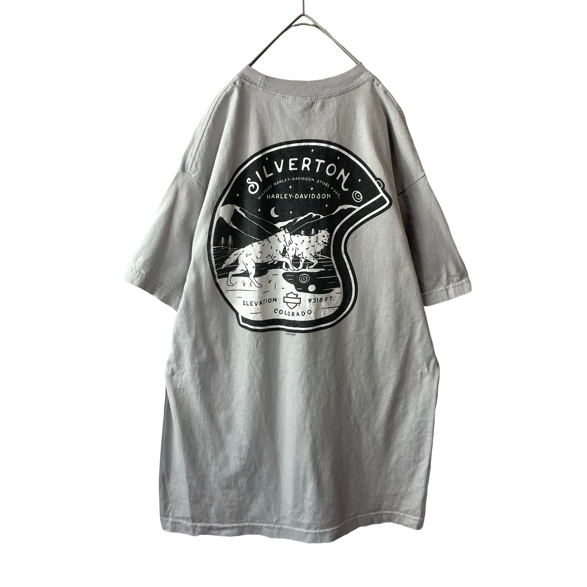 古着 ハーレーダビッドソン Tシャツ ヘルメット 狼 ウルフ グレー メンズ L