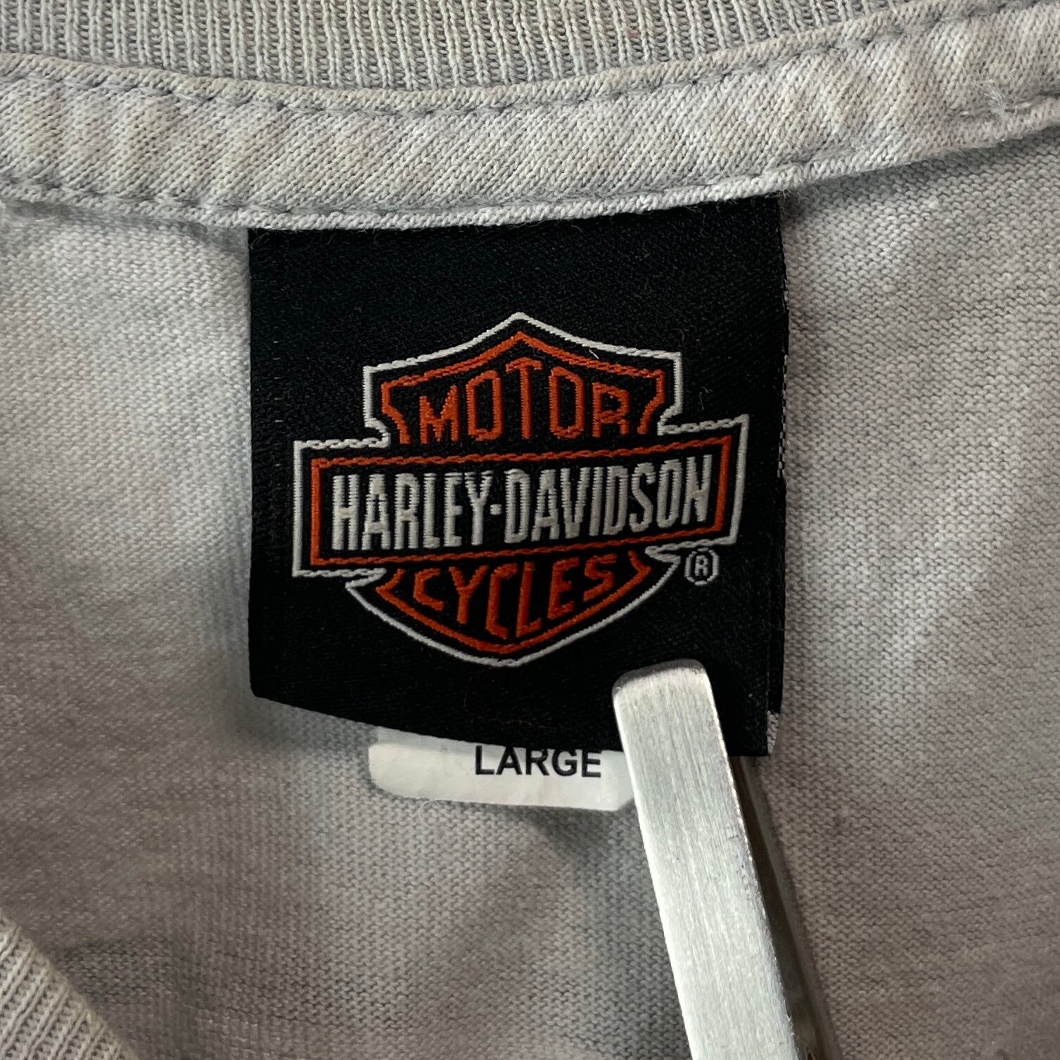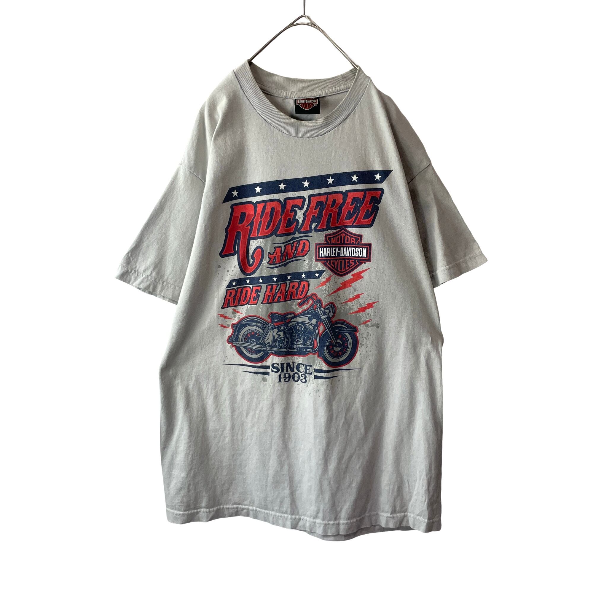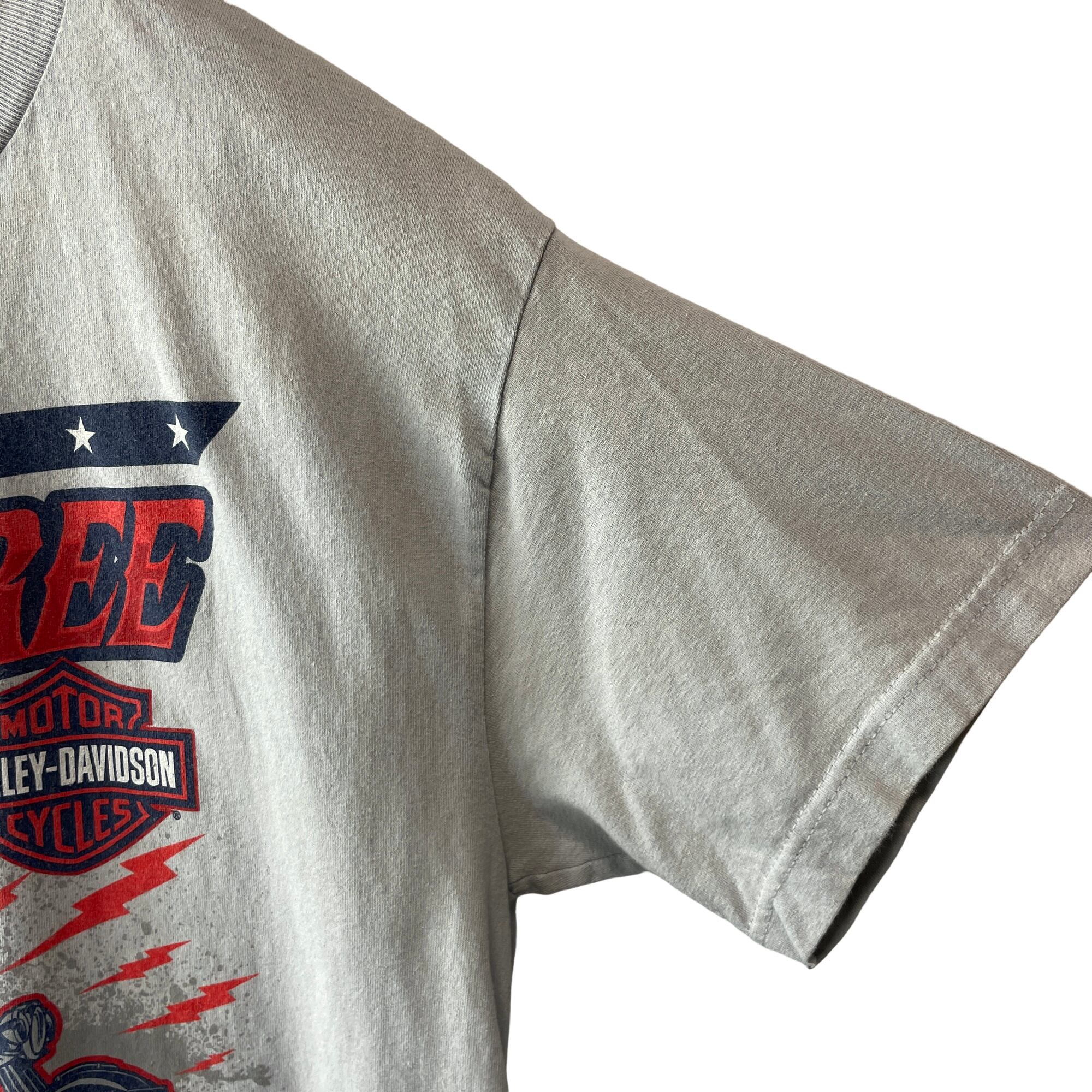 古着 ハーレーダビッドソン Tシャツ ヘルメット 狼 ウルフ グレー メンズ L