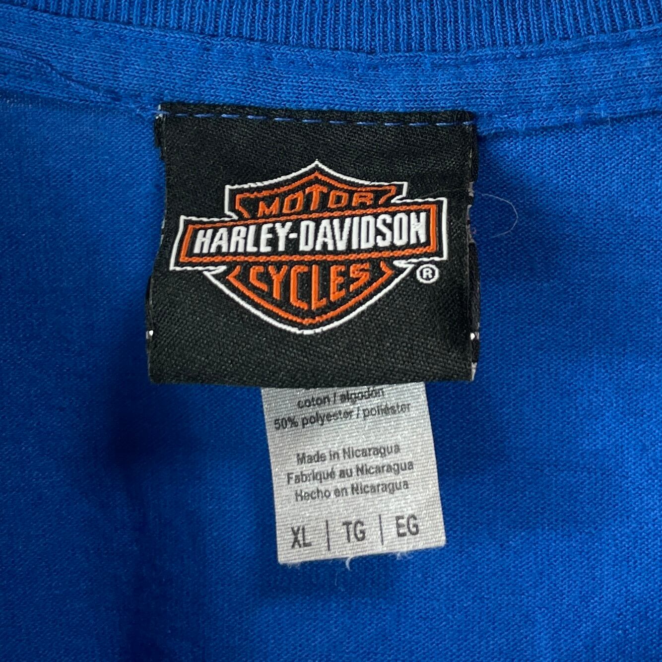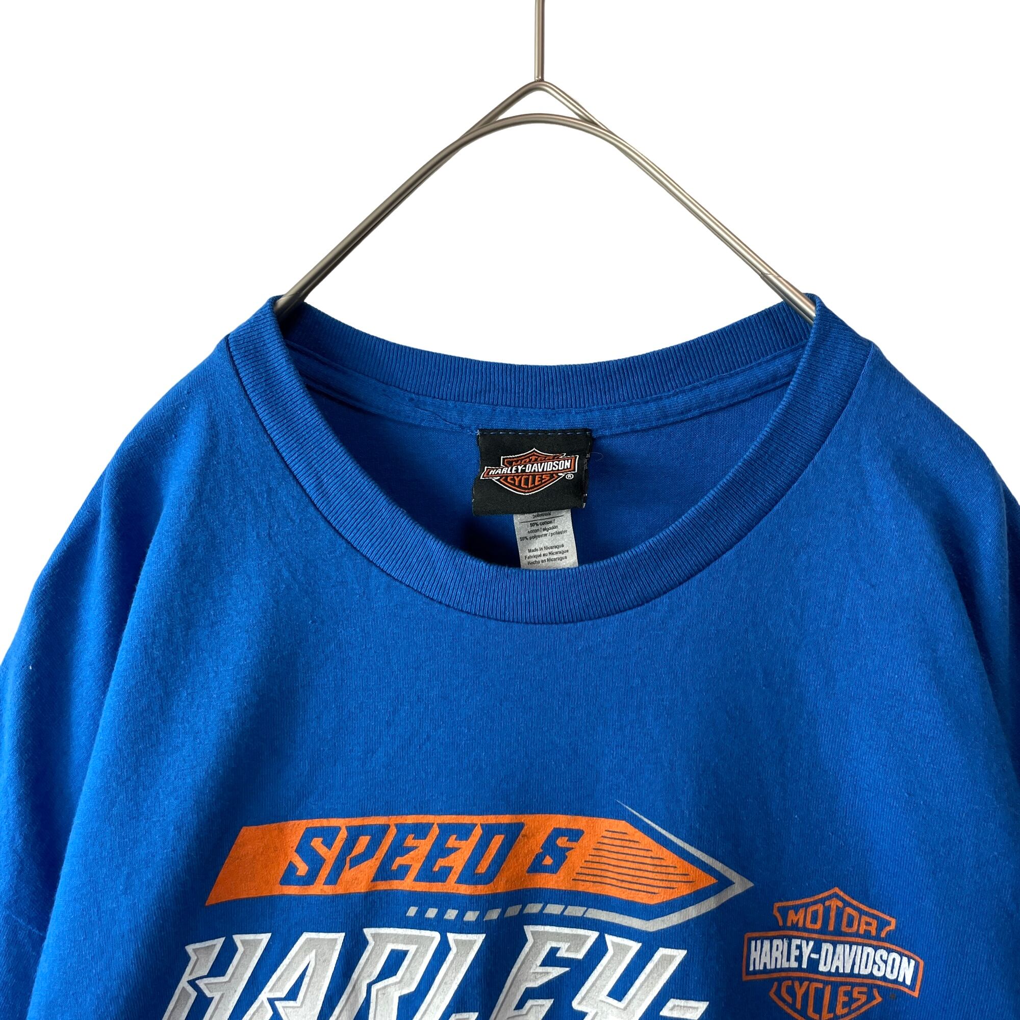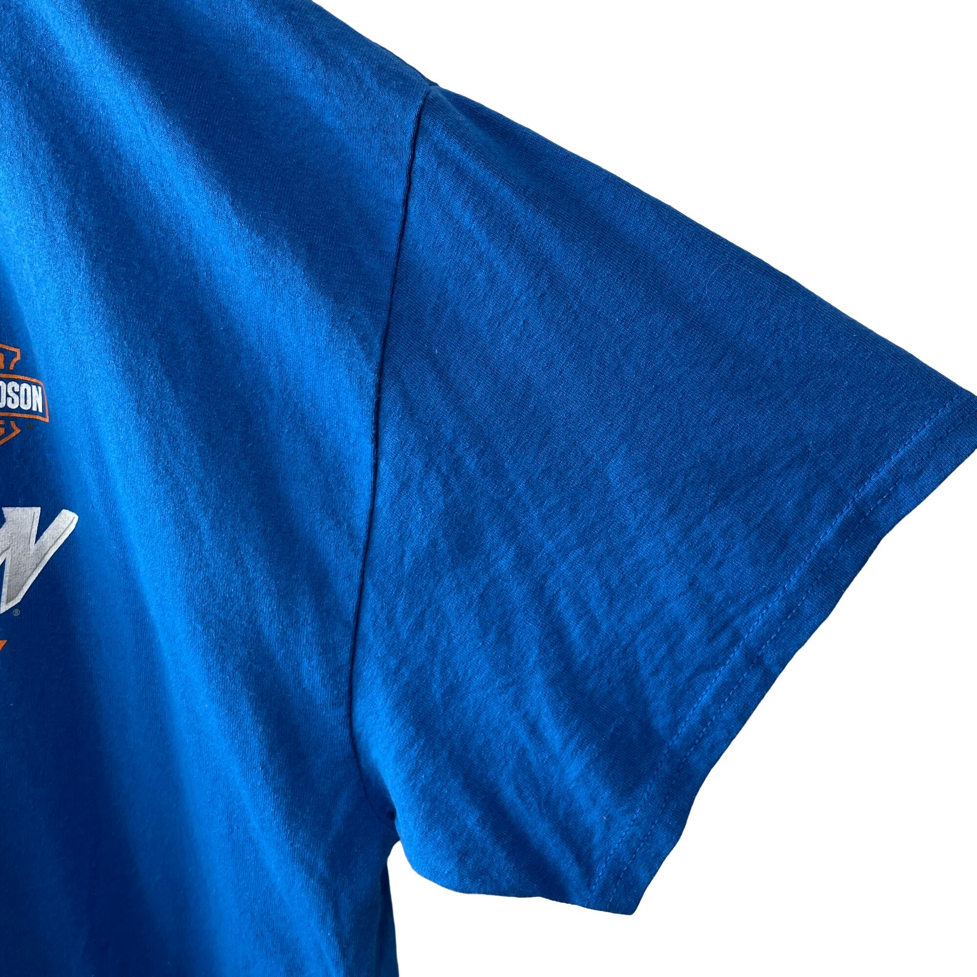 ✅鮮やかなブルーカラーにハーレーダビッドソン特有のオレンジカラープリント◎