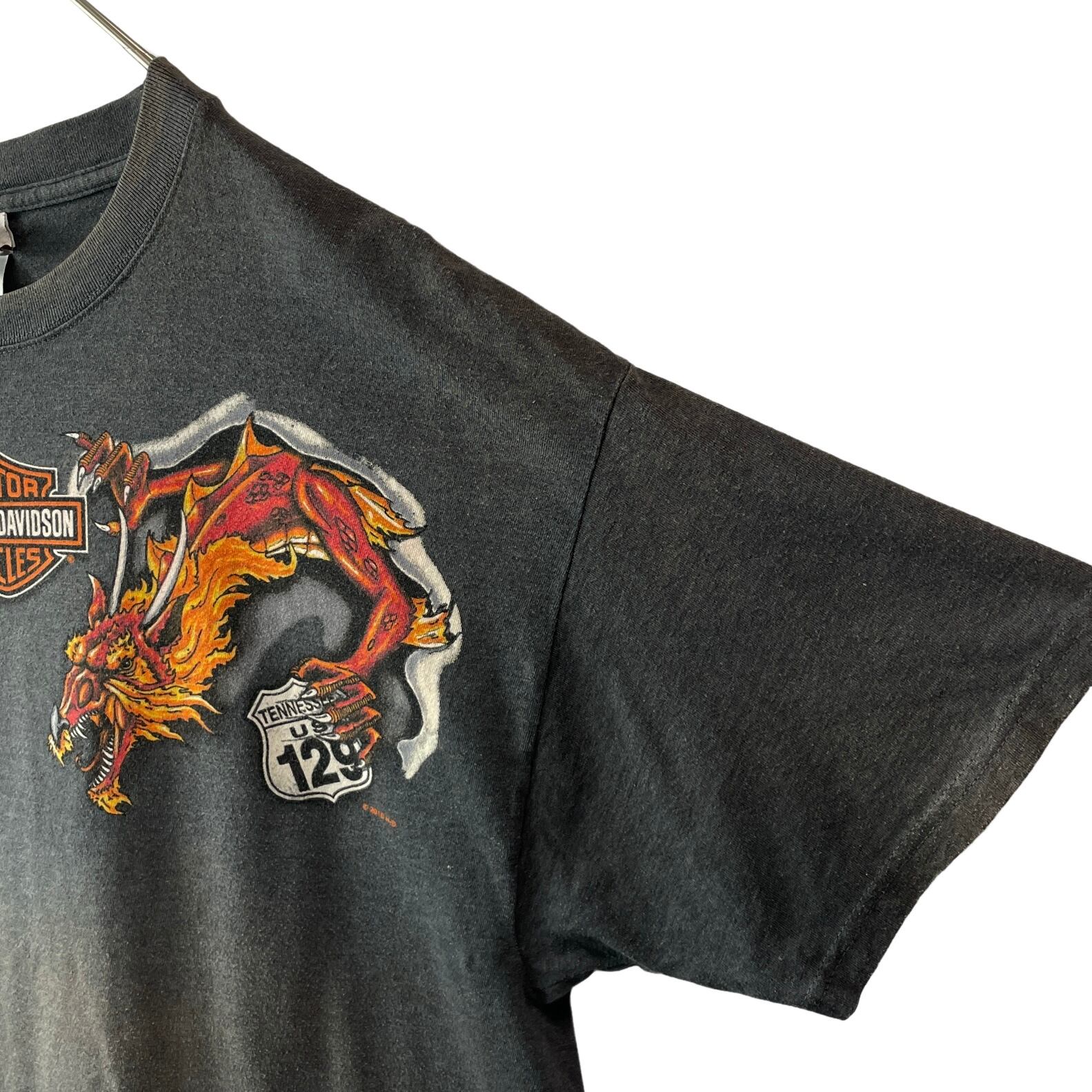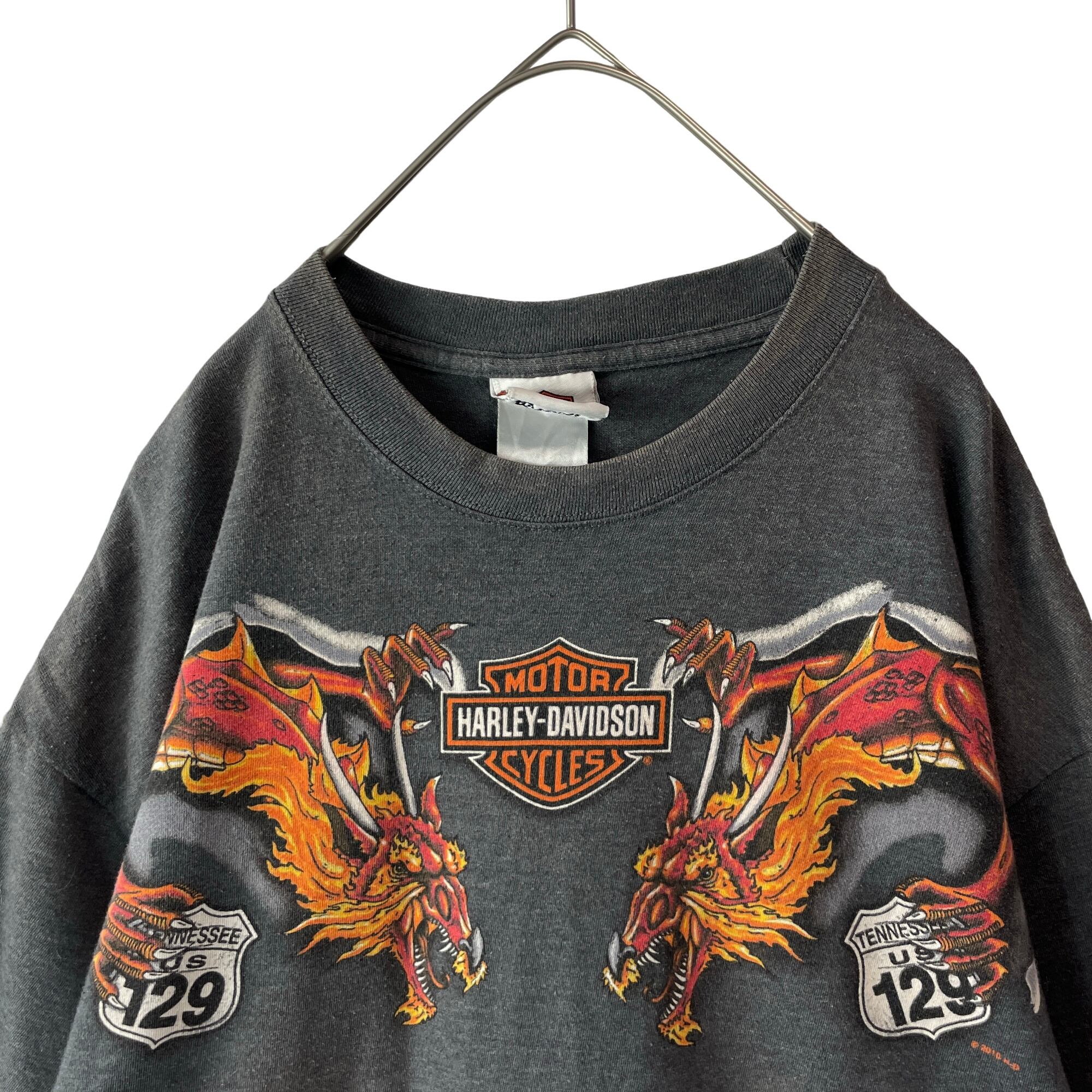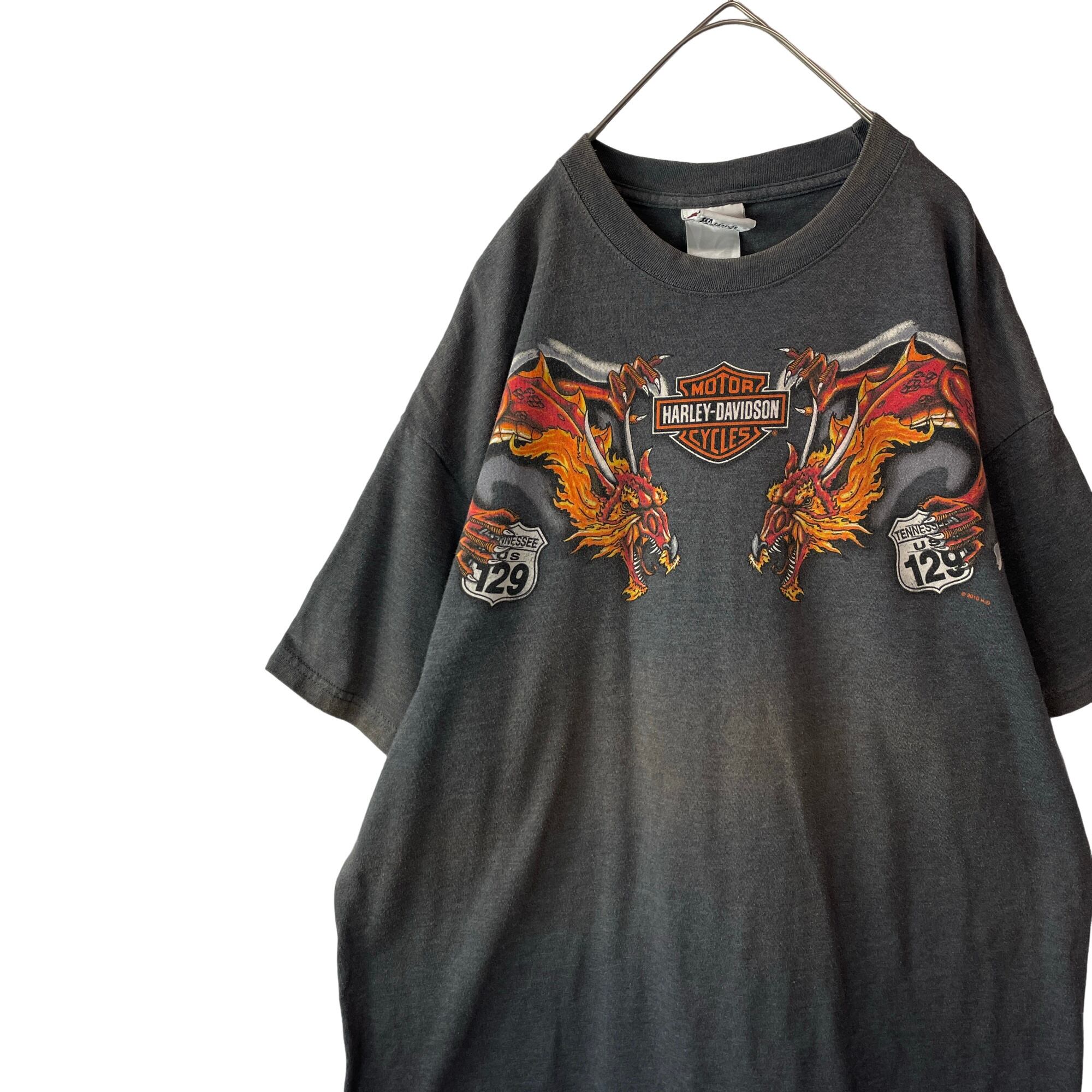 最高デザイン ハーレーダビッドソン Tシャツ 龍 ダブルドラゴン フェードグレー