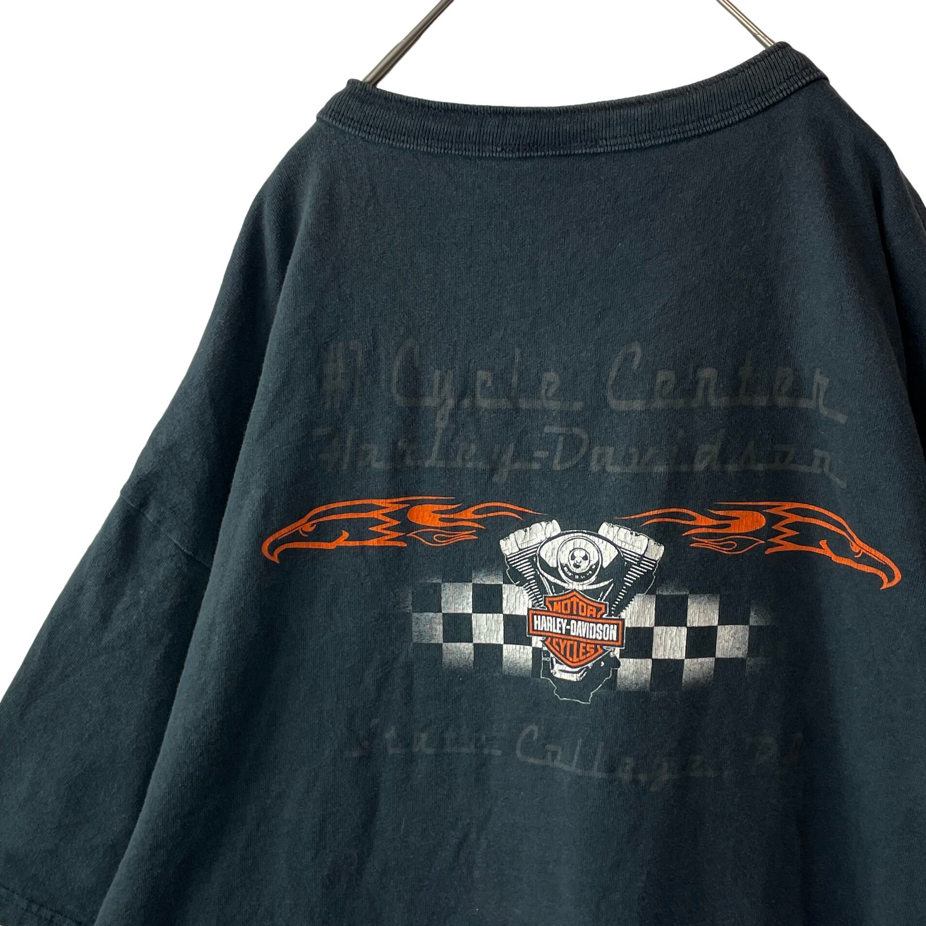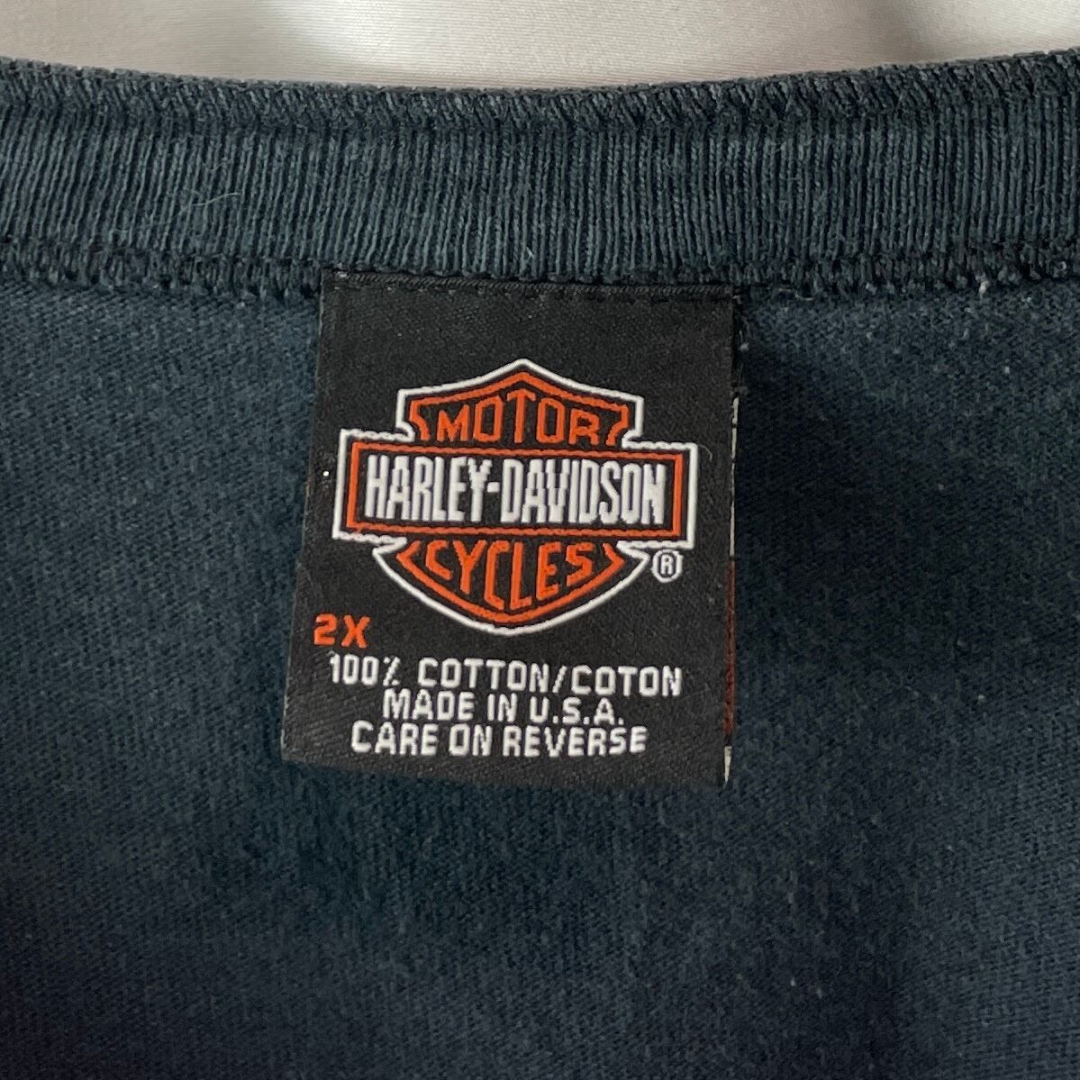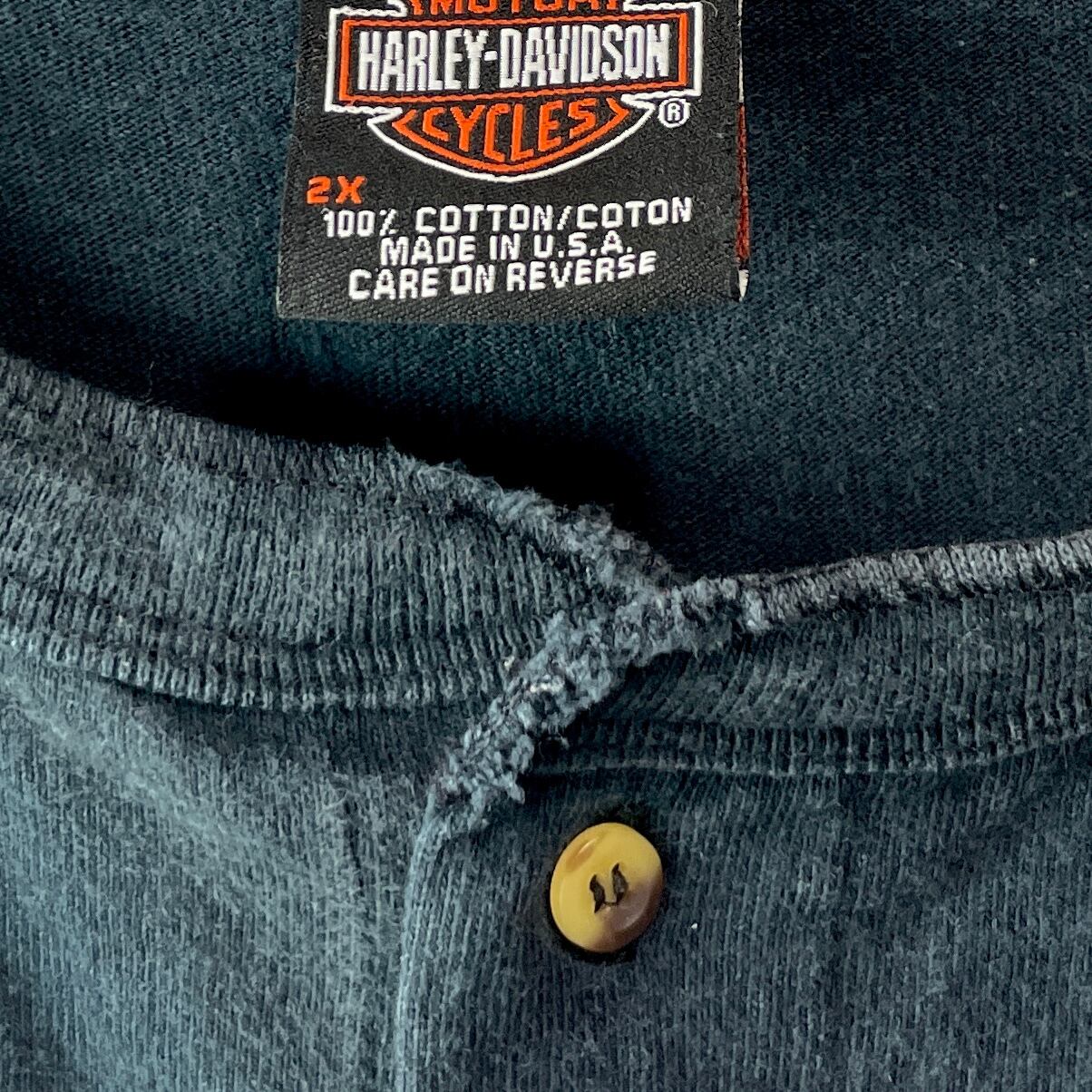 【希少】USA製 ハーレーダビッドソン 2XL ヘンリーネックTシャツ 墨黒