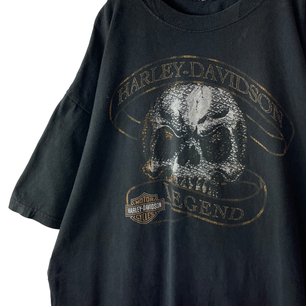 ✅ハーレー古着の中でも人気のスカルモチーフ。かすれたプリントの質感が、味のある雰囲気。