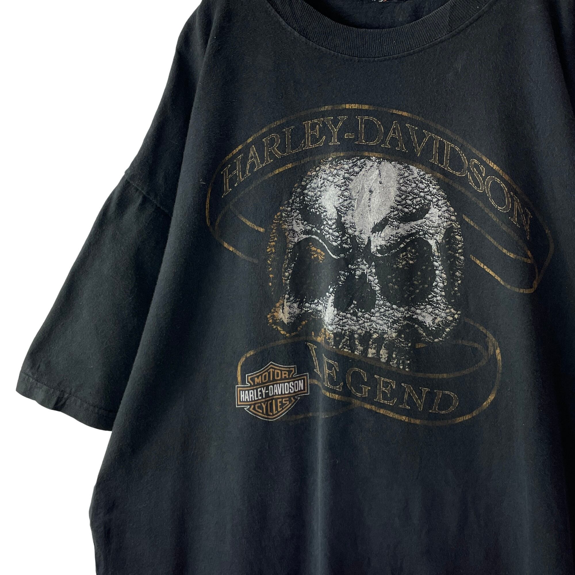 【00s スカルグラフィック】古着 ハーレーダビッドソン Tシャツ 黒 XL相当