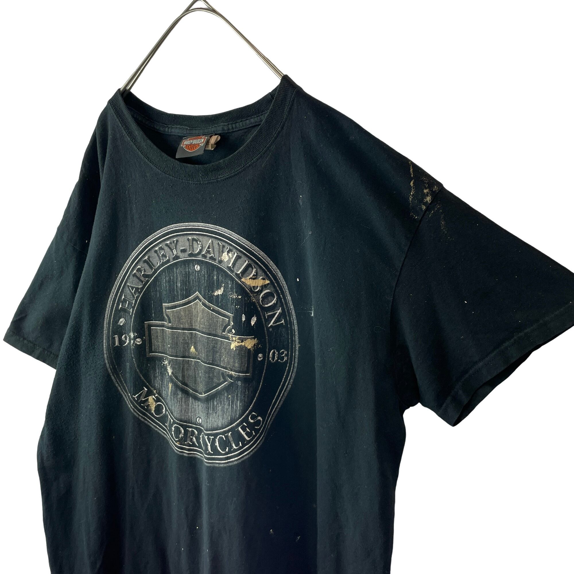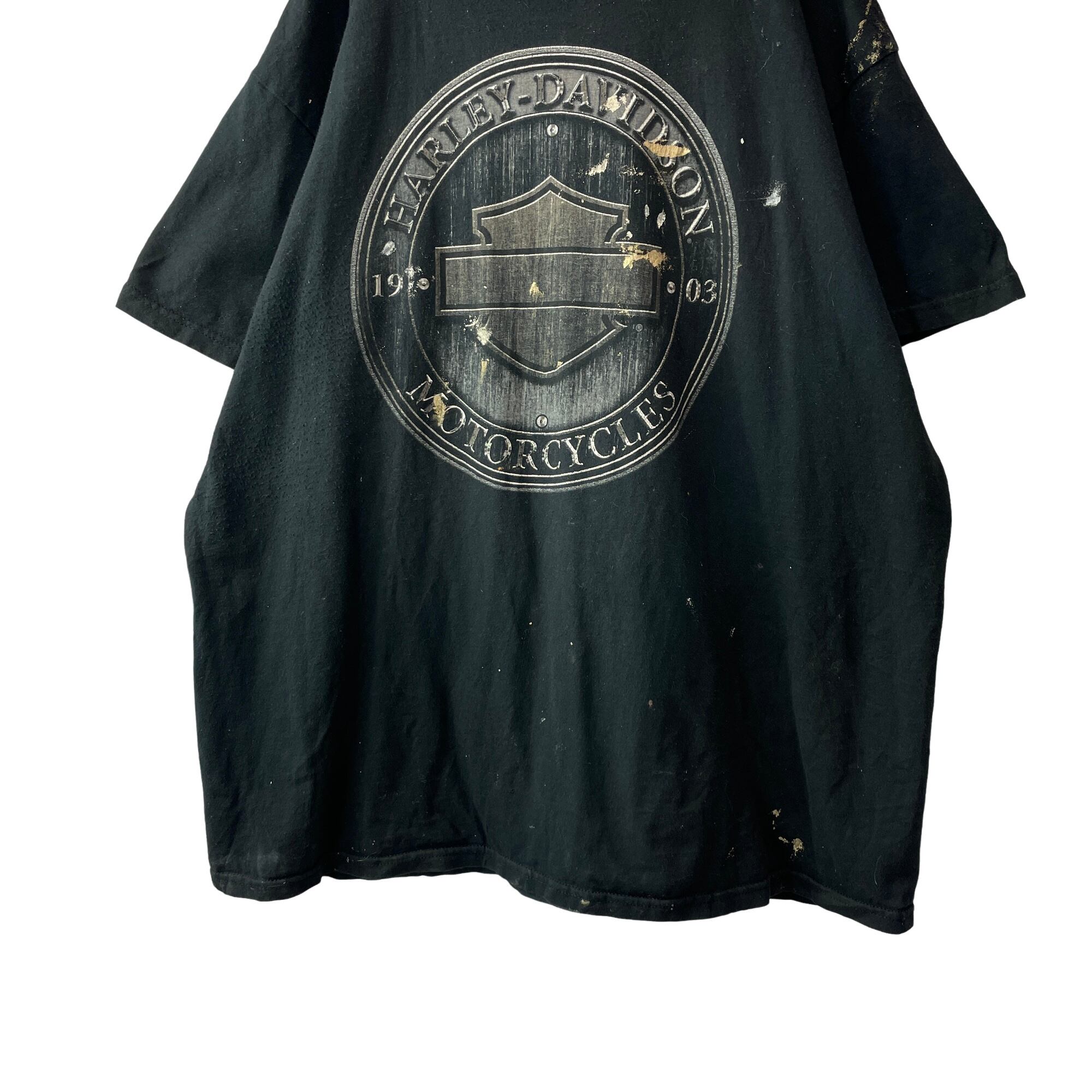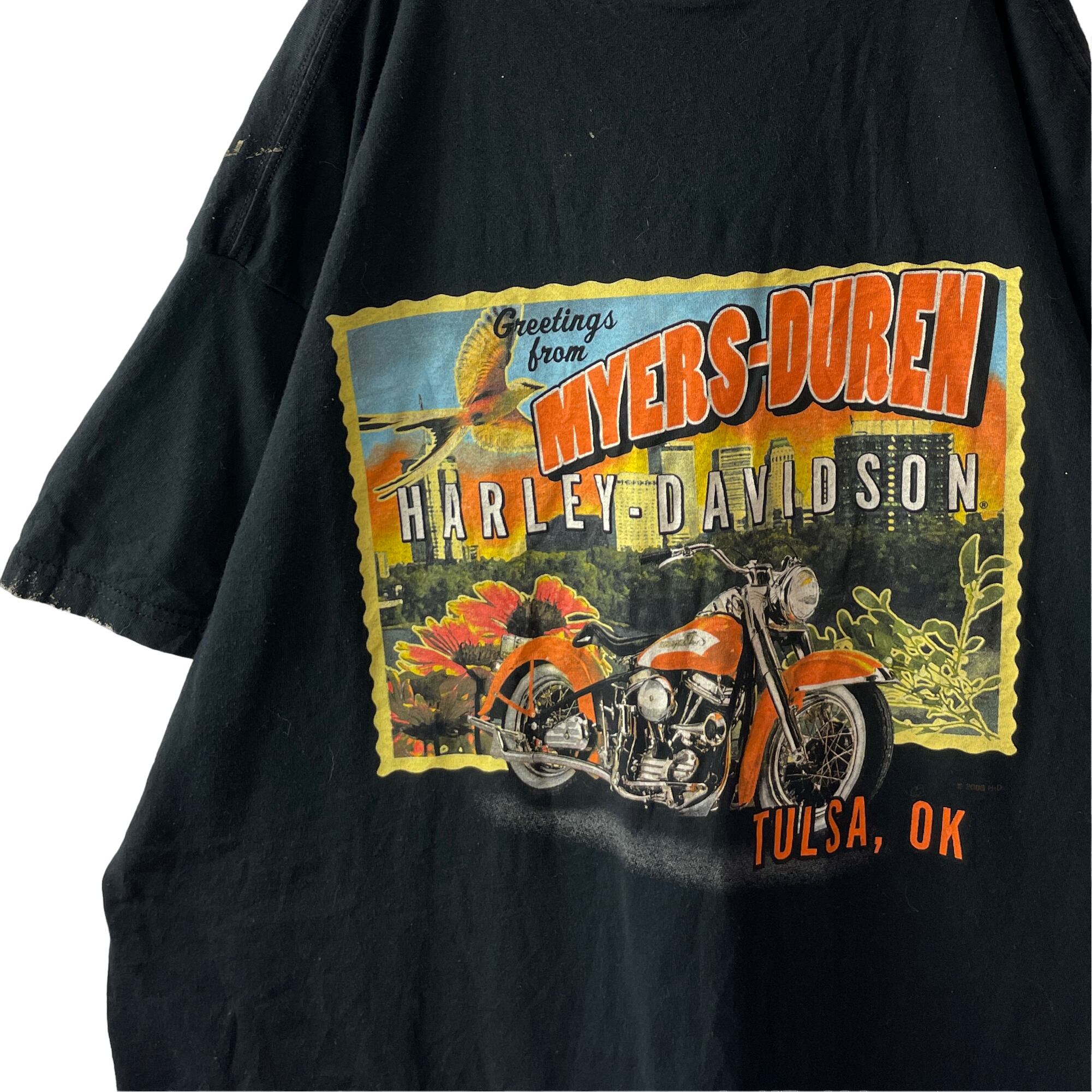 雰囲気◎ 古着 00s ハーレーダビッドソン タルサ Tシャツ 黒 XL ペンキ