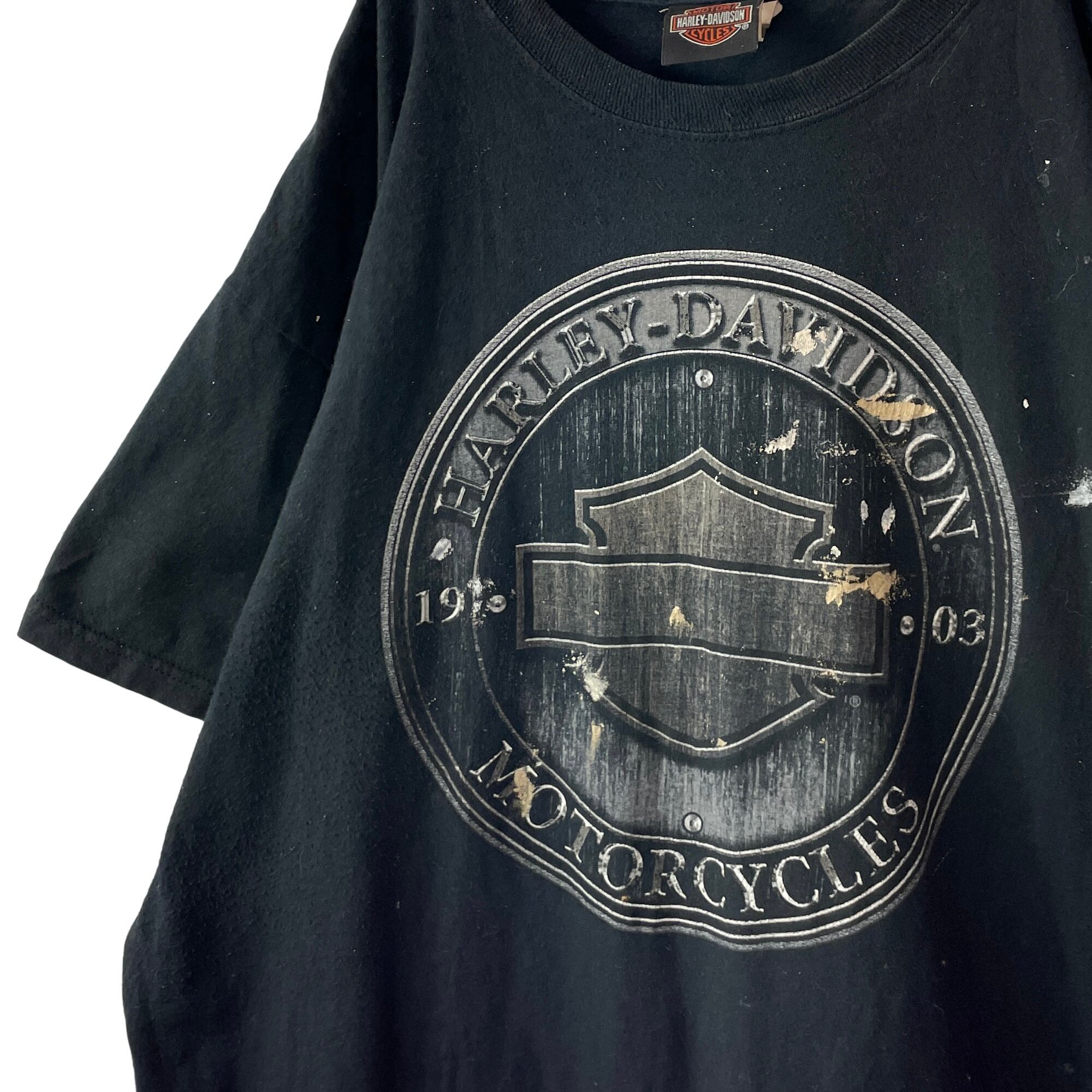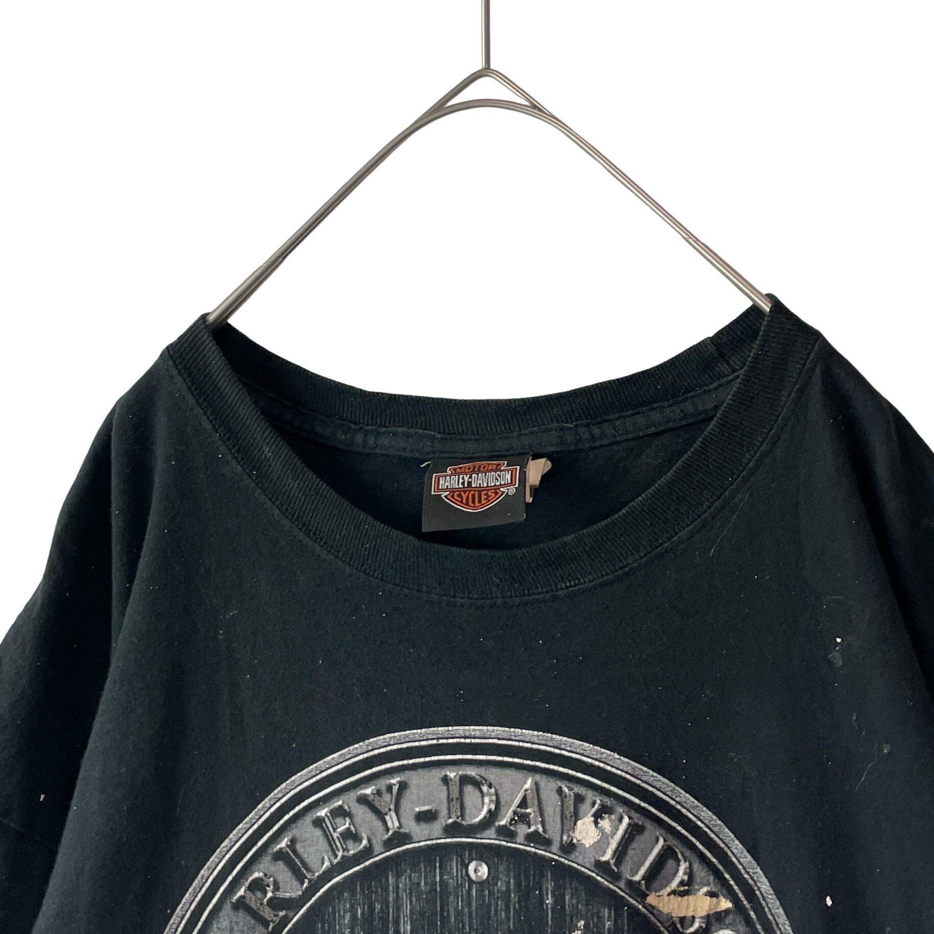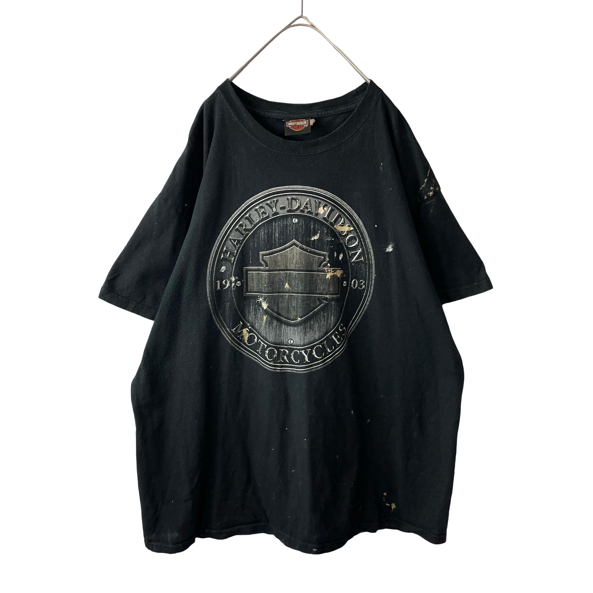 雰囲気◎ 古着 00s ハーレーダビッドソン タルサ Tシャツ 黒 XL ペンキ