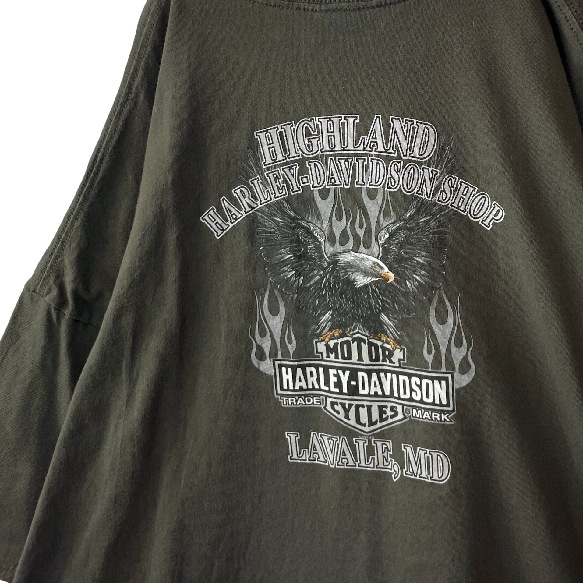 ✅メリーランド州のディーラー「HIGHLAND」の限定ロゴ。燃え上がる炎中に力強く翼を広げるイーグルが、5XLの巨大な背面に抜群のインパクト◎