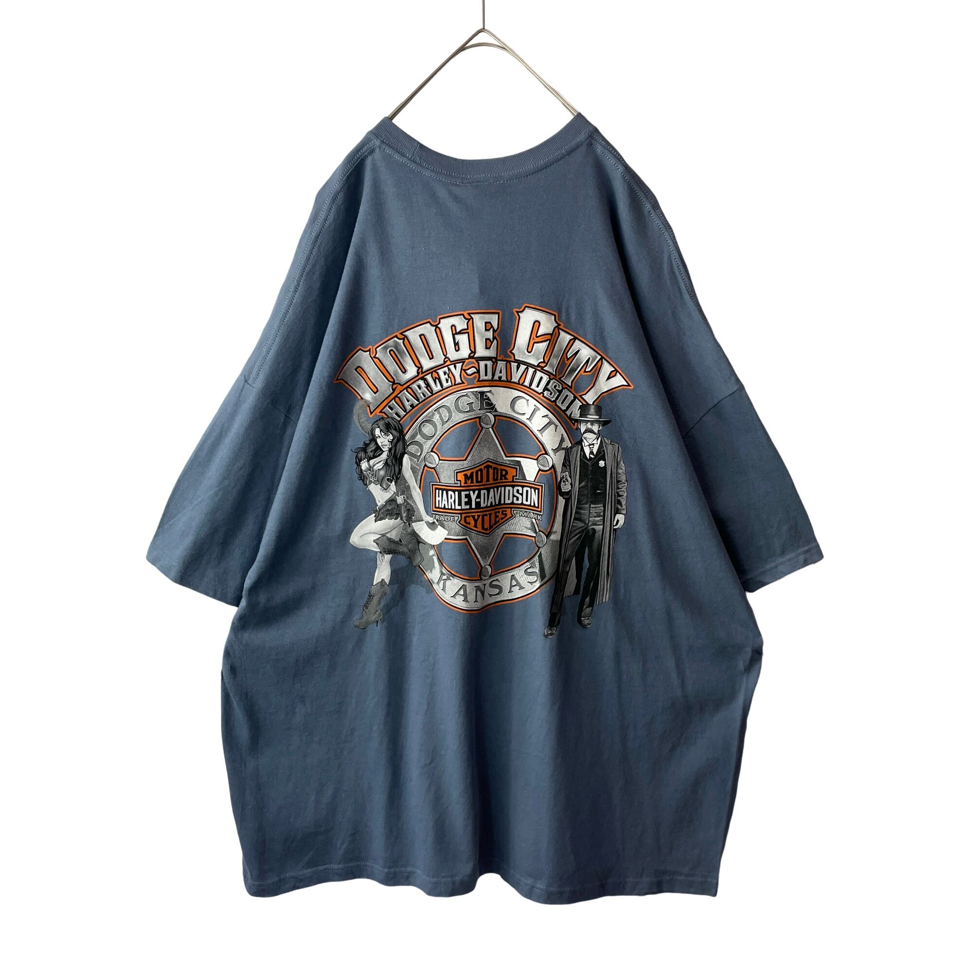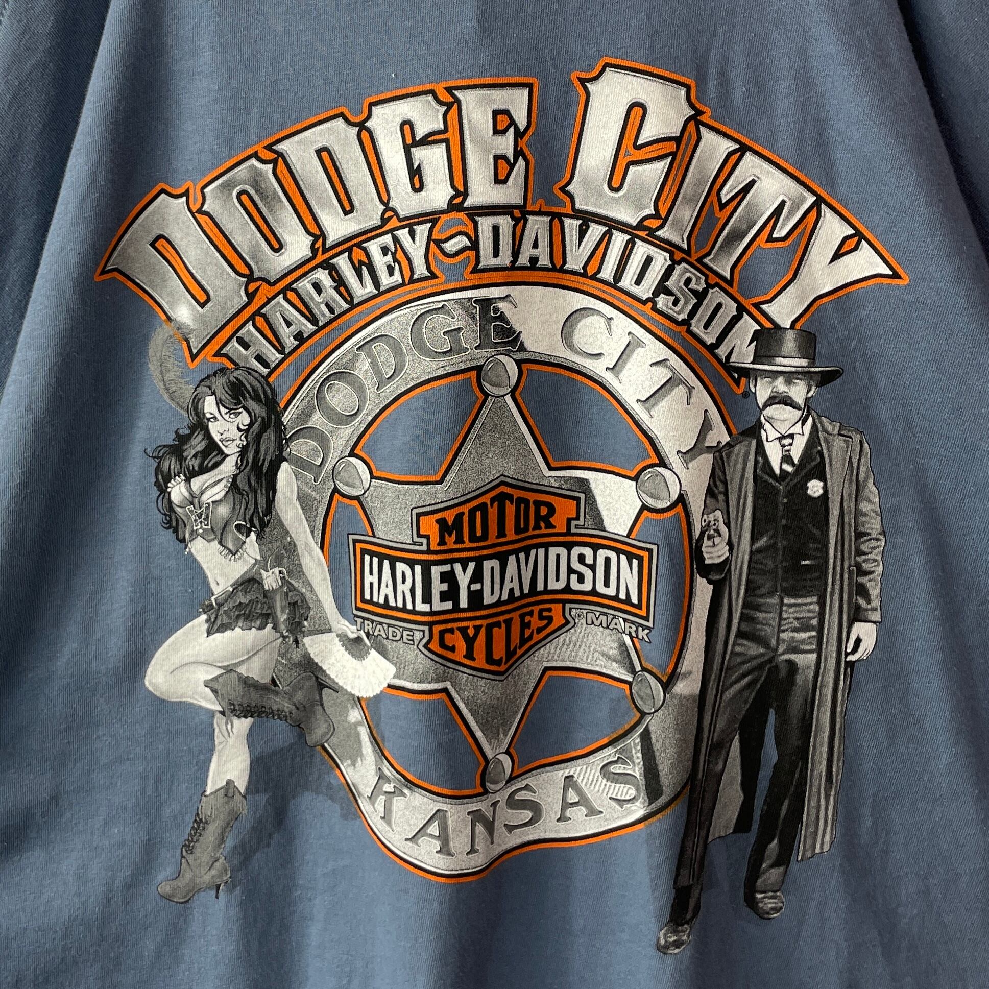 【良デザイン◎】ハーレーダビッドソン カンザス州ダッジシティ Tシャツ ネイビー
