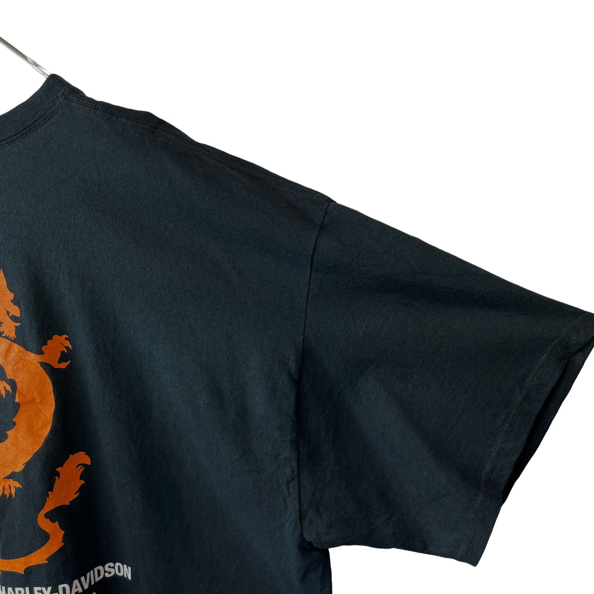 ハーレーダビッドソン バックプリント Tシャツ ドラゴン 龍 黒 2XL相当