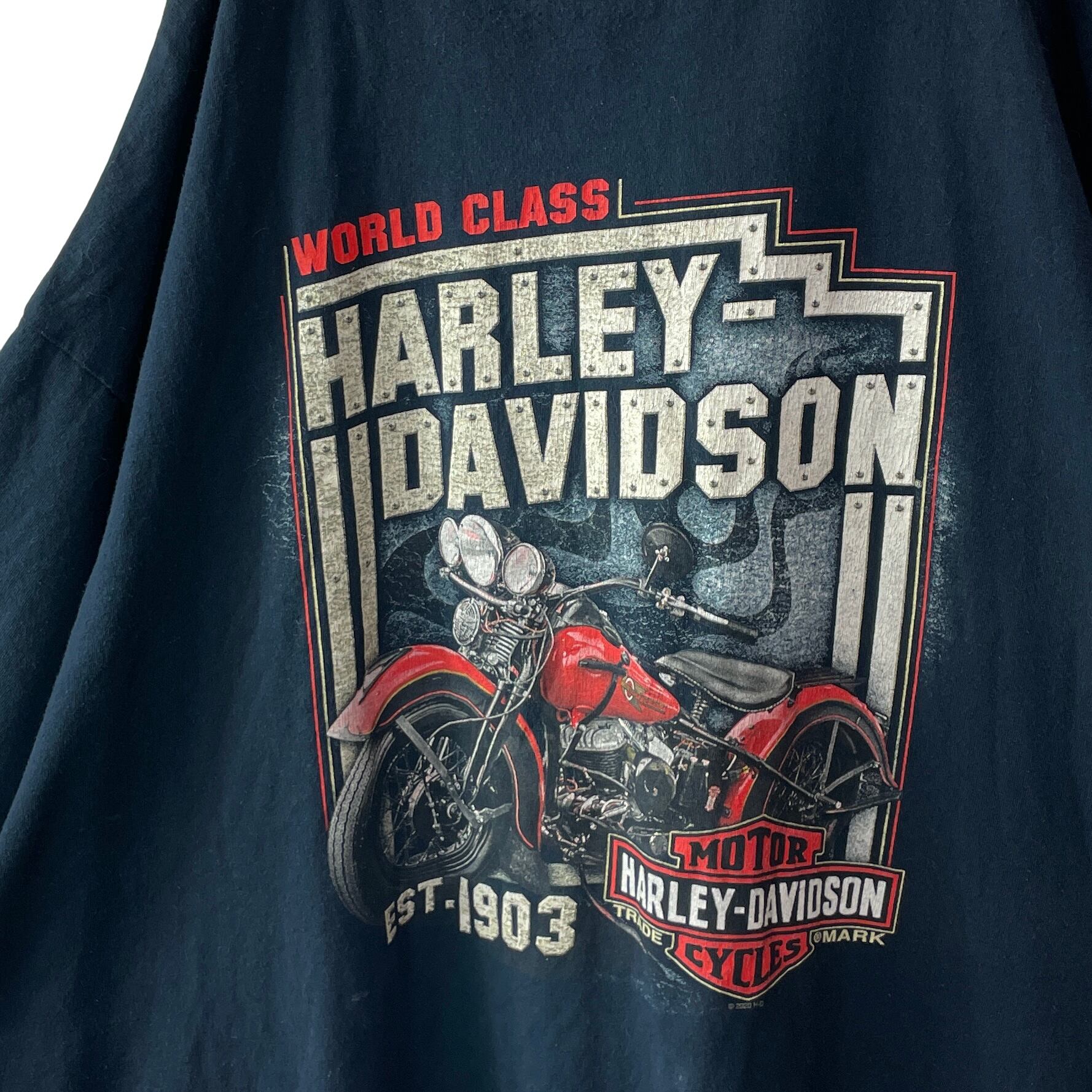 古着 超ビッグサイズ ハーレーダビッドソン Tシャツ 両面プリント ネイビー 紺
