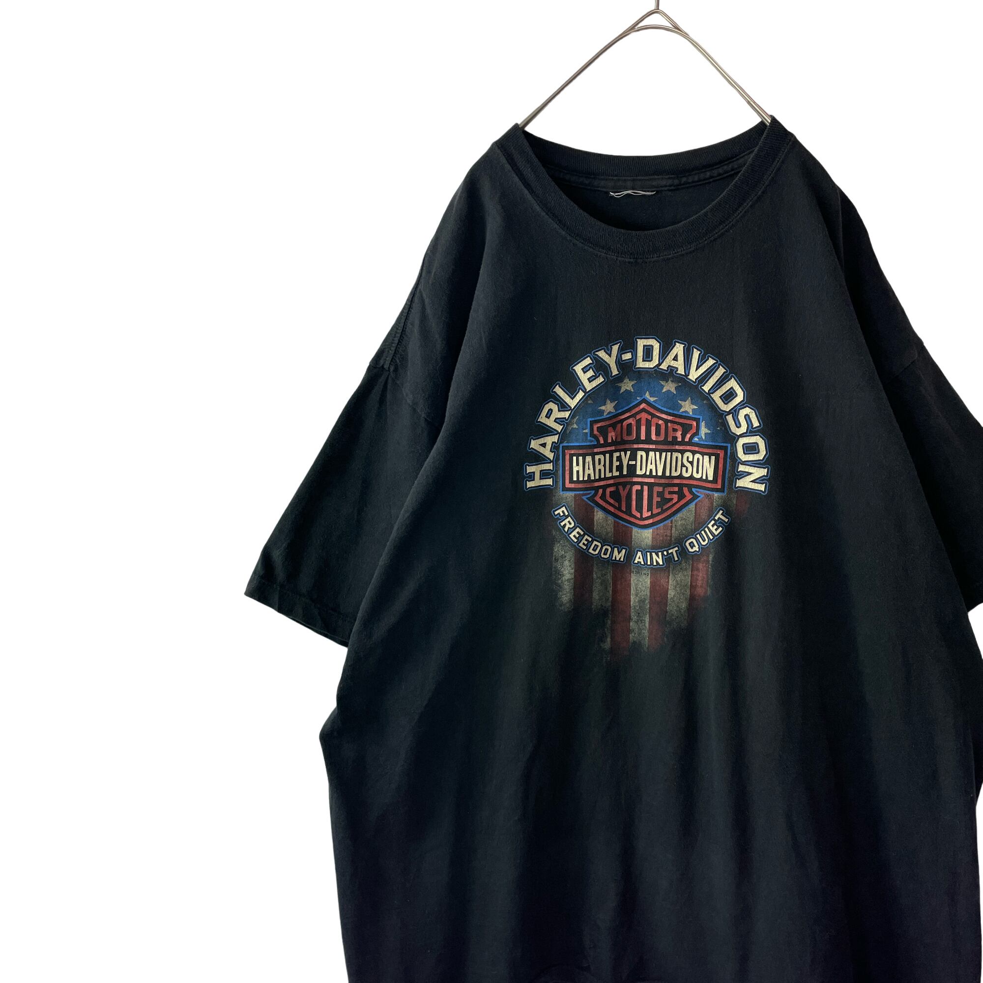ハーレーダビッドソン 星条旗&ビッグロゴ Tシャツ 黒 ビッグサイズ 2XL相当