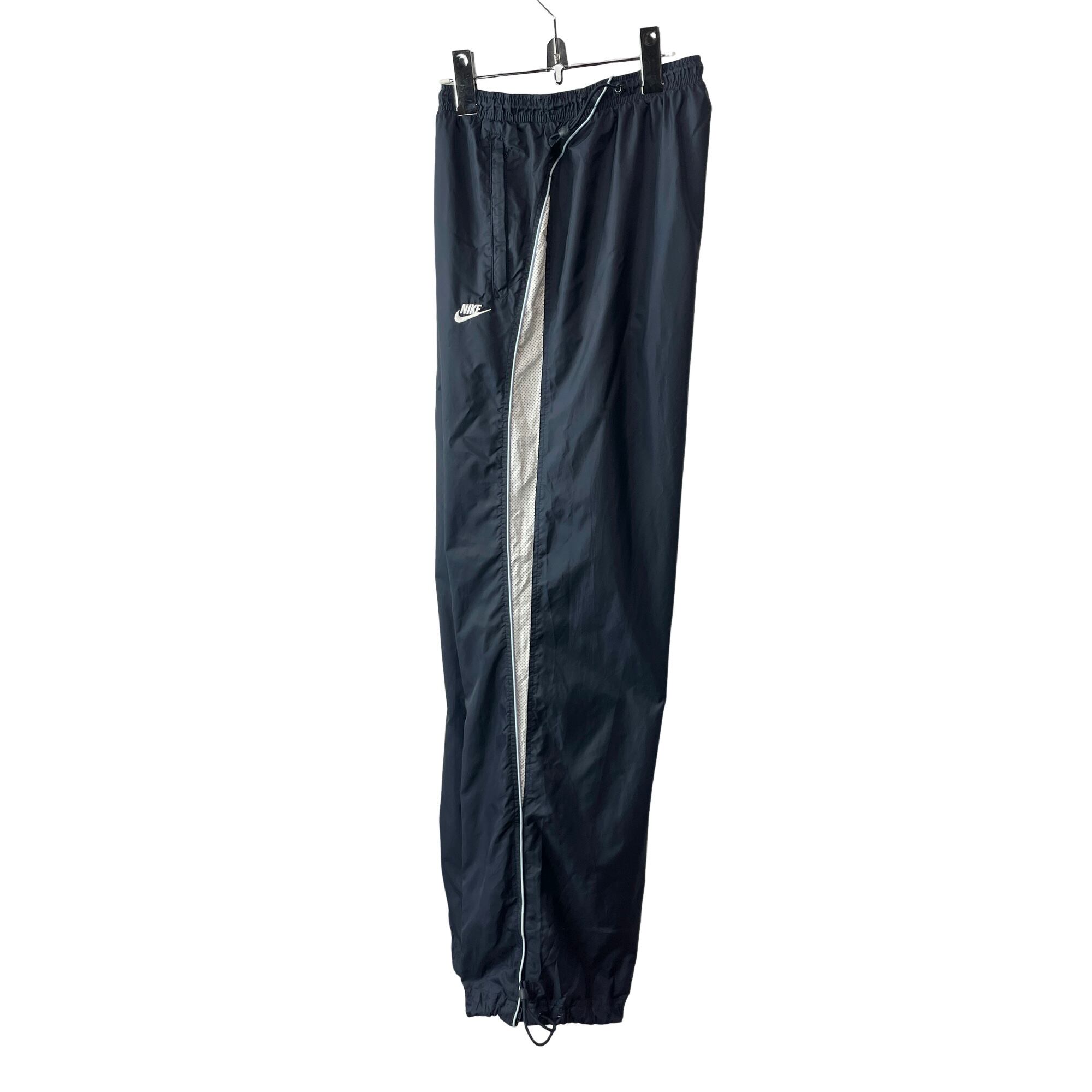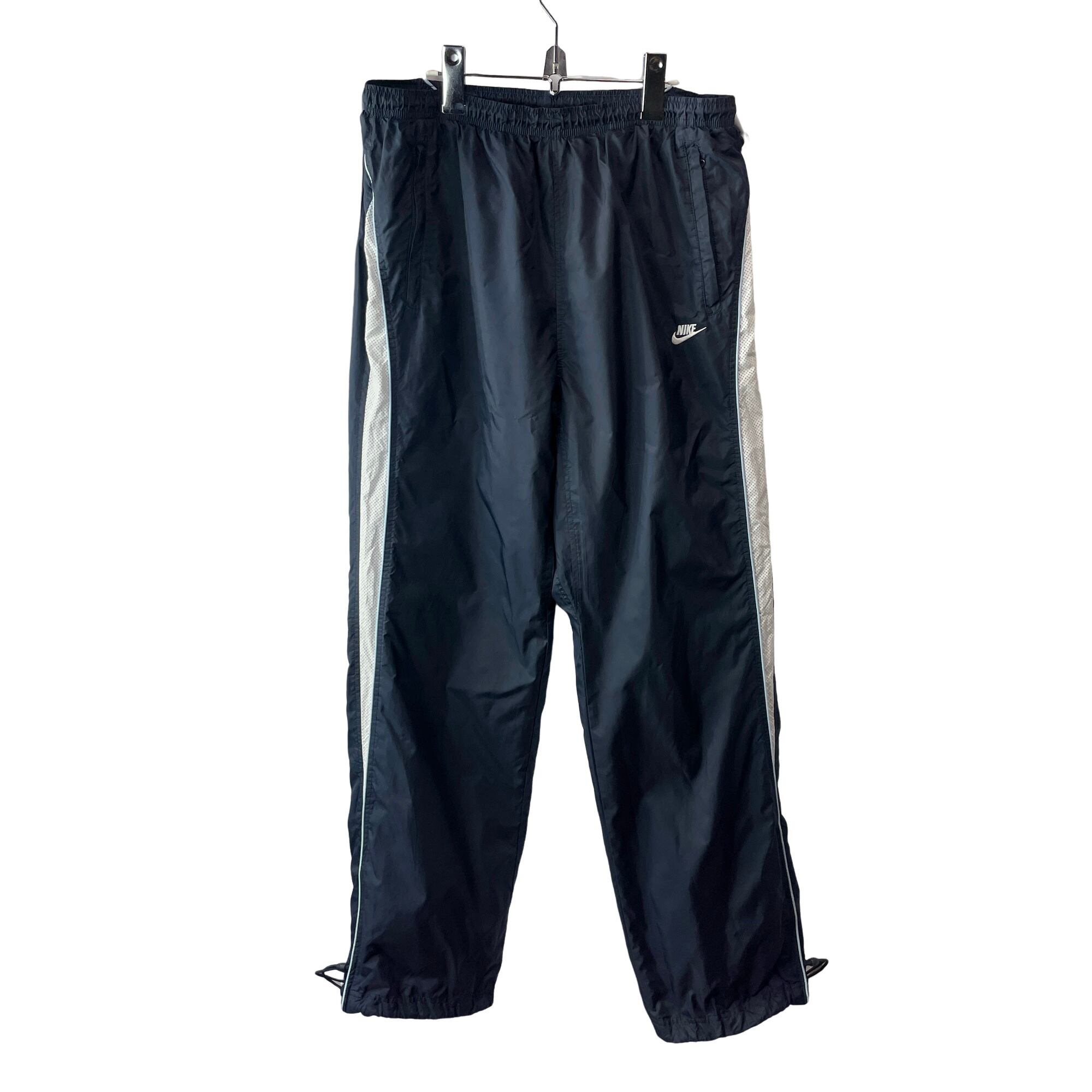 00s ナイキ ナイロンパンツ トラックパンツ サイドライン ドローコード付 紺